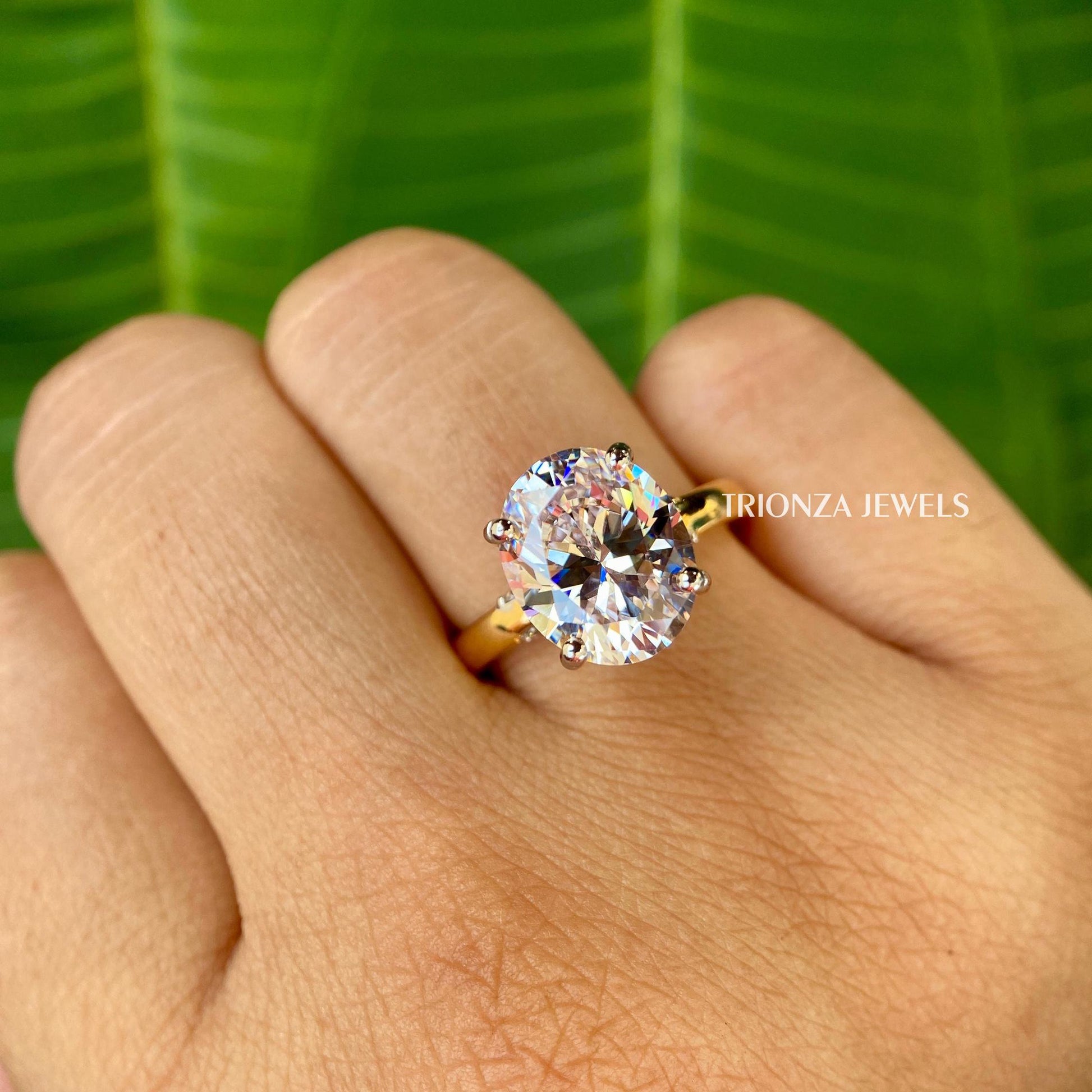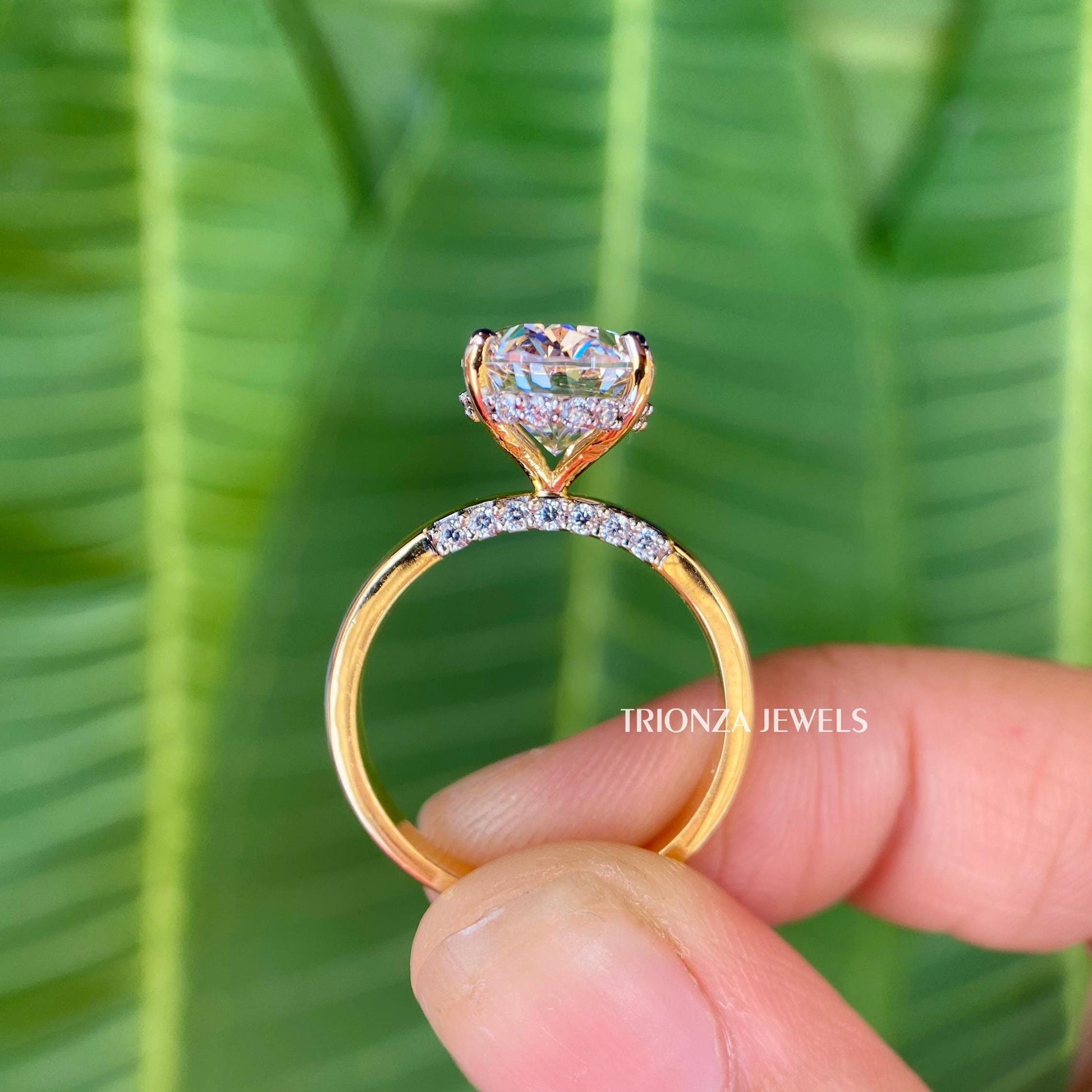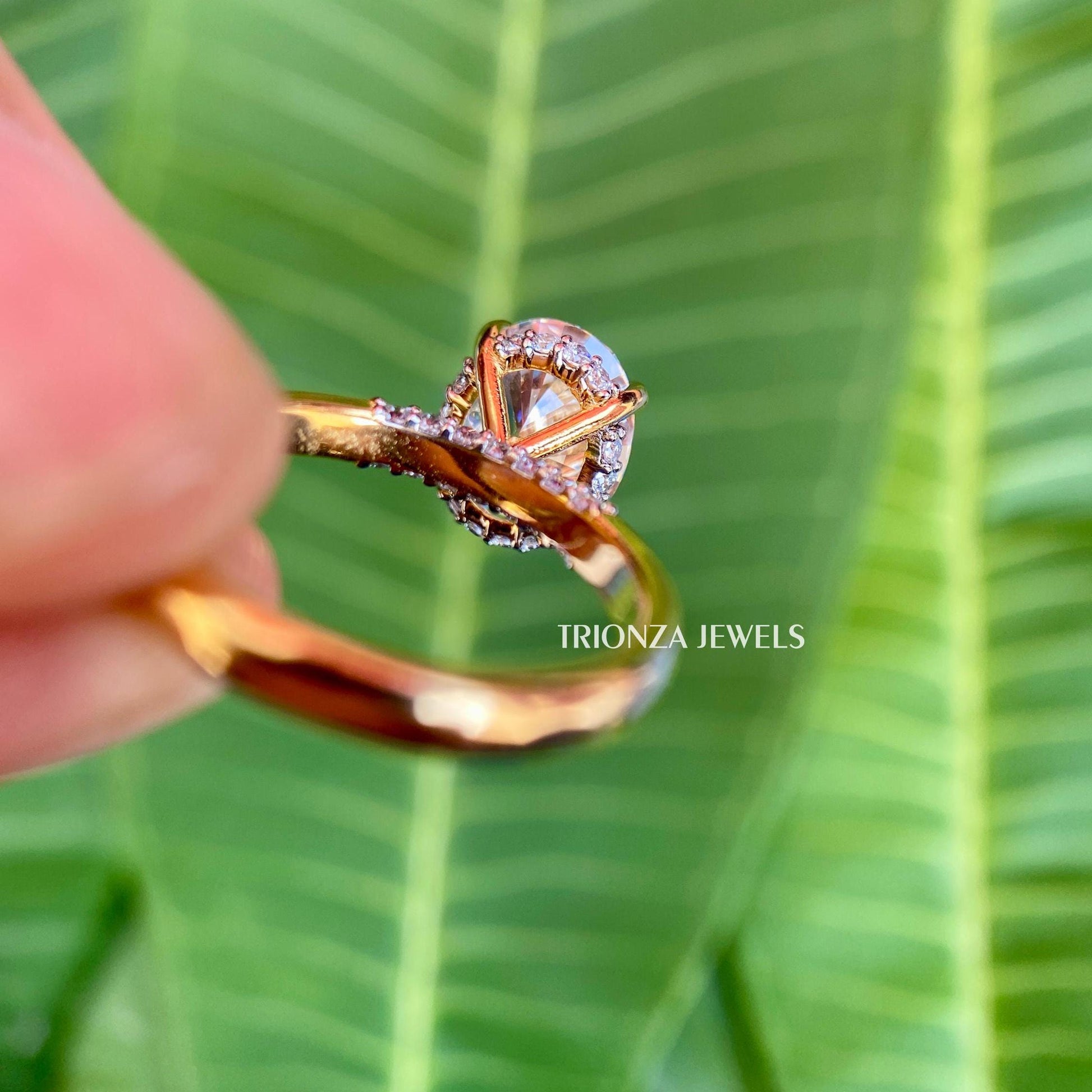 3 CT Oval Halo Moissanite Wedding Ring for Women | Handmade Gift