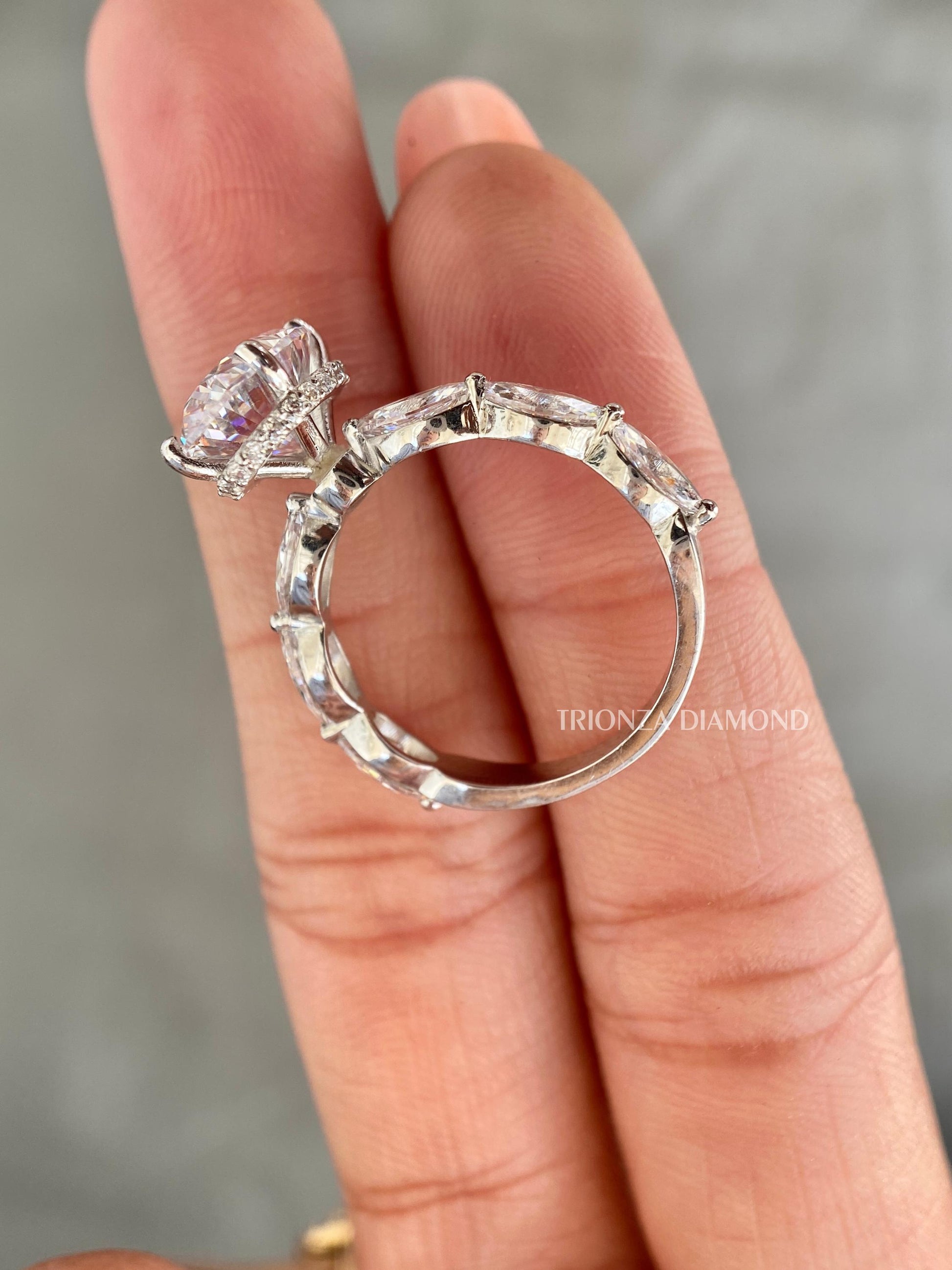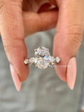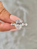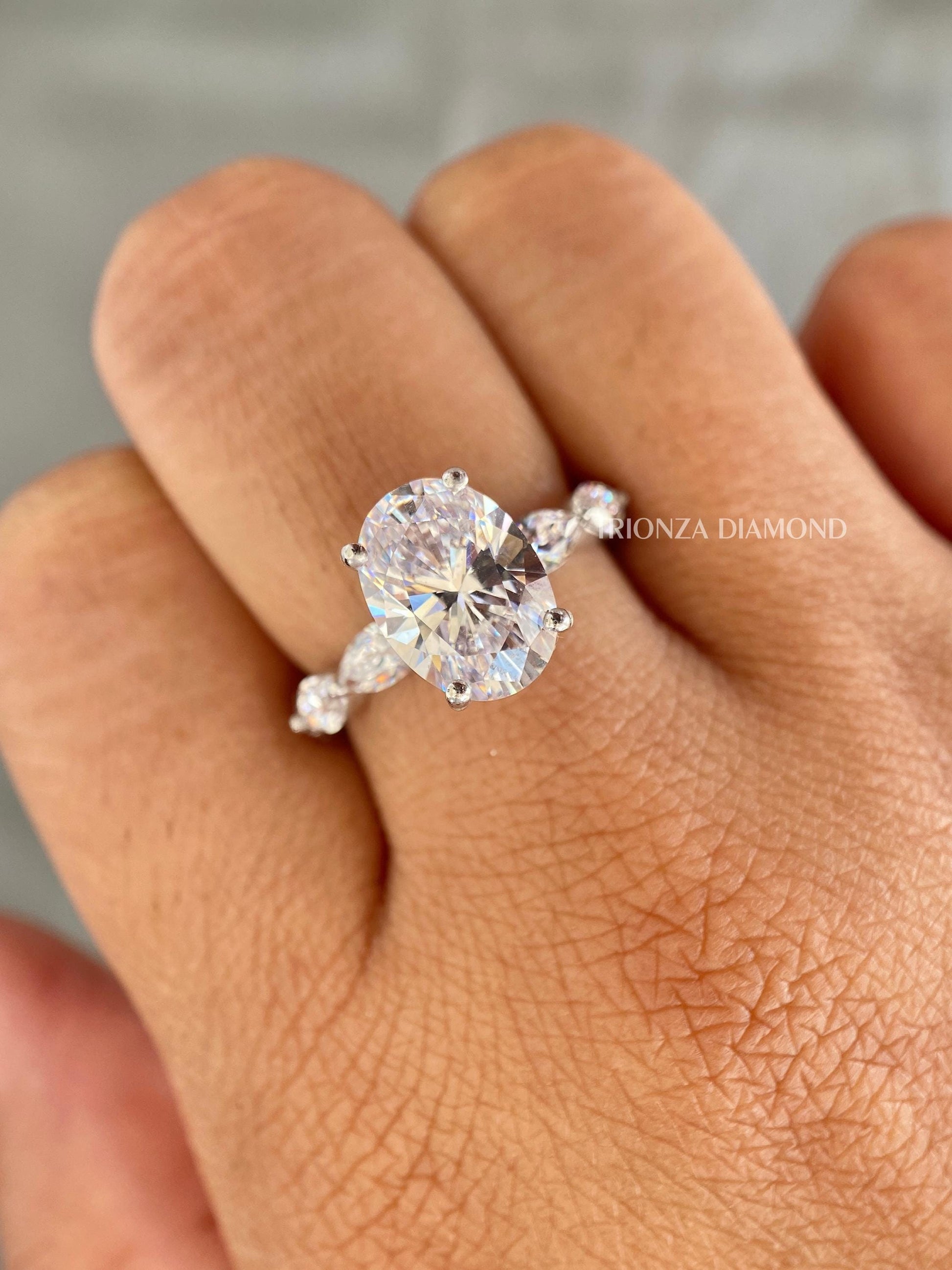 3 CT Oval Lab Diamond Engagement Ring F/VVS2, Marquise Accents