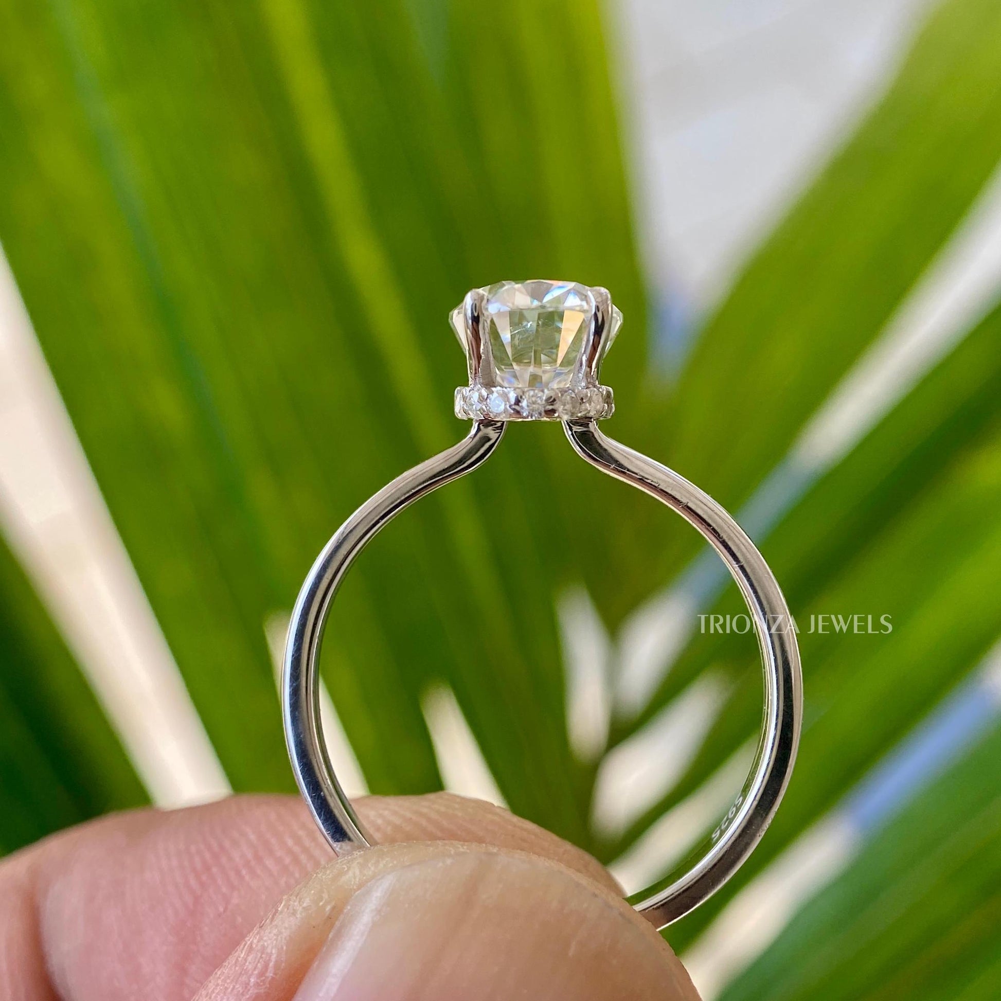 This 3 CT Classic Oval Solitaire Ring features a gorgeous Oval Hidden Halo design, perfect as an Anniversary Ring, Promise Ring, or Engagement Ring. Crafted in 14K Gold, this exquisite Moissanite Oval Cut ring makes a delicate anniversary gift or a beautiful piece of handmade fine jewelry for her.