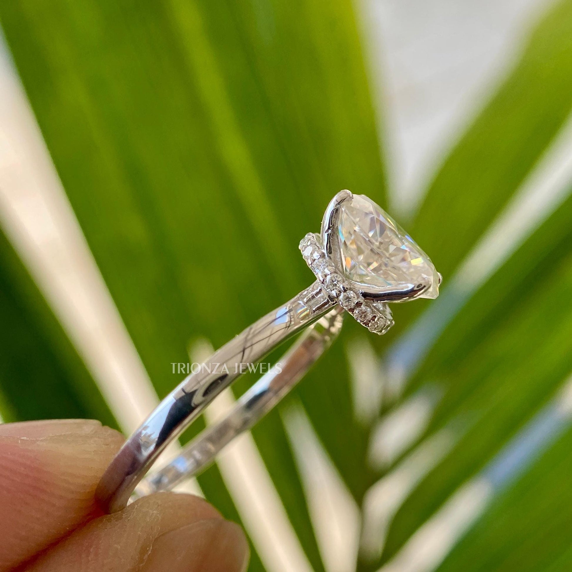 3 CT Oval Moissanite Hidden Halo Ring - 14K Gold Solitaire Promise