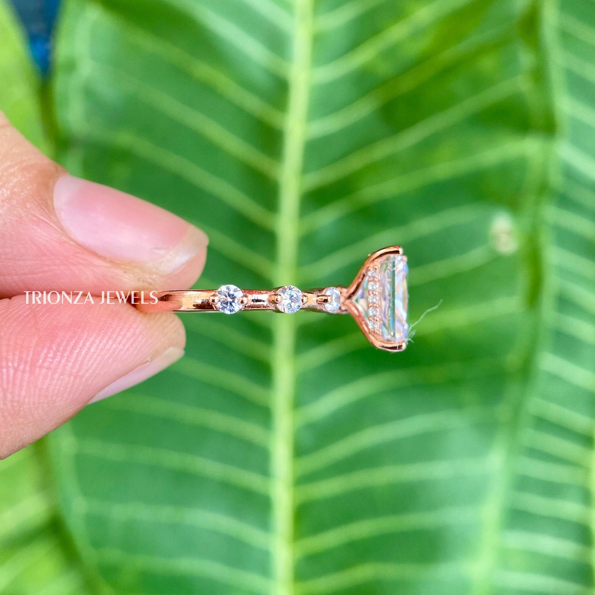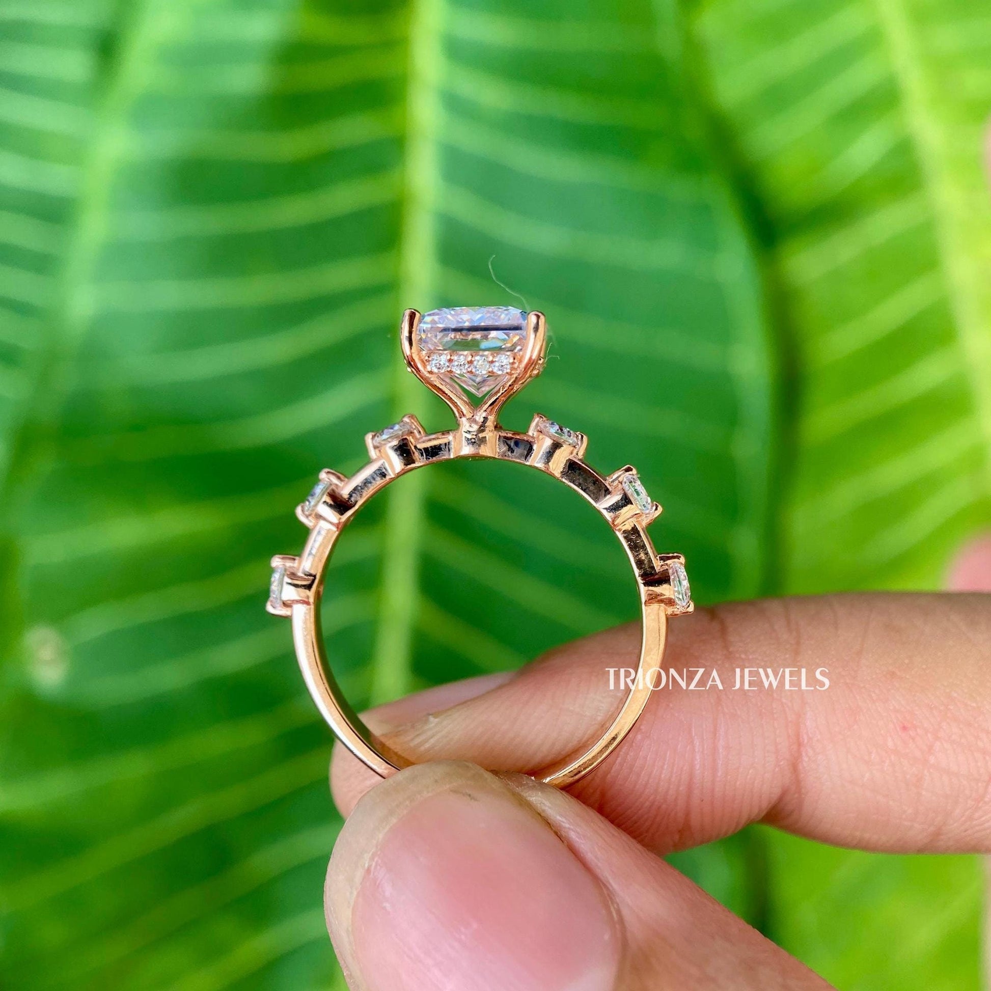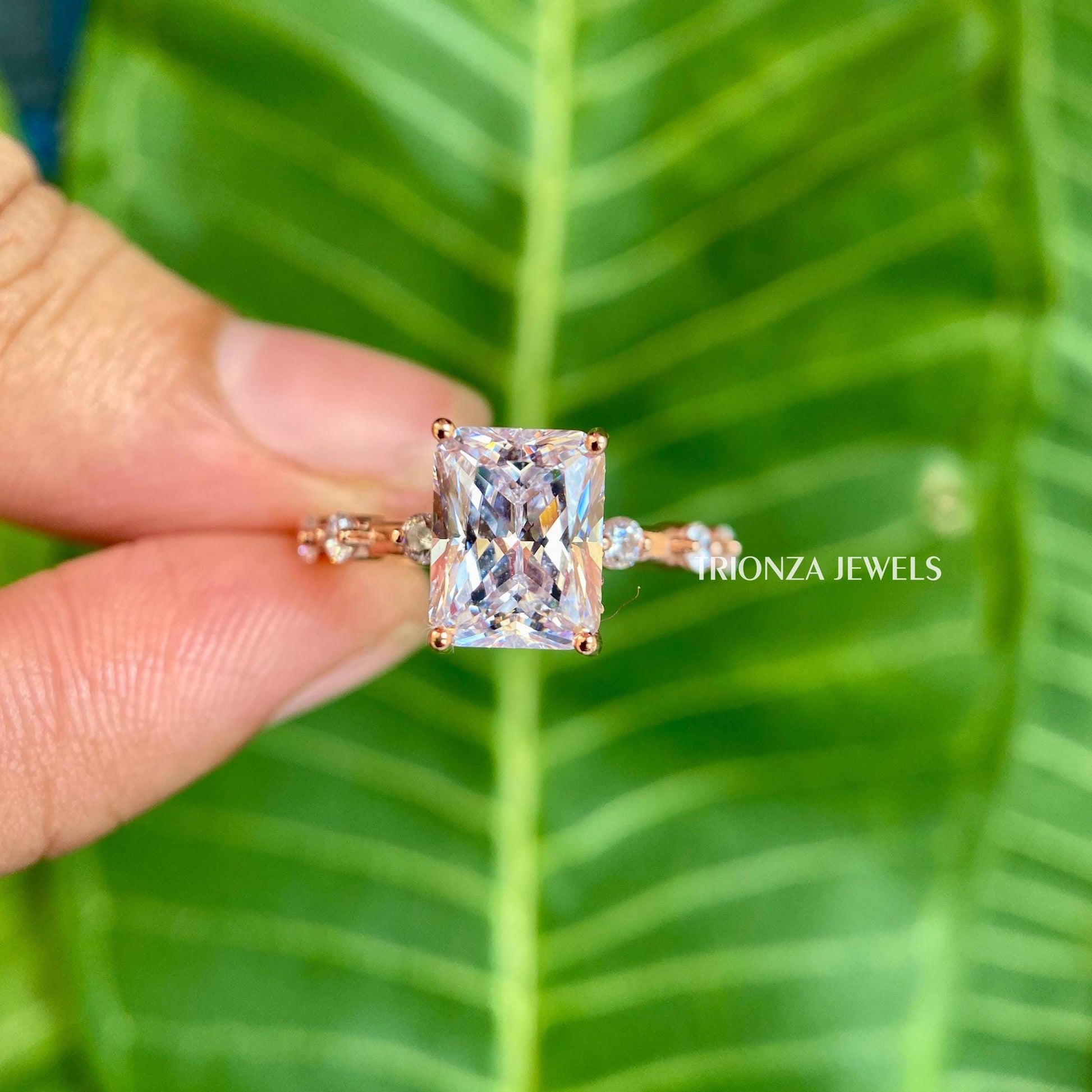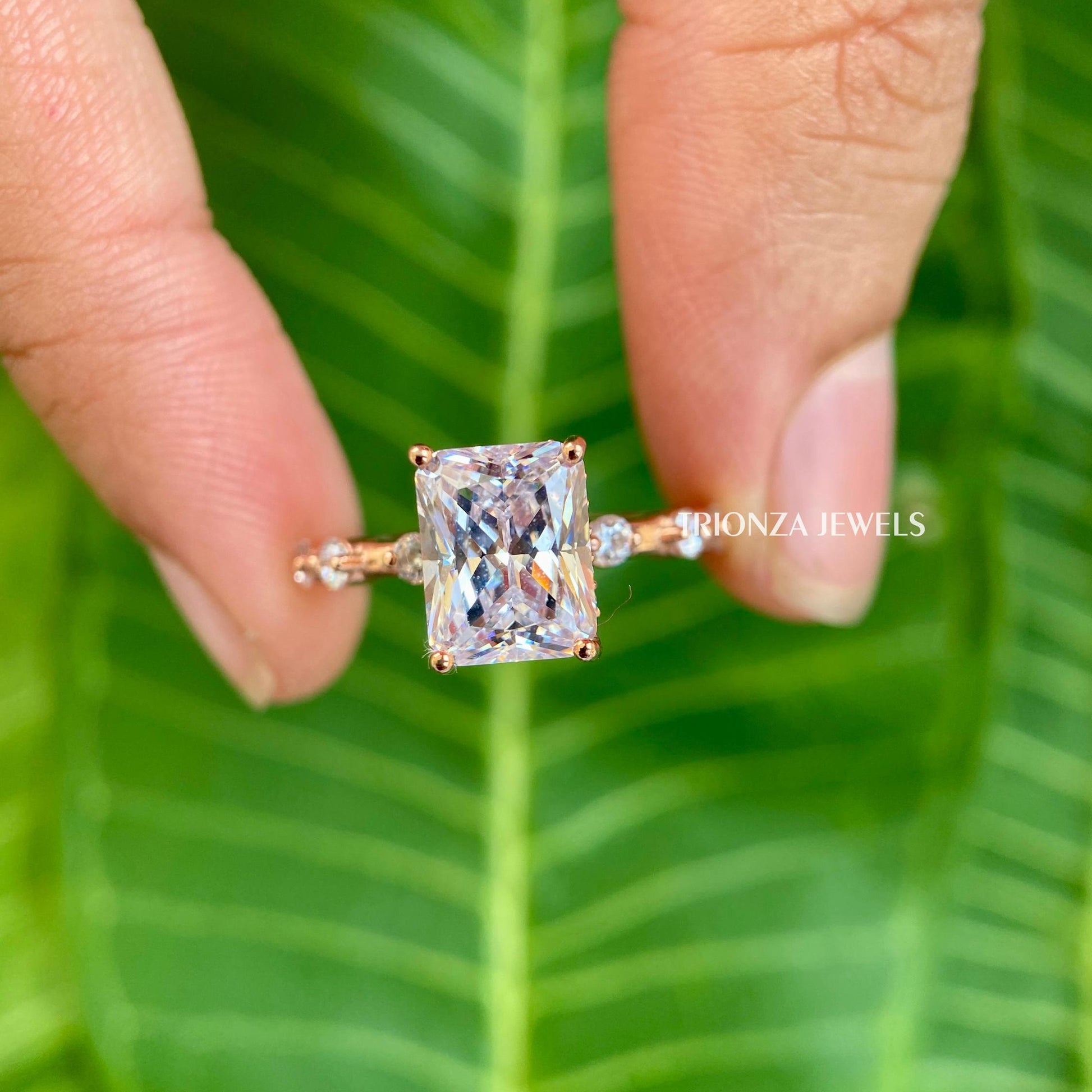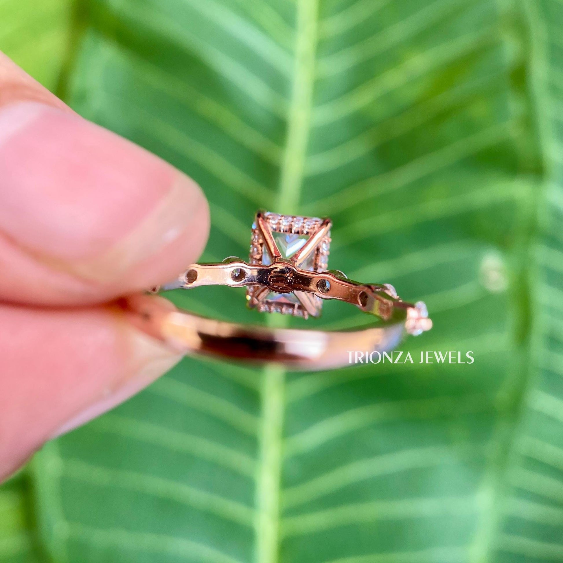 3 CT Radiant Cut Moissanite Engagement Ring 14K Gold Hidden Halo