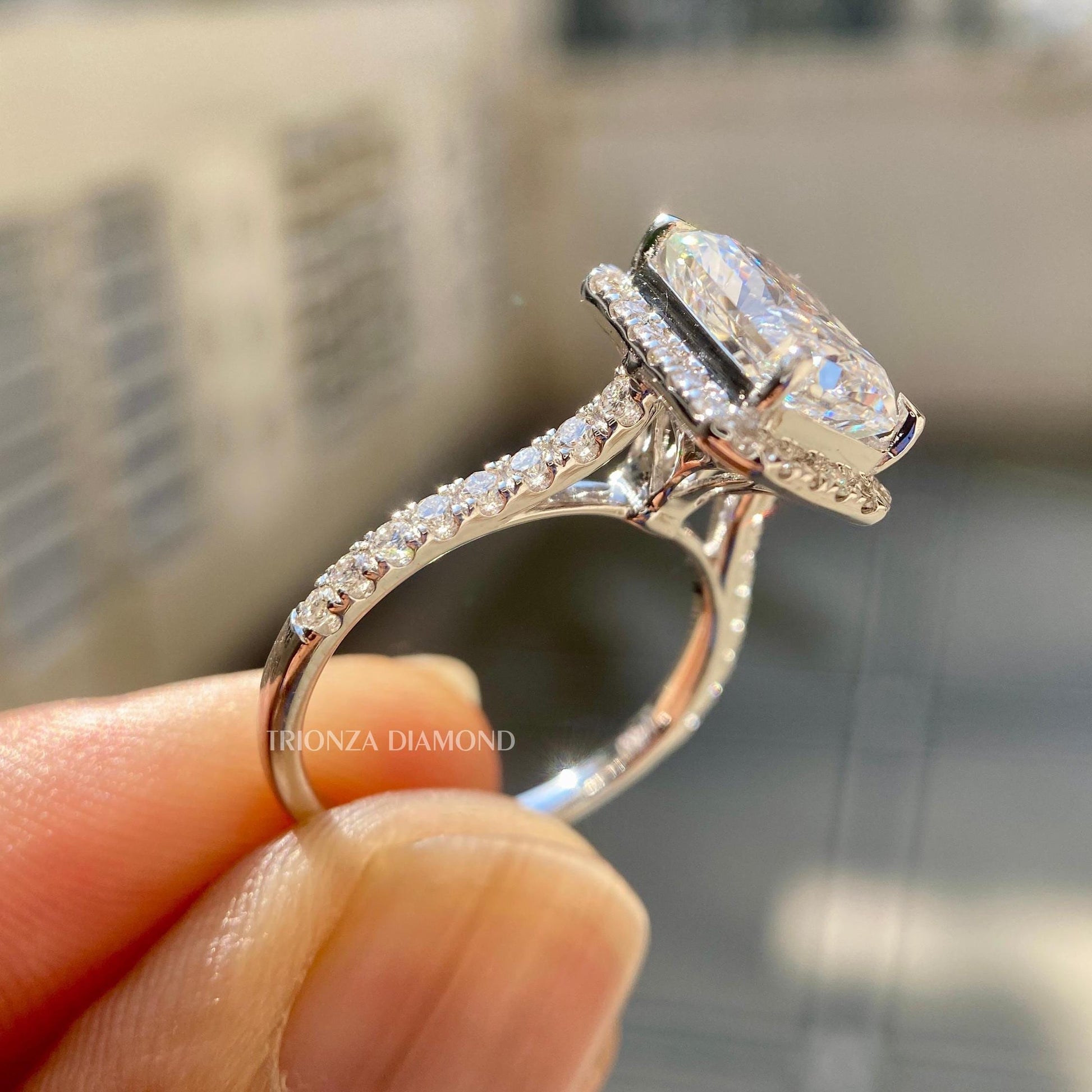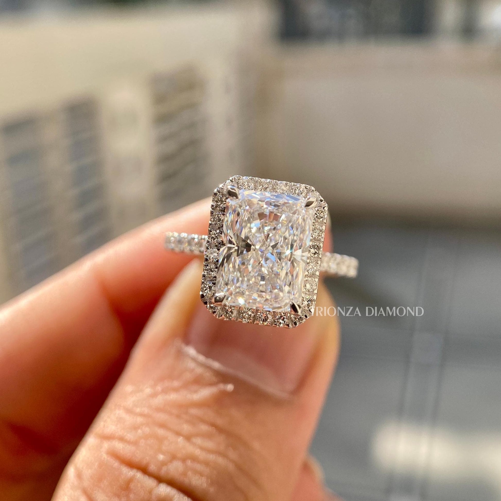3 CT Radiant Lab Diamond Halo Engagement Ring E/VS1 Pave Band