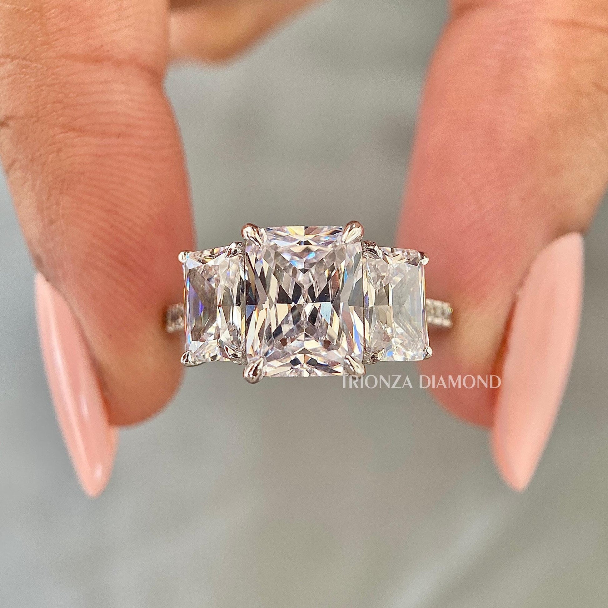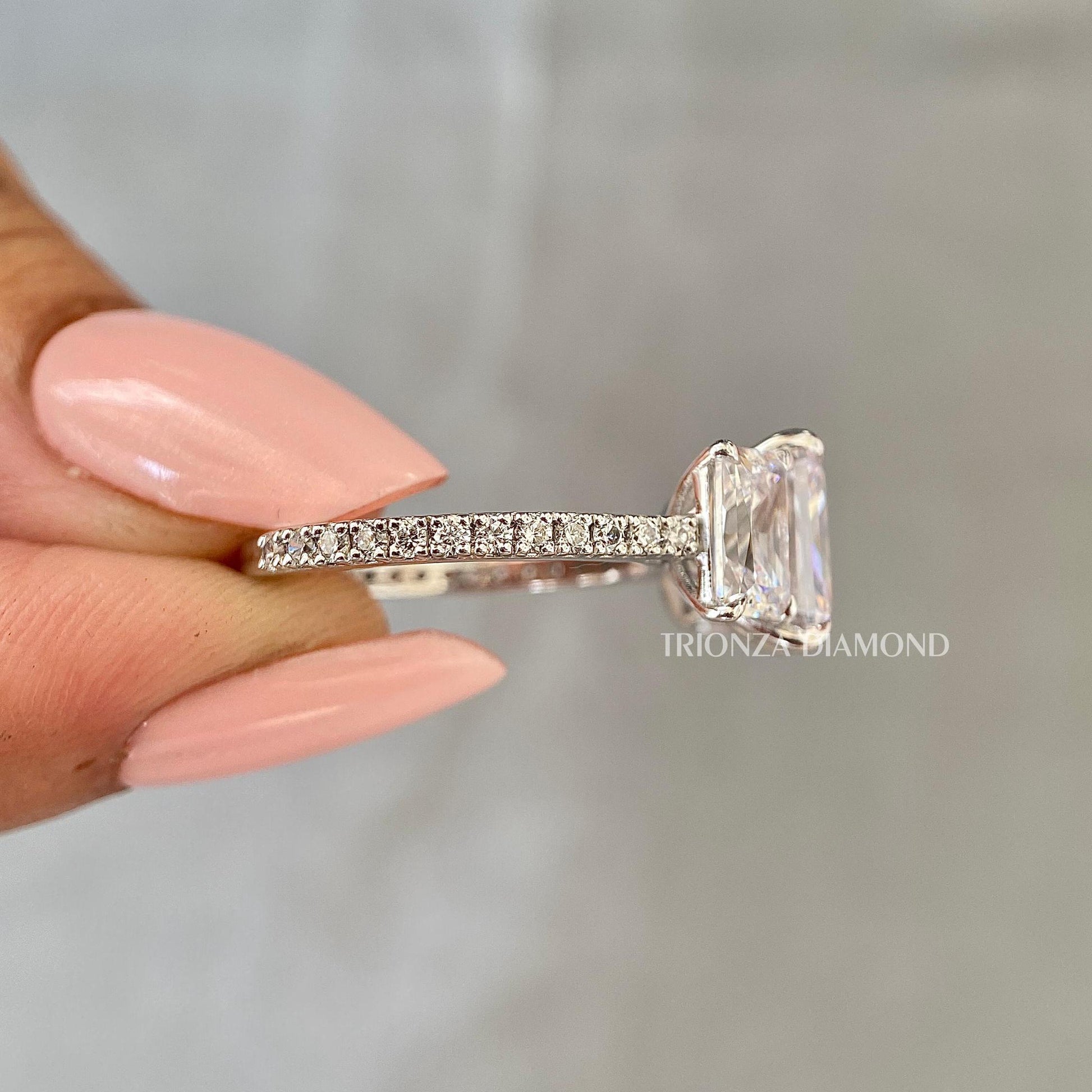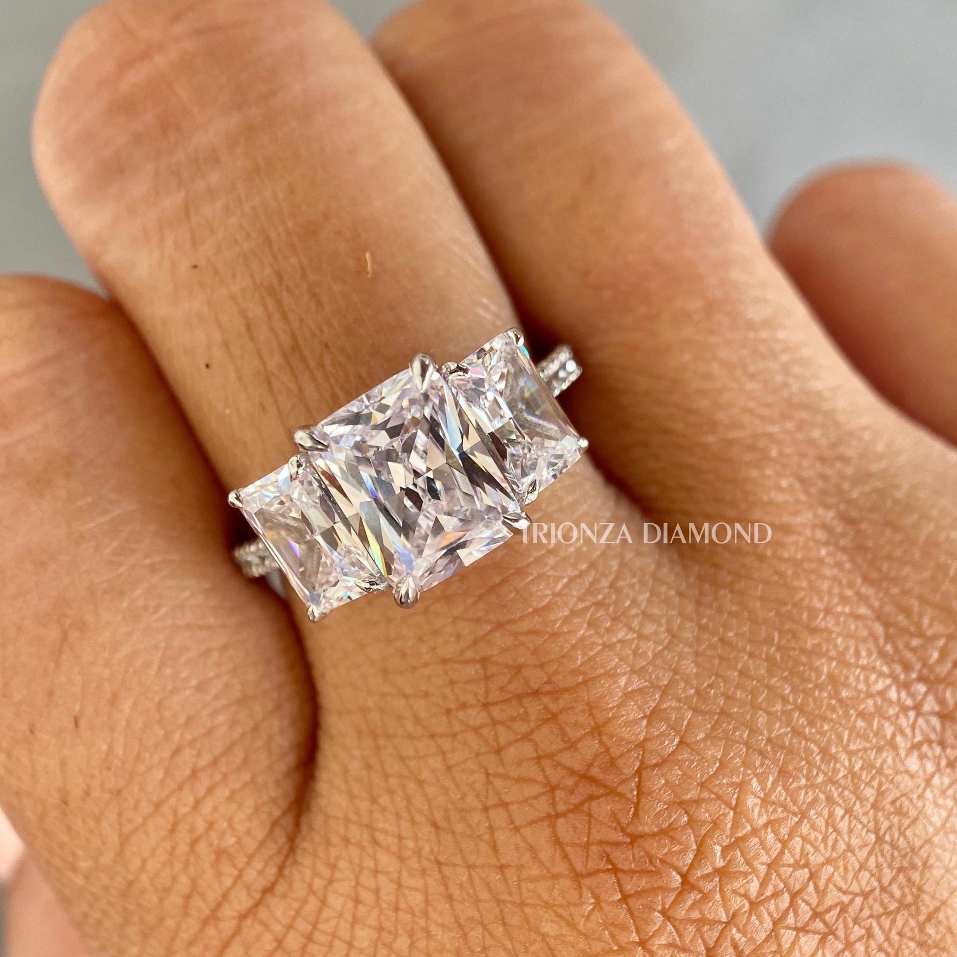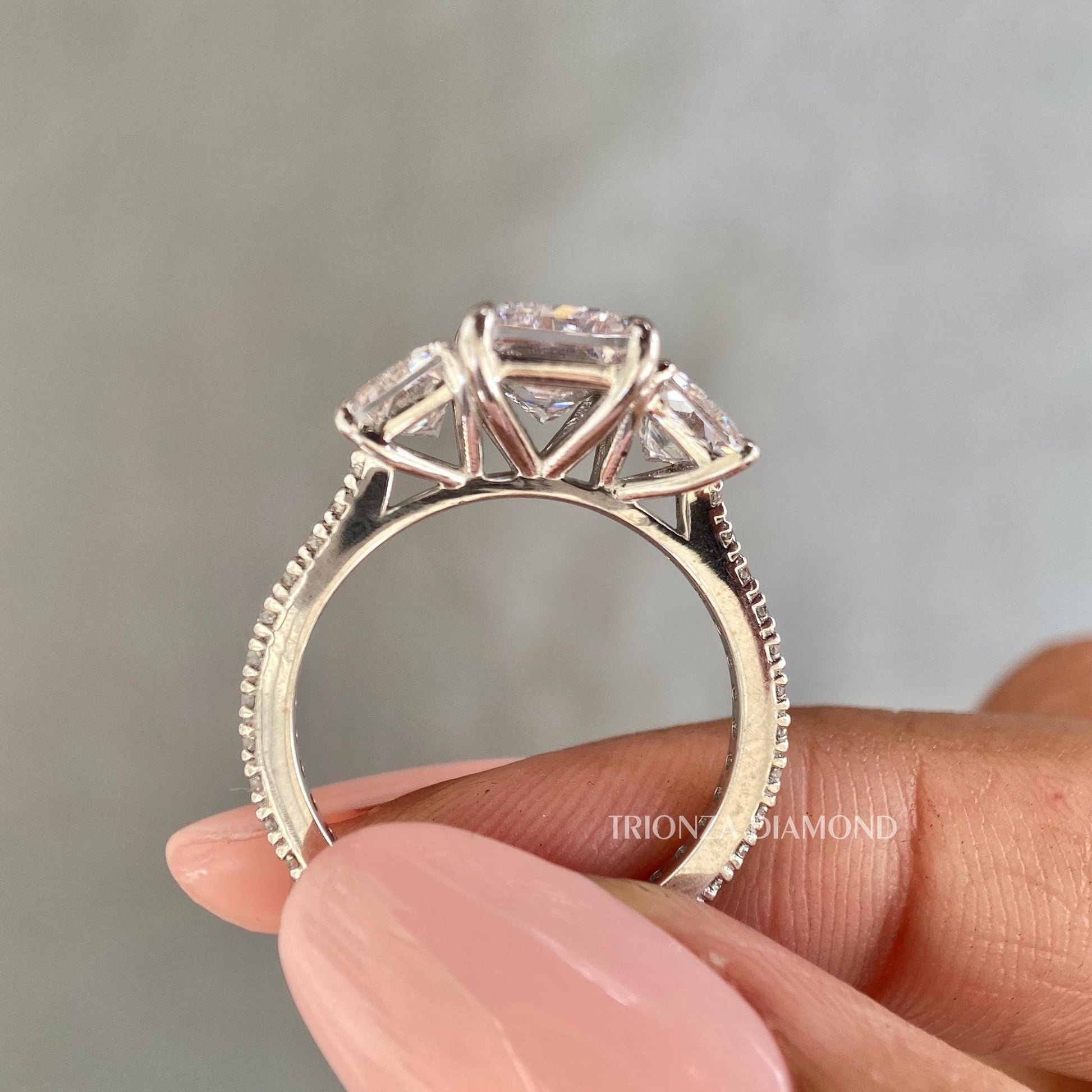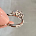 3 CT Radiant Lab Grown Diamond Three Stone Engagement Ring Pavé