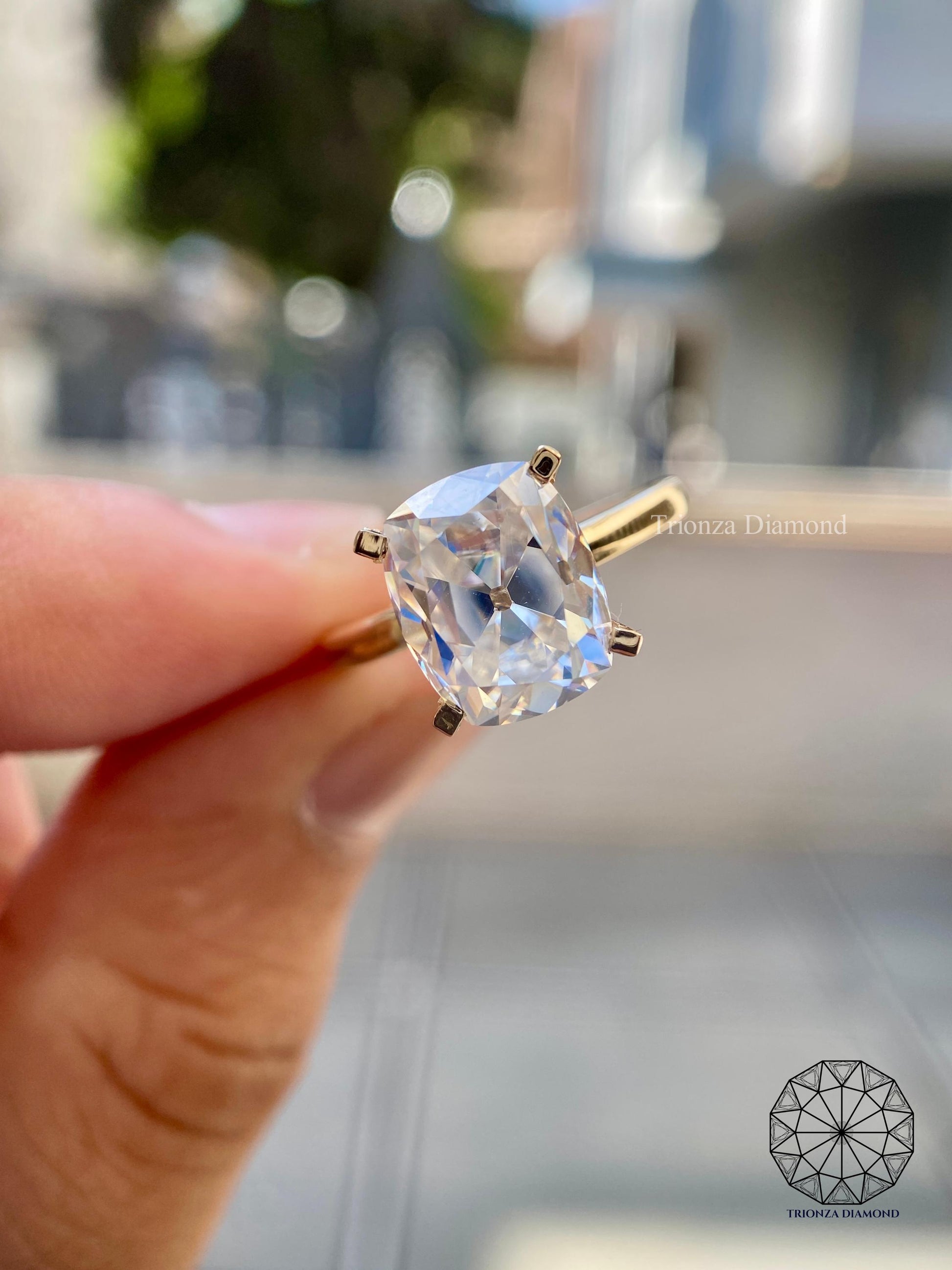 3CT Old Mine Cushion Lab Grown Diamond Engagement Ring E VVS2 IGI