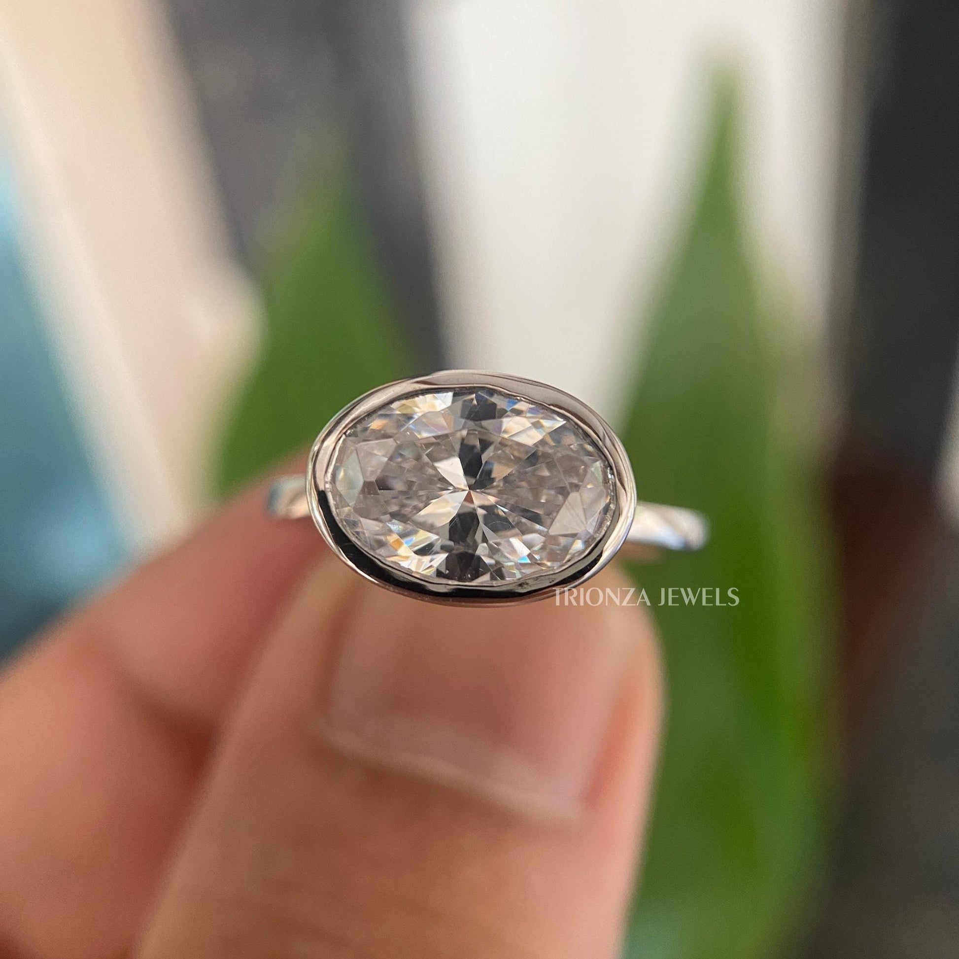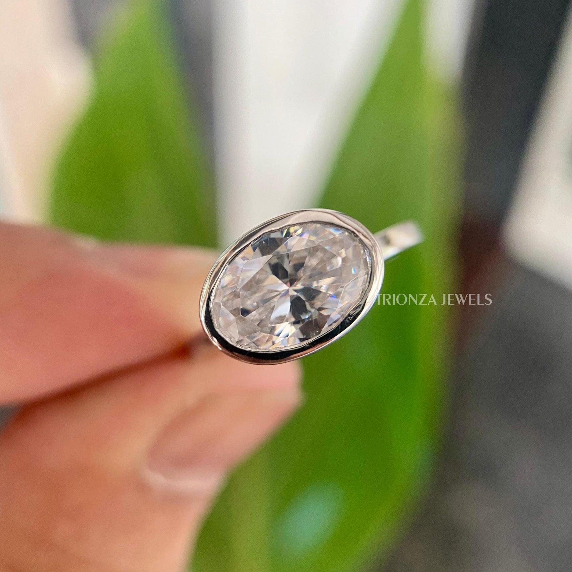 3CT Oval Moissanite East-West Bezel Engagement Ring for Her