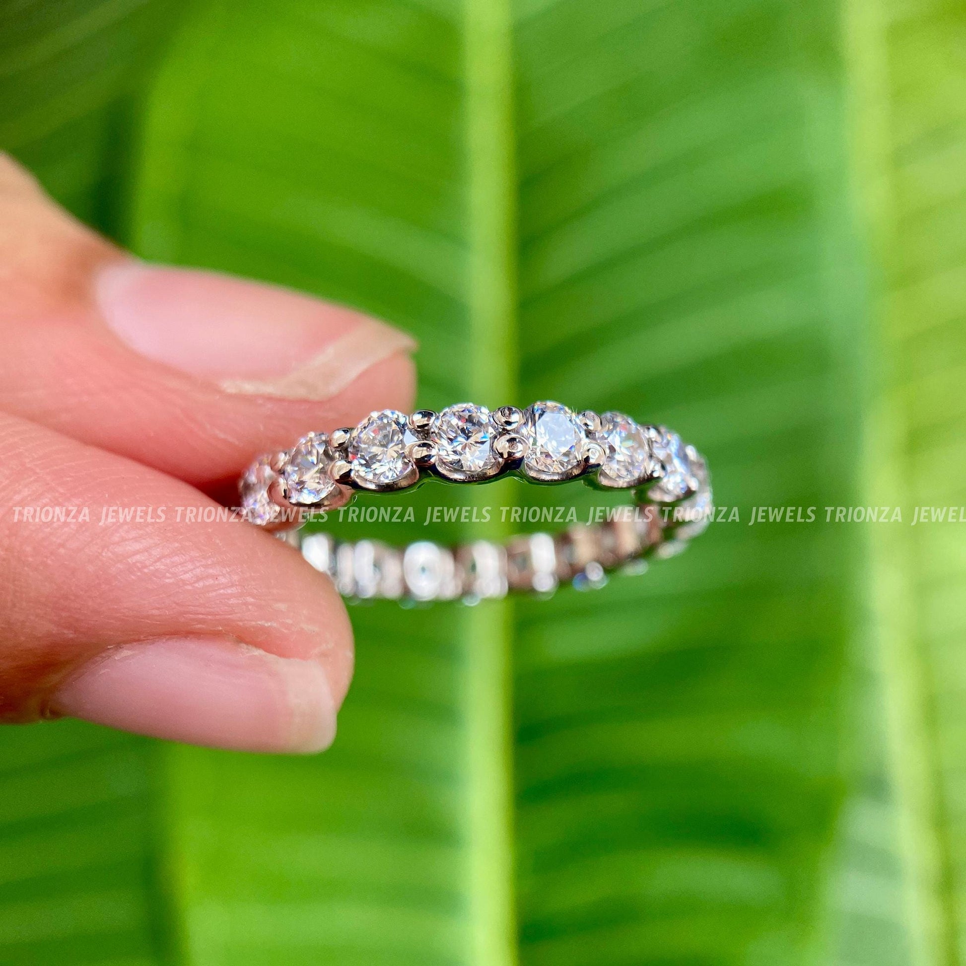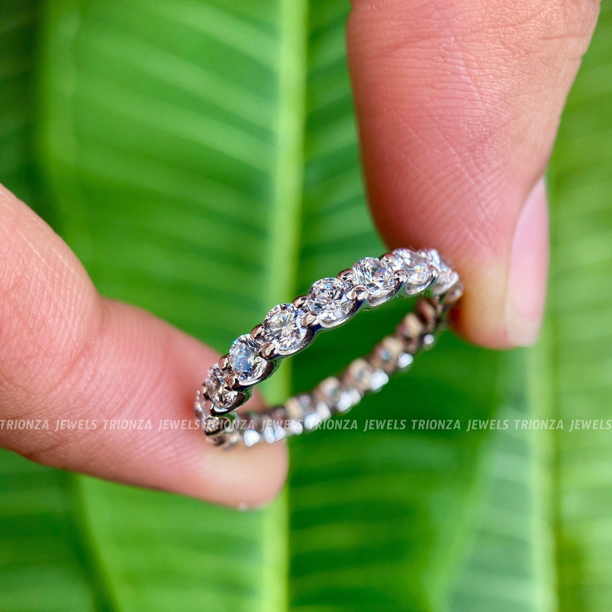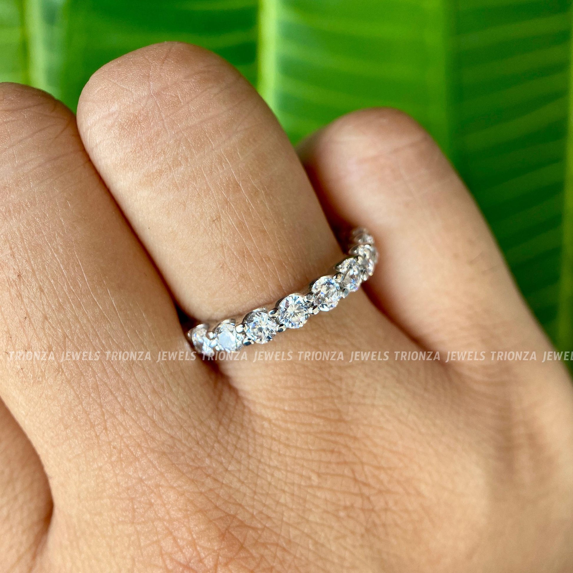Discover our stunning 3mm Moissanite Full Eternity Band, a perfect U Prong Stackable Wedding Ring or Anniversary Gift. This brilliant cut eternity band features D/E color and VVS clarity moissanite diamonds, offering an an eco-friendly and ethical alternative to traditional diamonds.