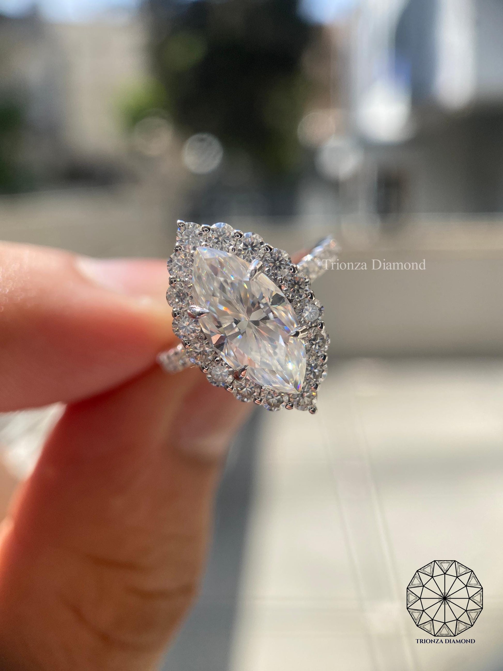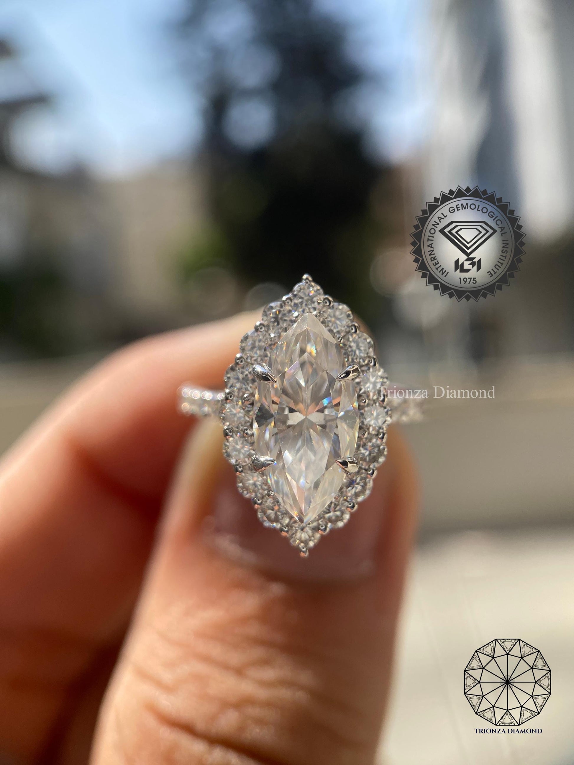 4.00 TCW Marquise Lab Diamond Halo 14k Gold Engagement Ring IGI Certified