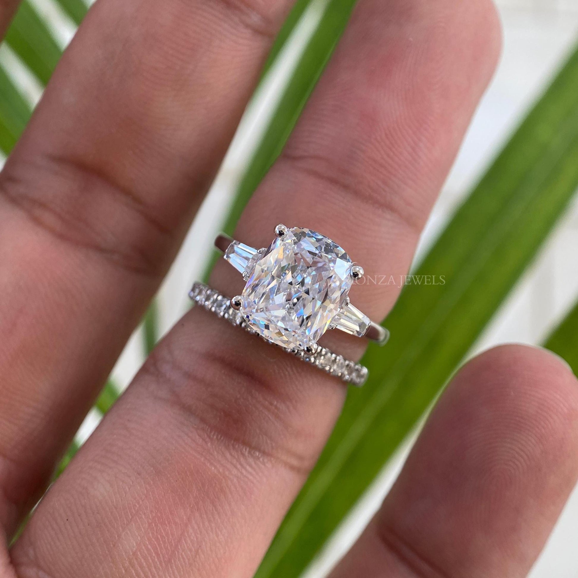 4 CT Cushion Cut Moissanite Wedding Ring Set - Bridal & Anniversary