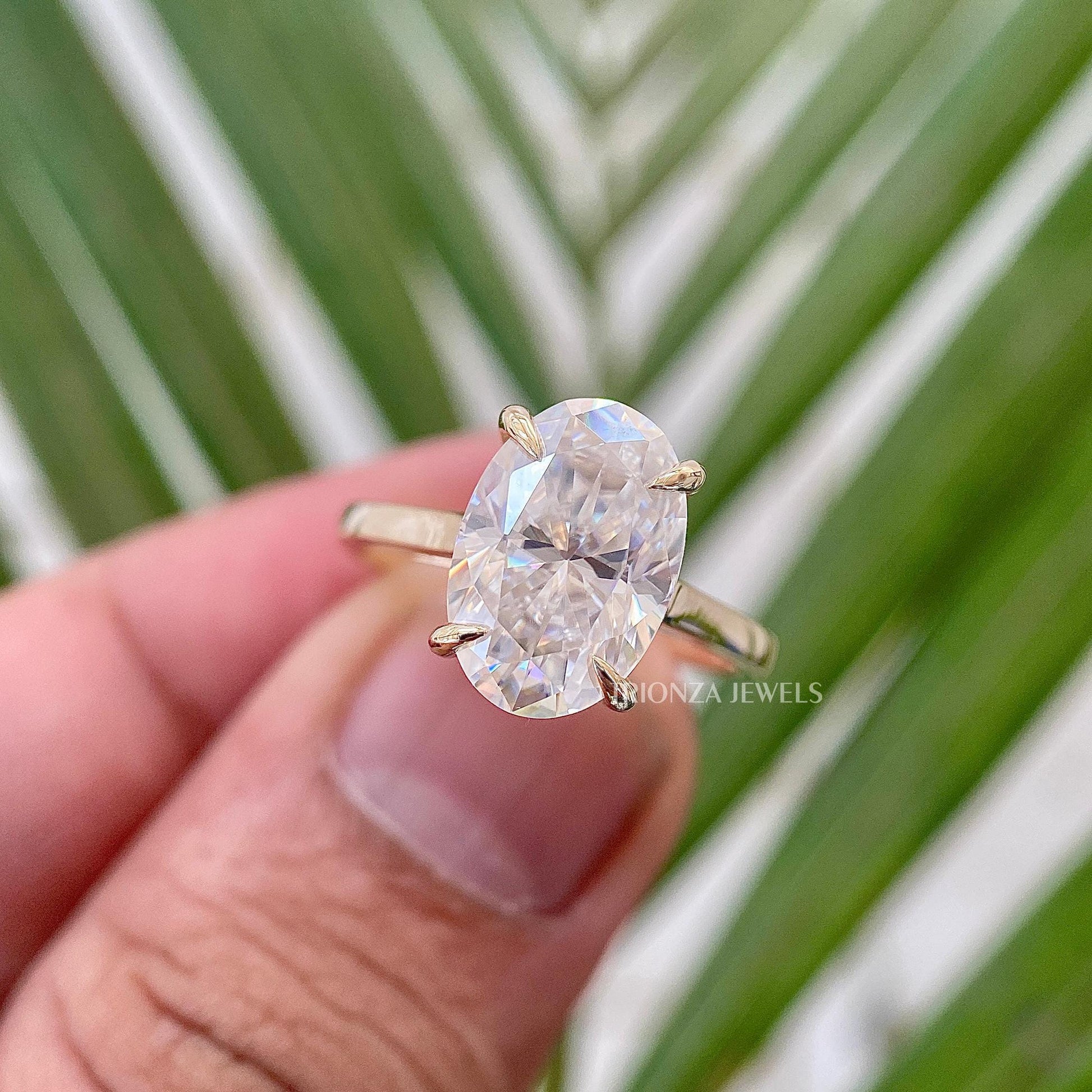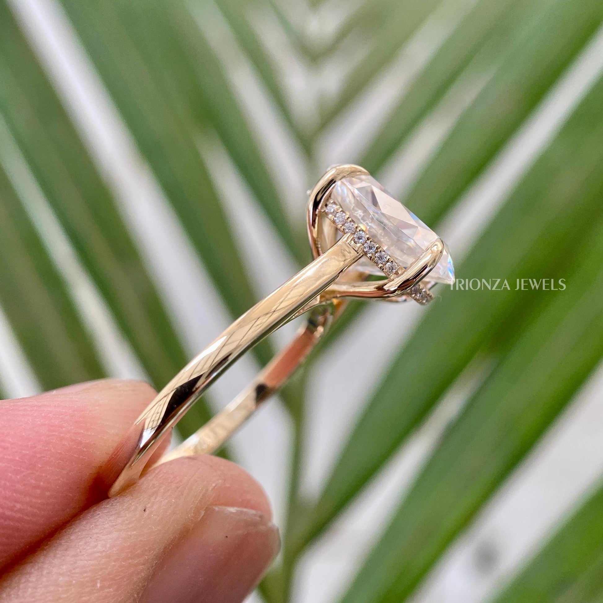 4 CT Oval Moissanite Engagement Ring | Hidden Halo 14K Gold