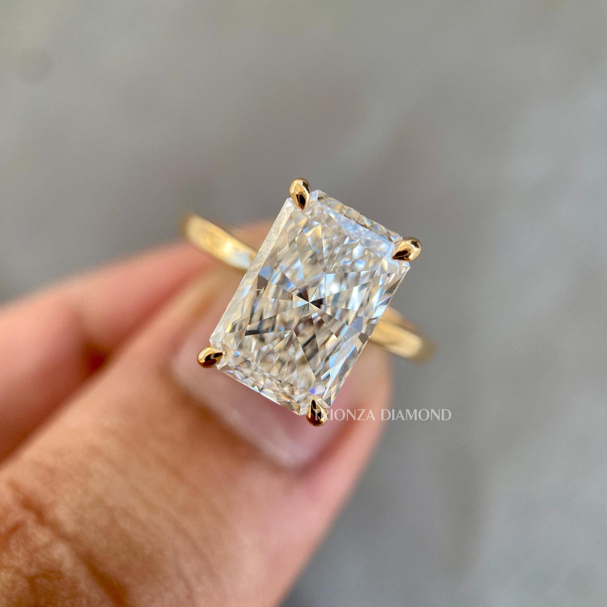 4 CT Radiant Lab Grown Diamond Solitaire Wedding Ring 14k Gold