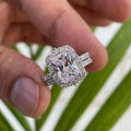 4 CT Radiant Moissanite Halo Engagement Ring 14K Gold Bridal Set