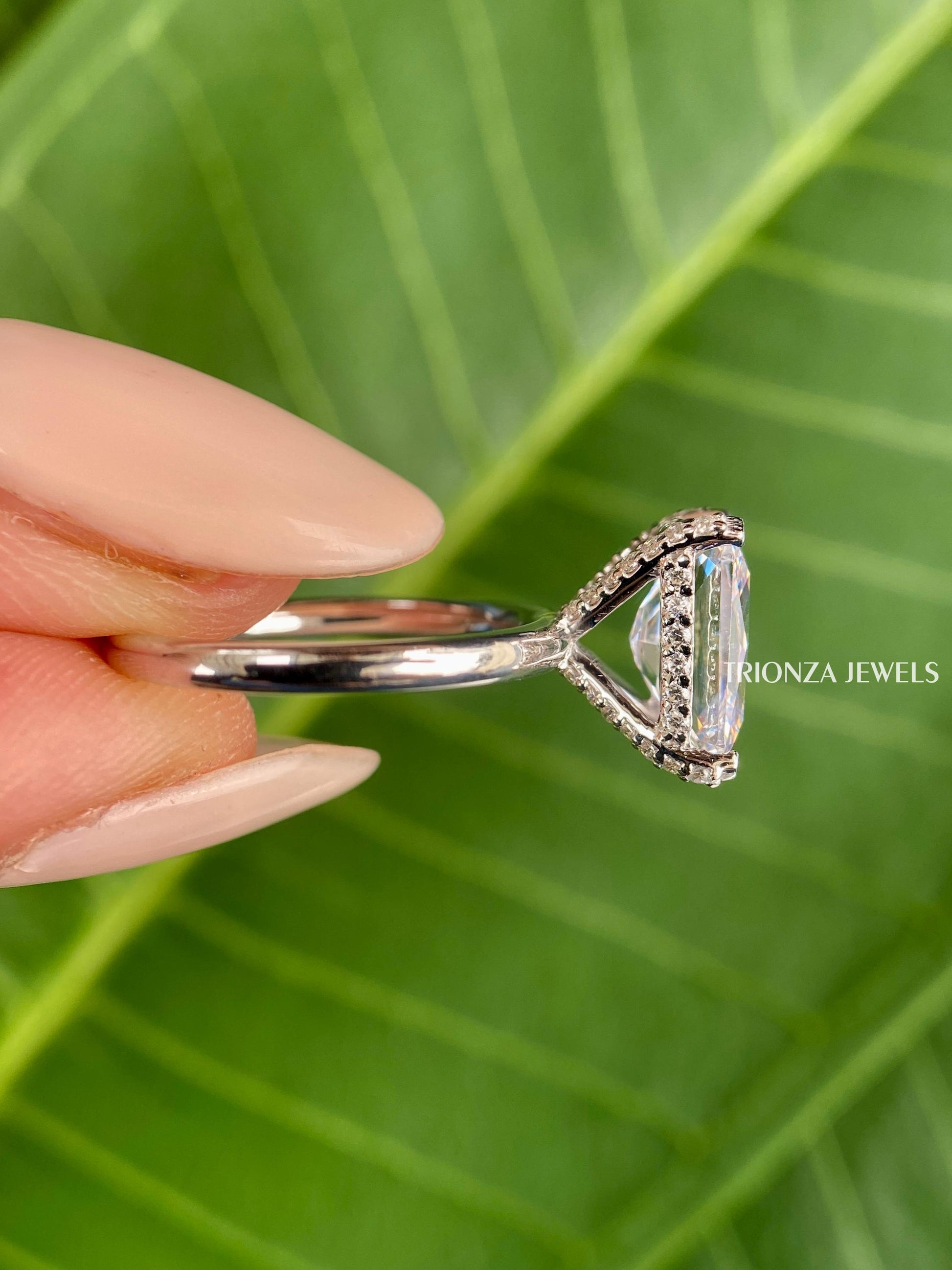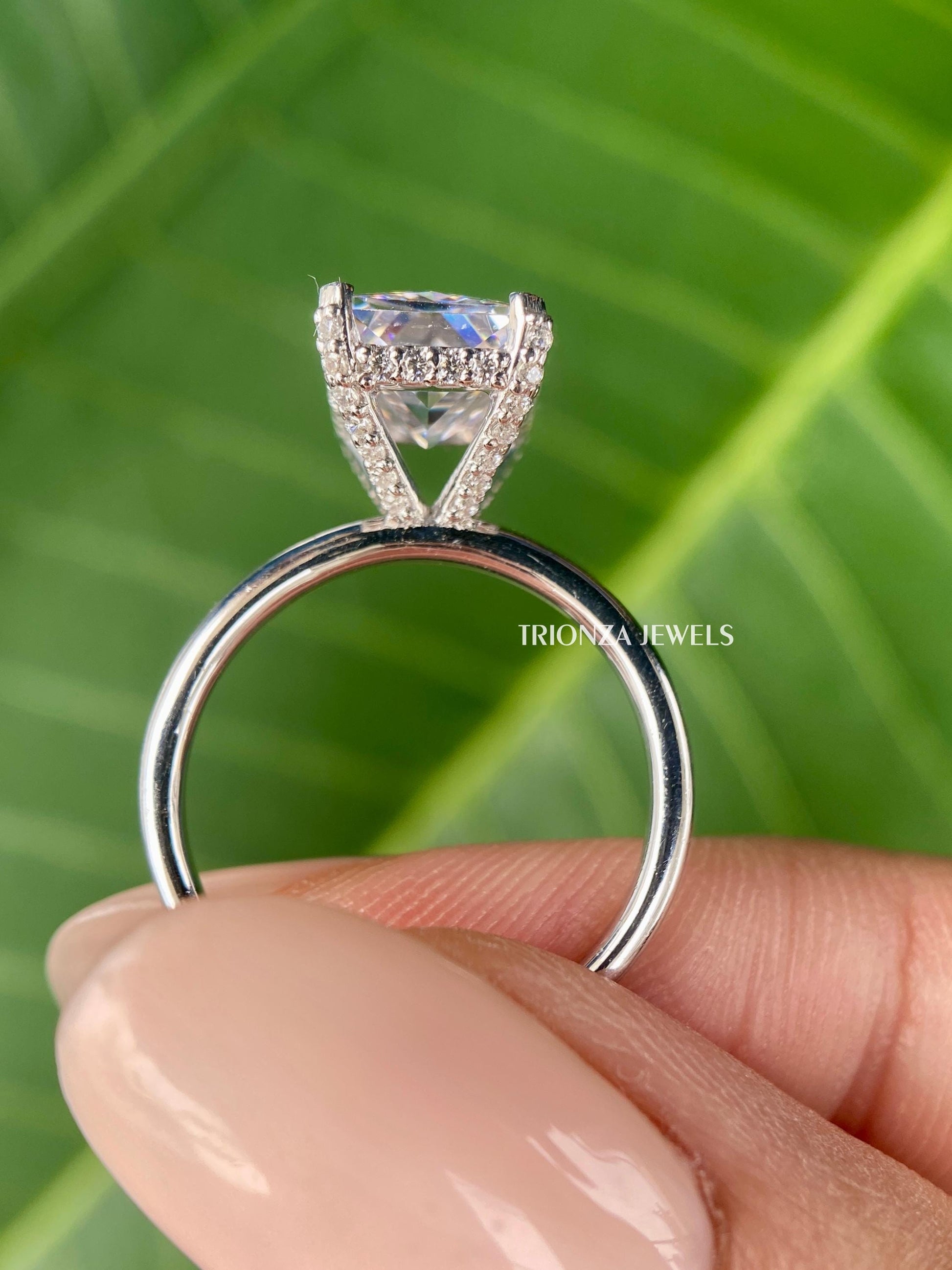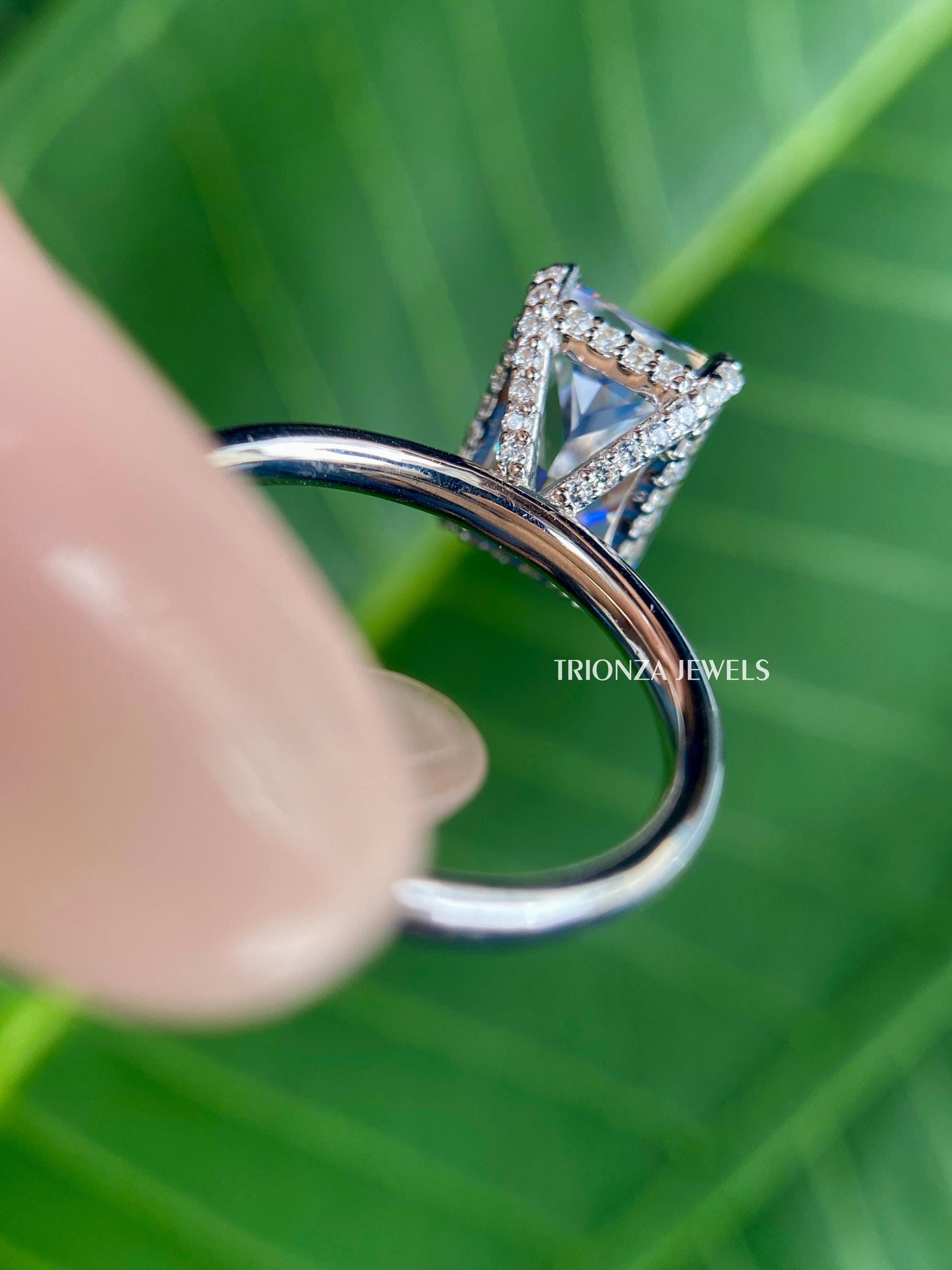 4CT Radiant Moissanite Solitaire Engagement Ring Gold Hidden Halo