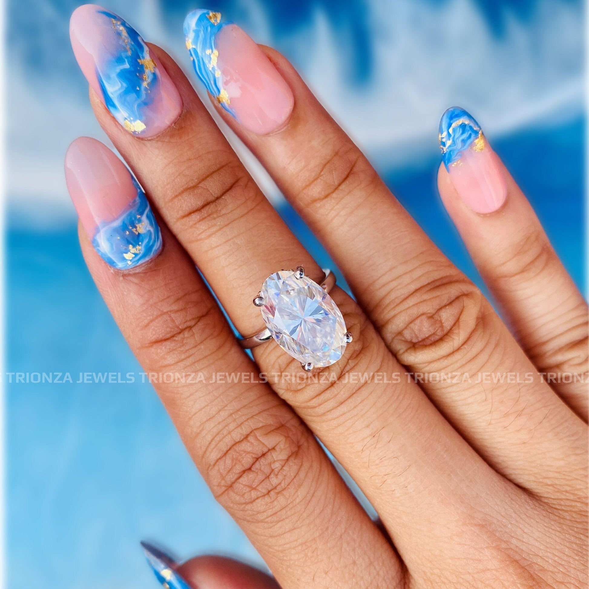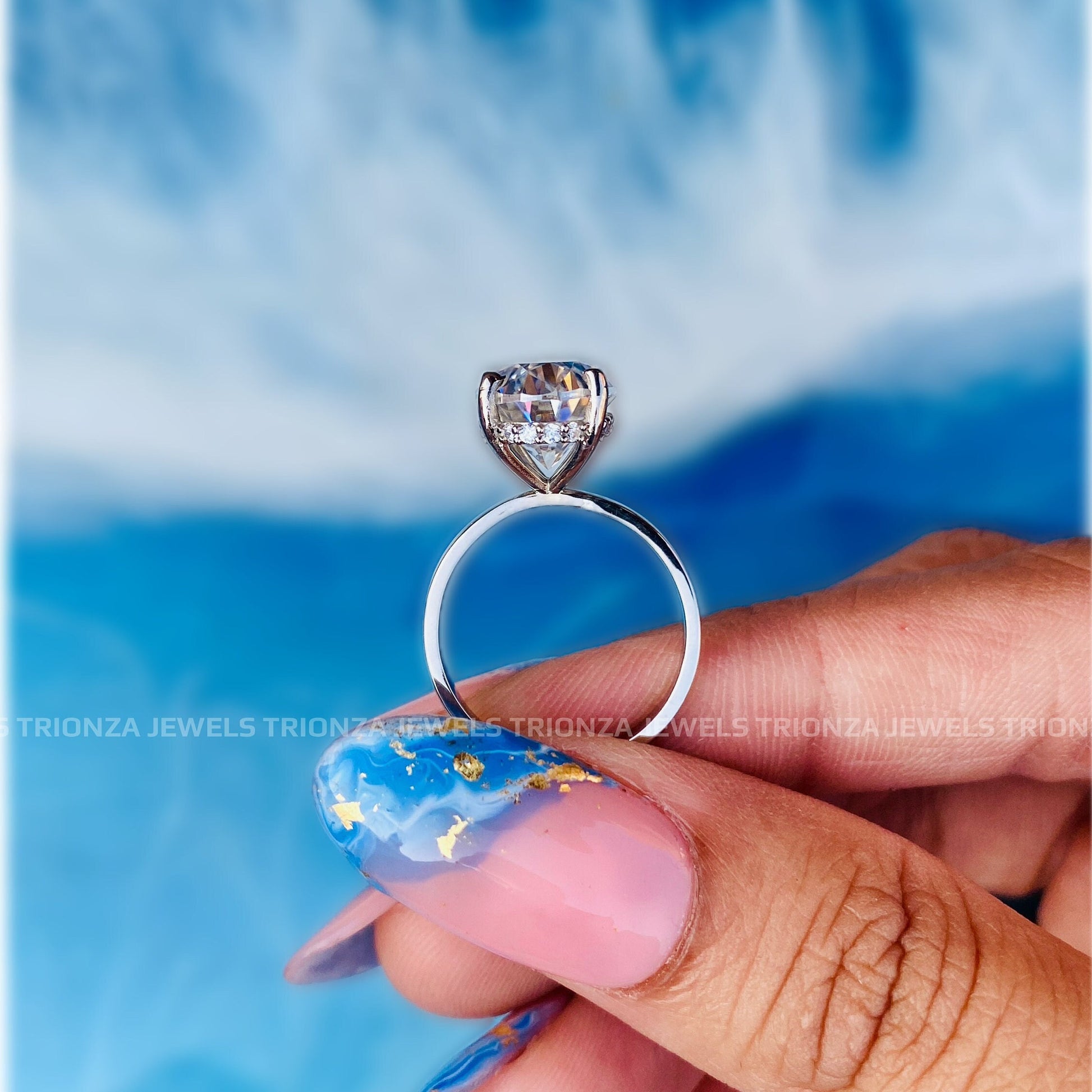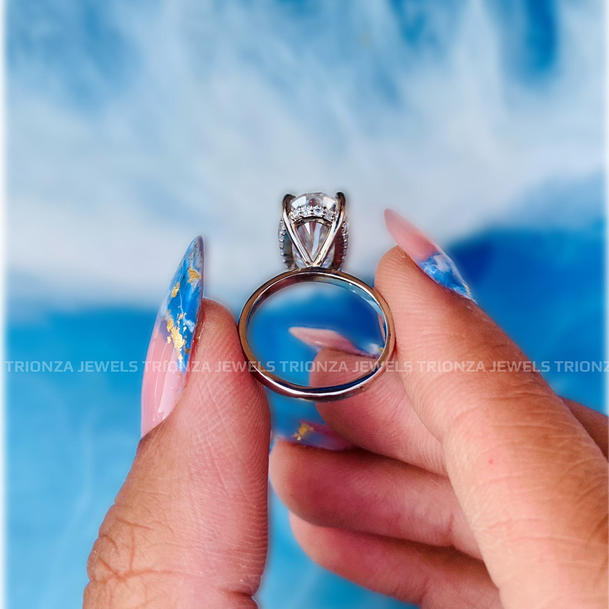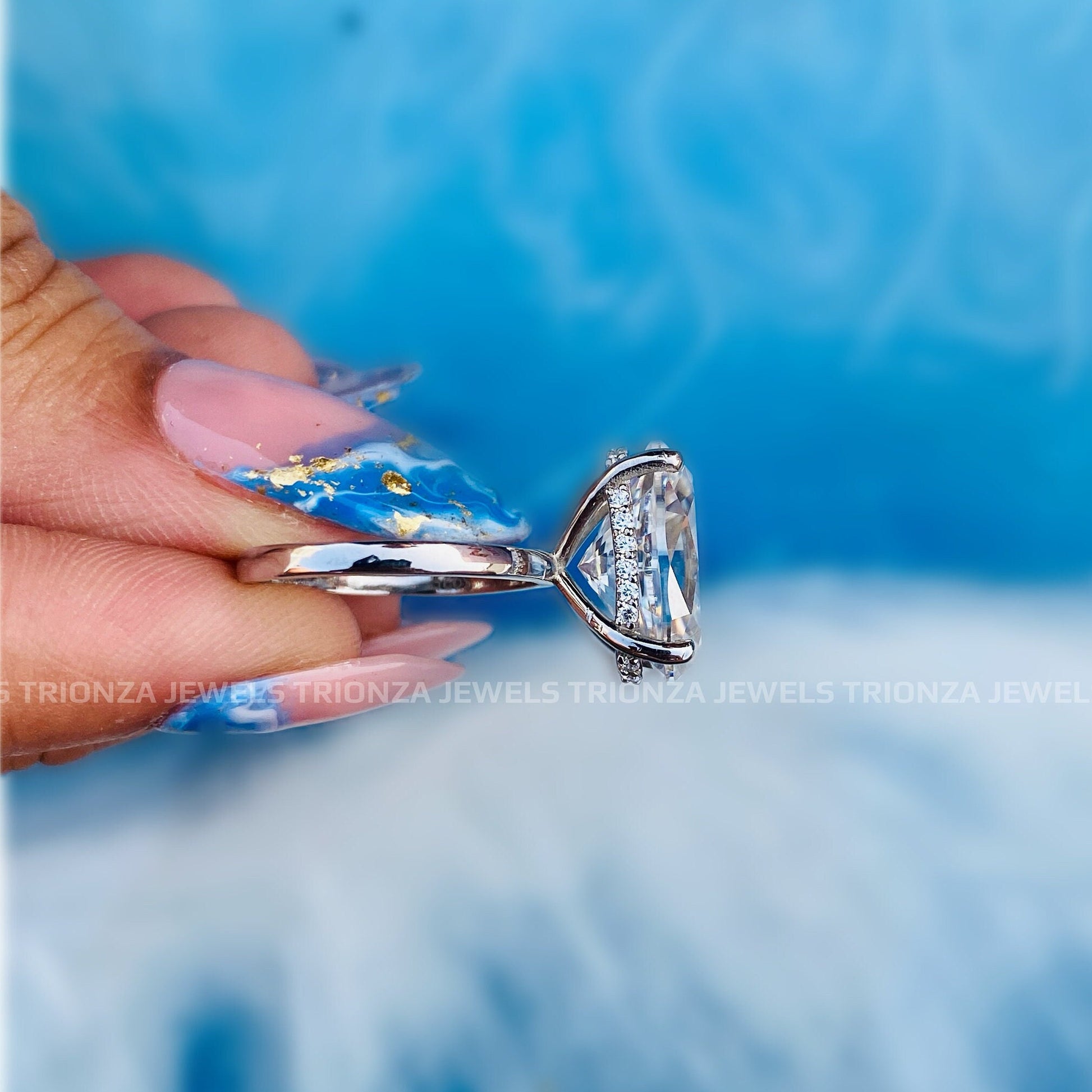 Elevate your special moments with the stunning 5.0 CT Moval Cut Moissanite Engagement Ring from TRIONZA JEWELS! This unique hidden halo solitaire ring, crafted in 18K gold, is a perfect symbol for engagements, weddings, and anniversaries.