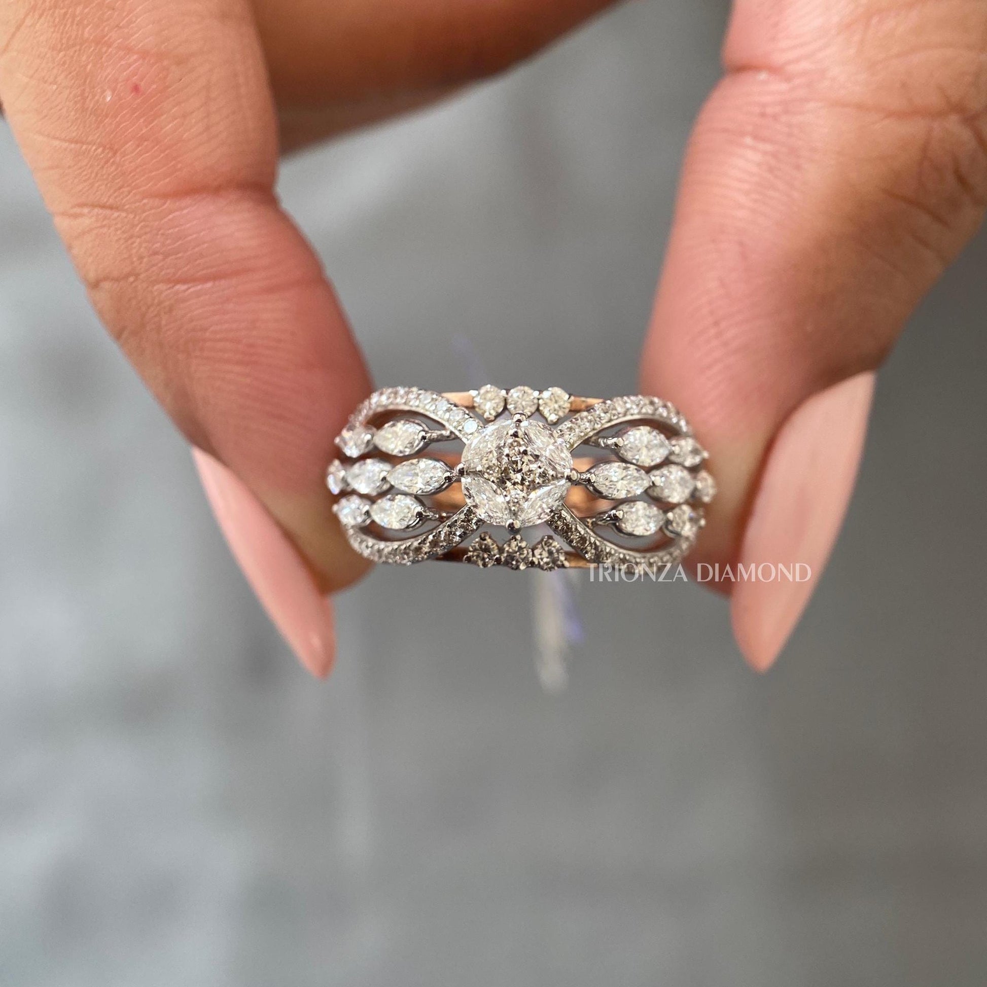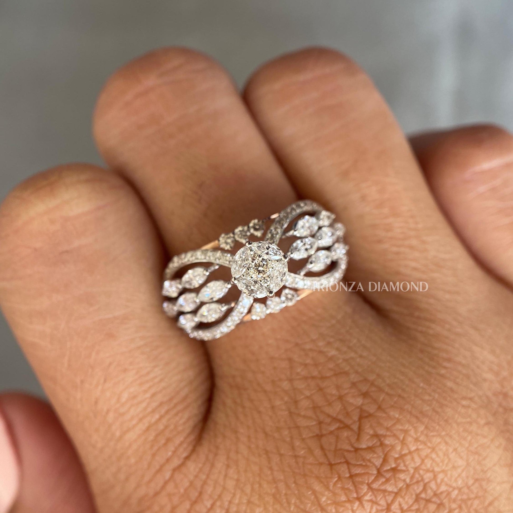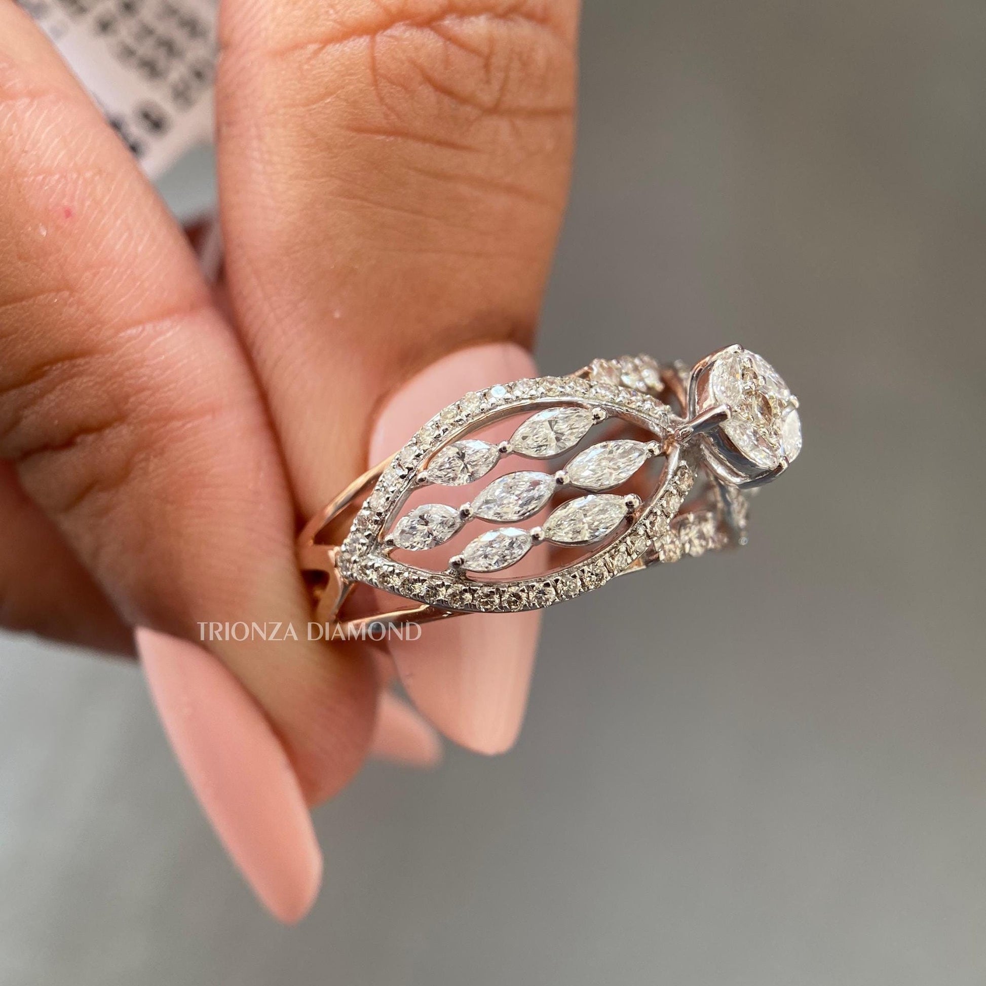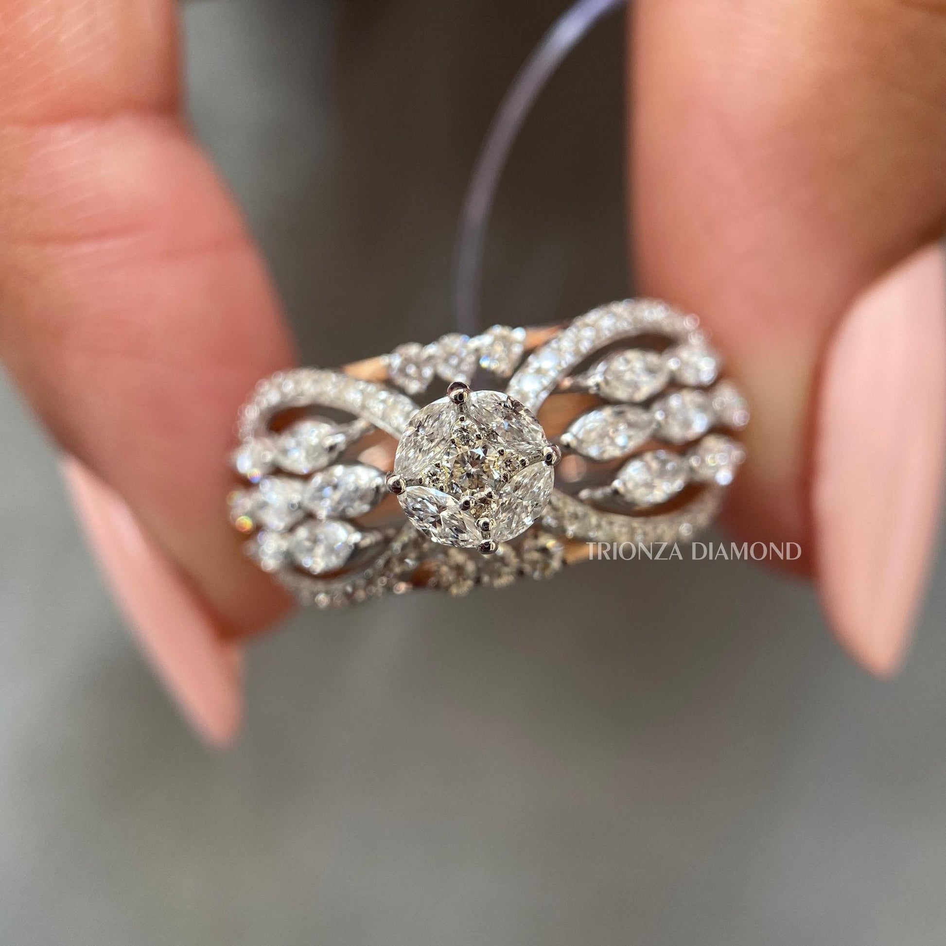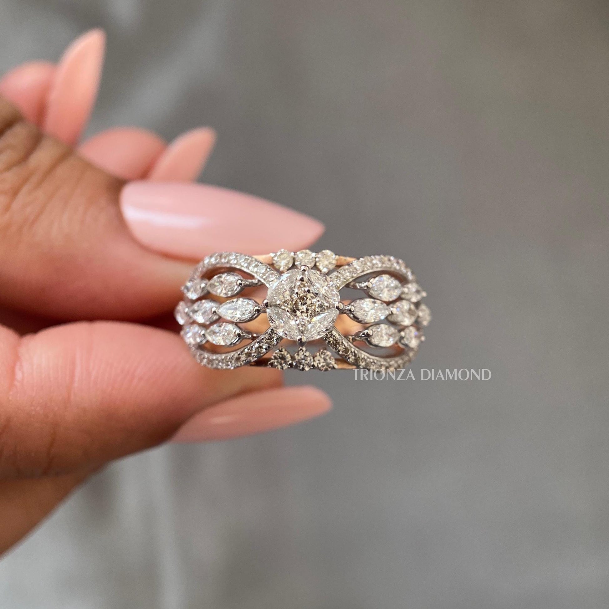 Discover the elegance of our 5.00 TCW Marquise & Round Cut Cluster Lab Grown Diamond Ring. Perfect for weddings, anniversaries, or a stunning gift, this conflict-free ring is crafted with D/VS1 lab-grown diamonds by TRIONZA DIAMOND.