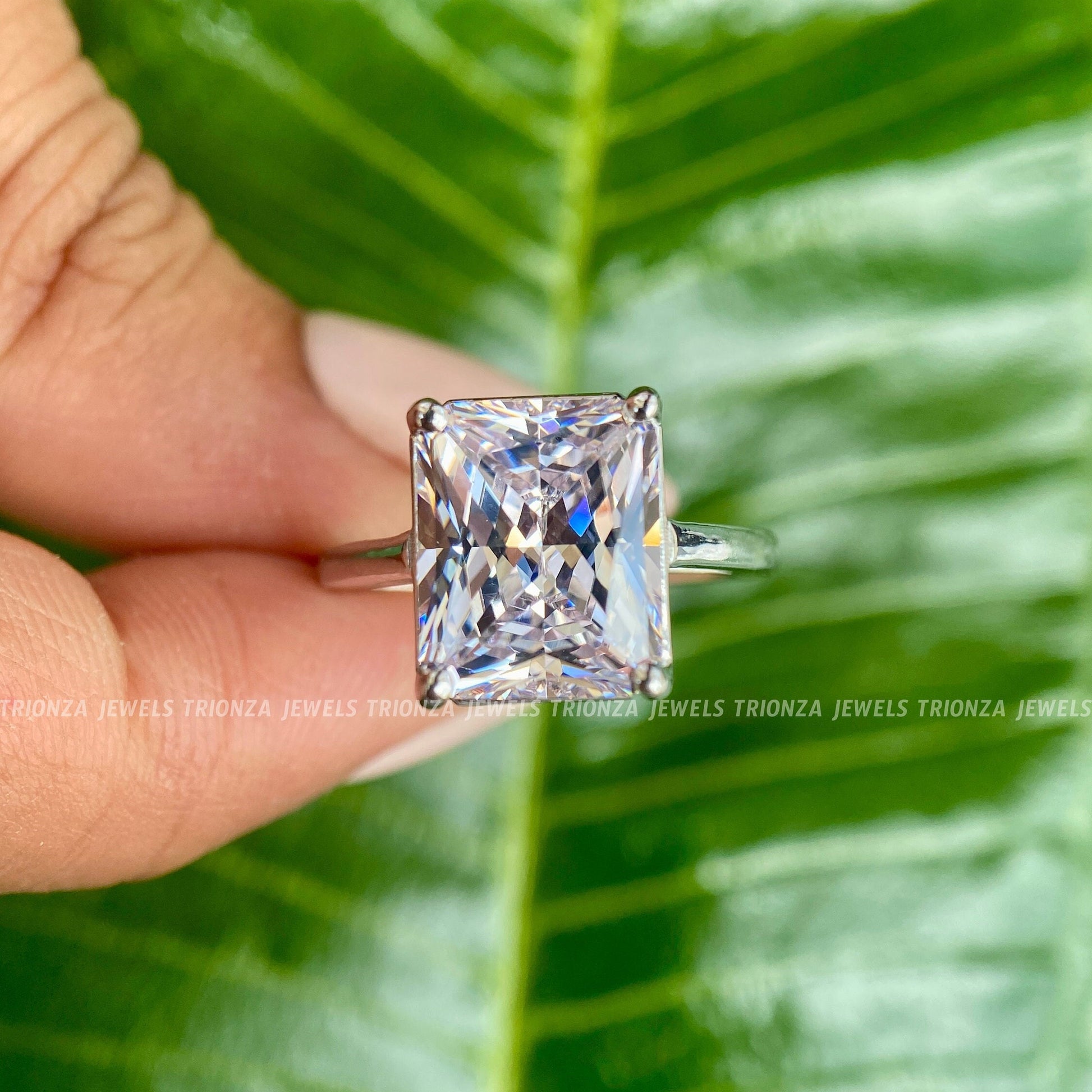 5 CT Radiant Moissanite Engagement Ring - Dainty Gold Hidden Halo