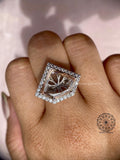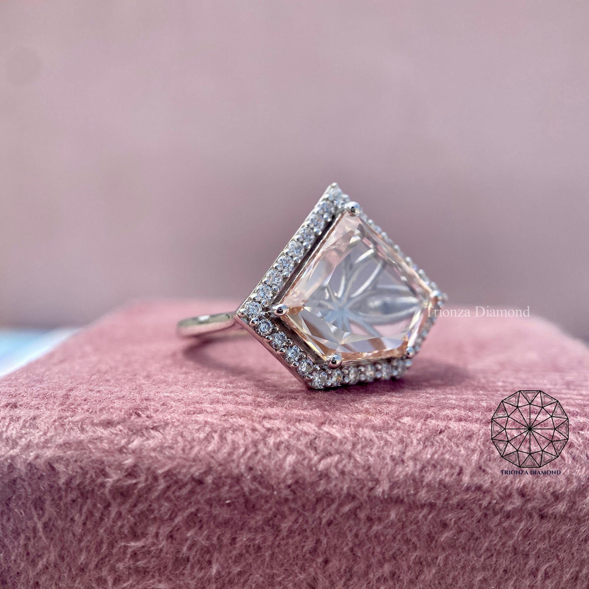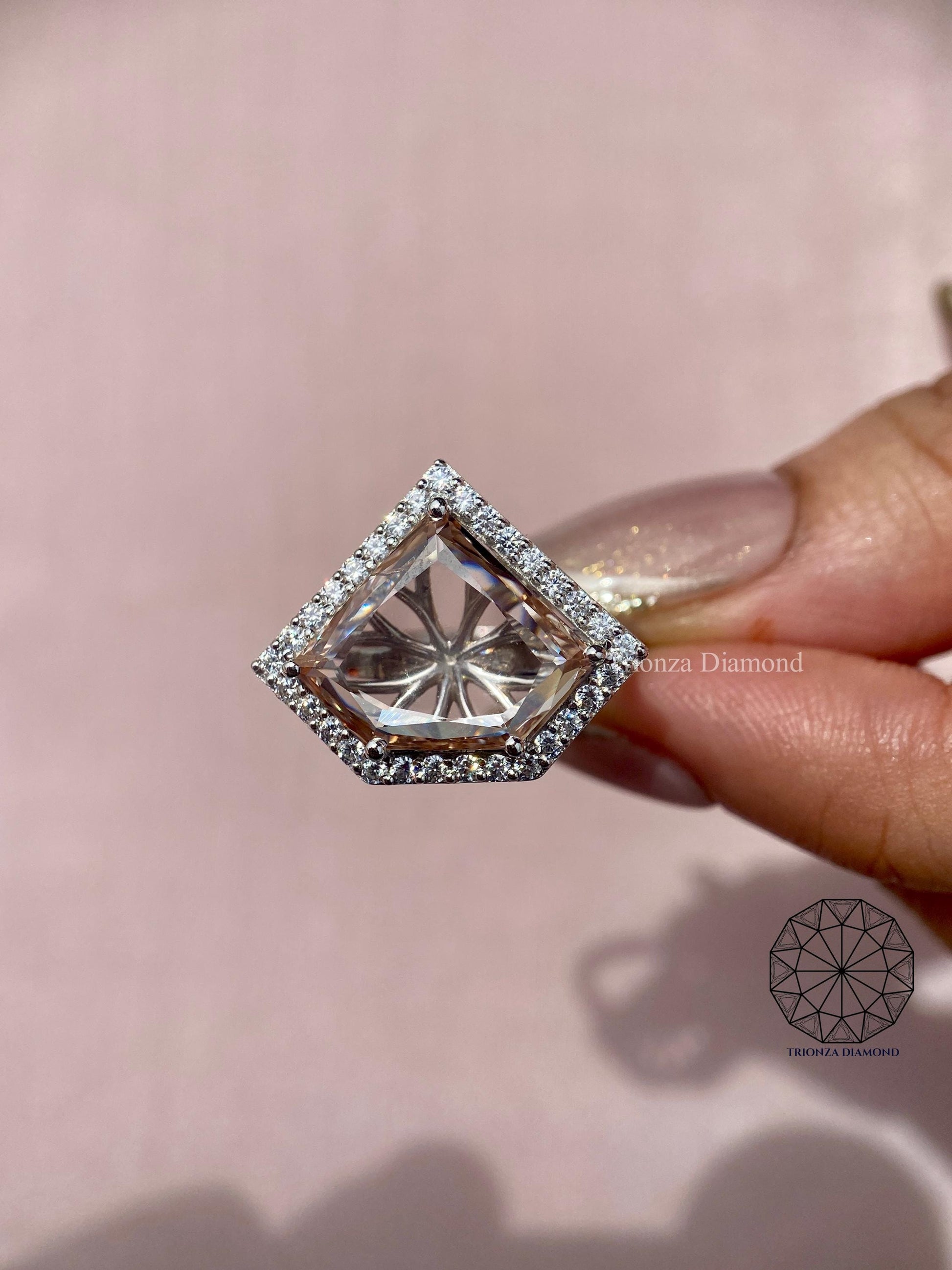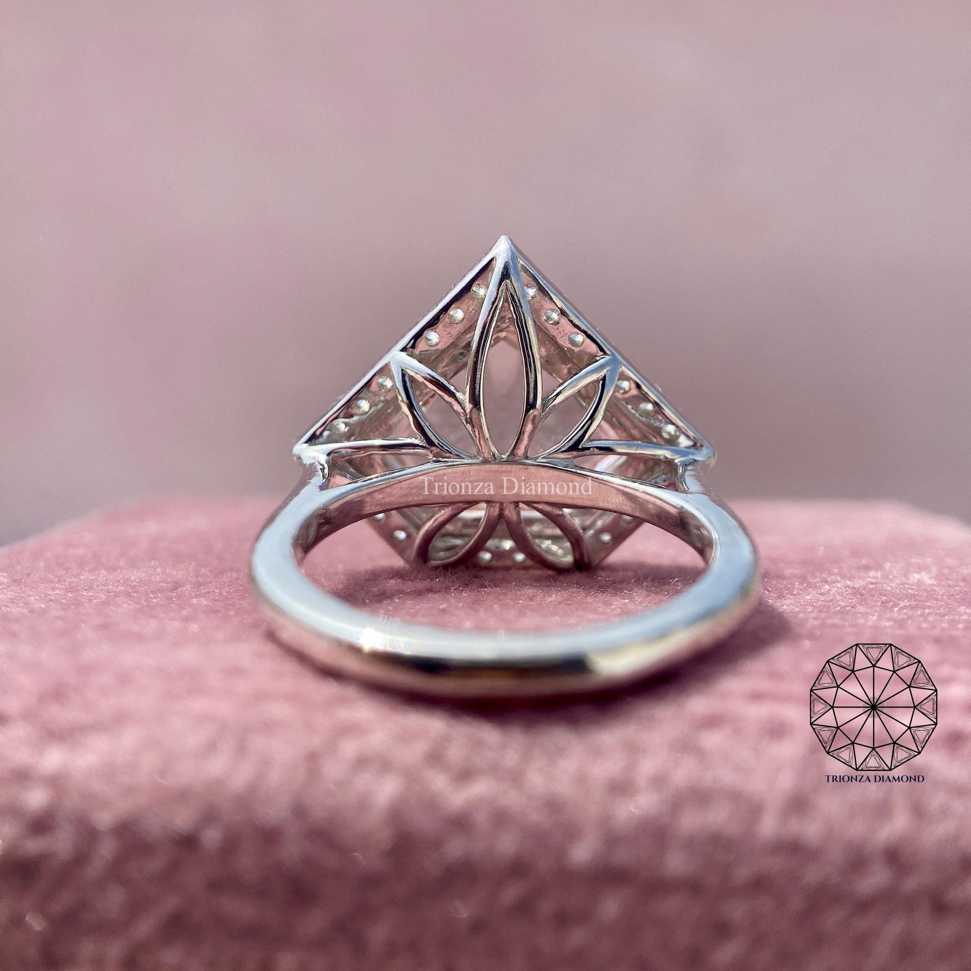 Discover elegance with our 5 CT Modified Trillion Rose Cut Lab Grown Diamond Halo Engagement Ring, IGI Certified. This fancy, artistic, and geometric ring features a unique design perfect for weddings, engagements, or as a special gift. All diamonds are 100% pure lab-grown and conflict-free, crafted with love by TRIONZADIAMOND.