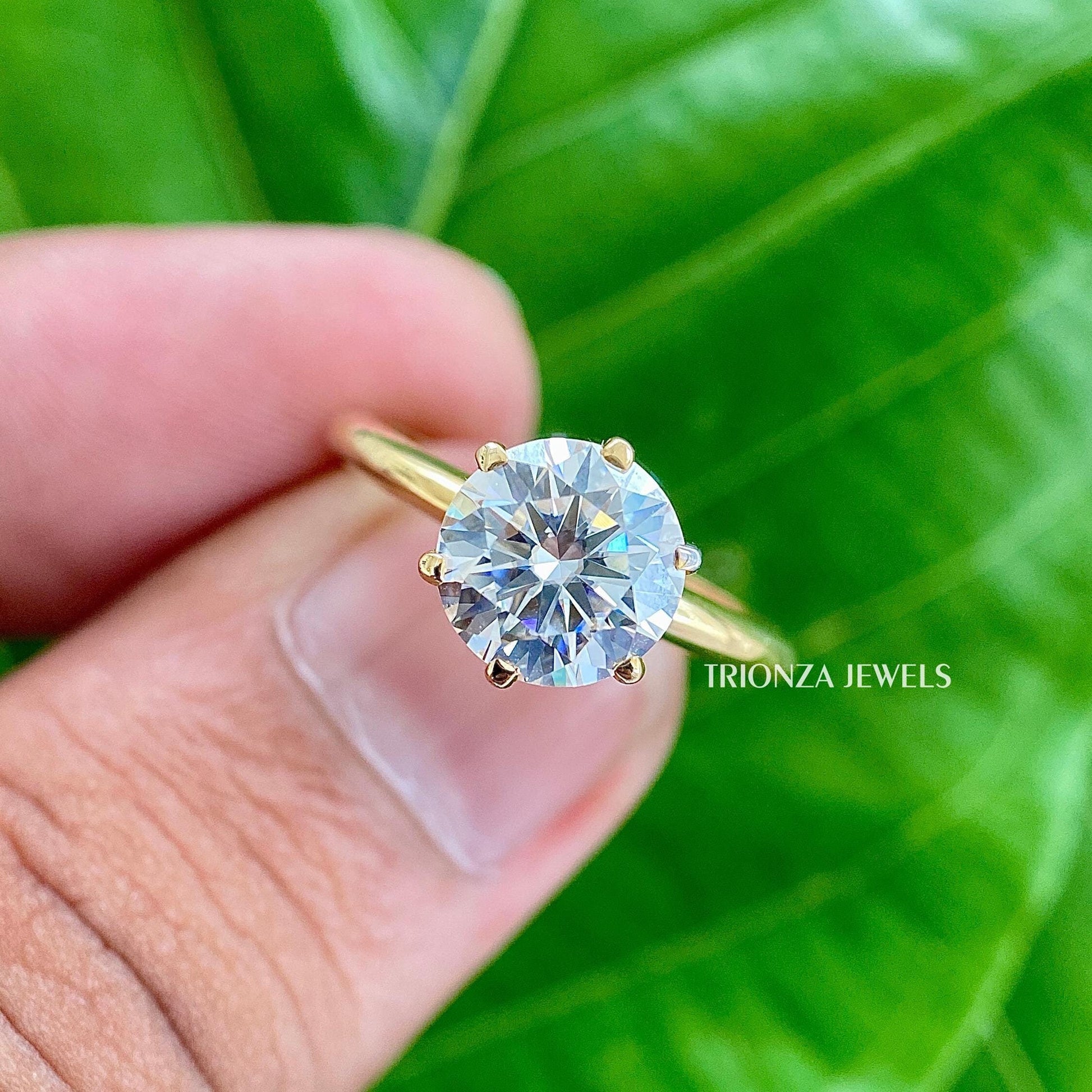 Discover our exquisite 6-Prong Round Engagement Ring, meticulously crafted in 14k Solid Gold. This stunning solitaire features a brilliant Moissanite in 1, 1.5, or 2 CT options, making it a perfect choice for an engagement, anniversary, or promise ring.