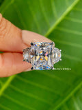 7.10 TCW Ice Crushed Radiant Moissanite Three Stone Engagement Ring