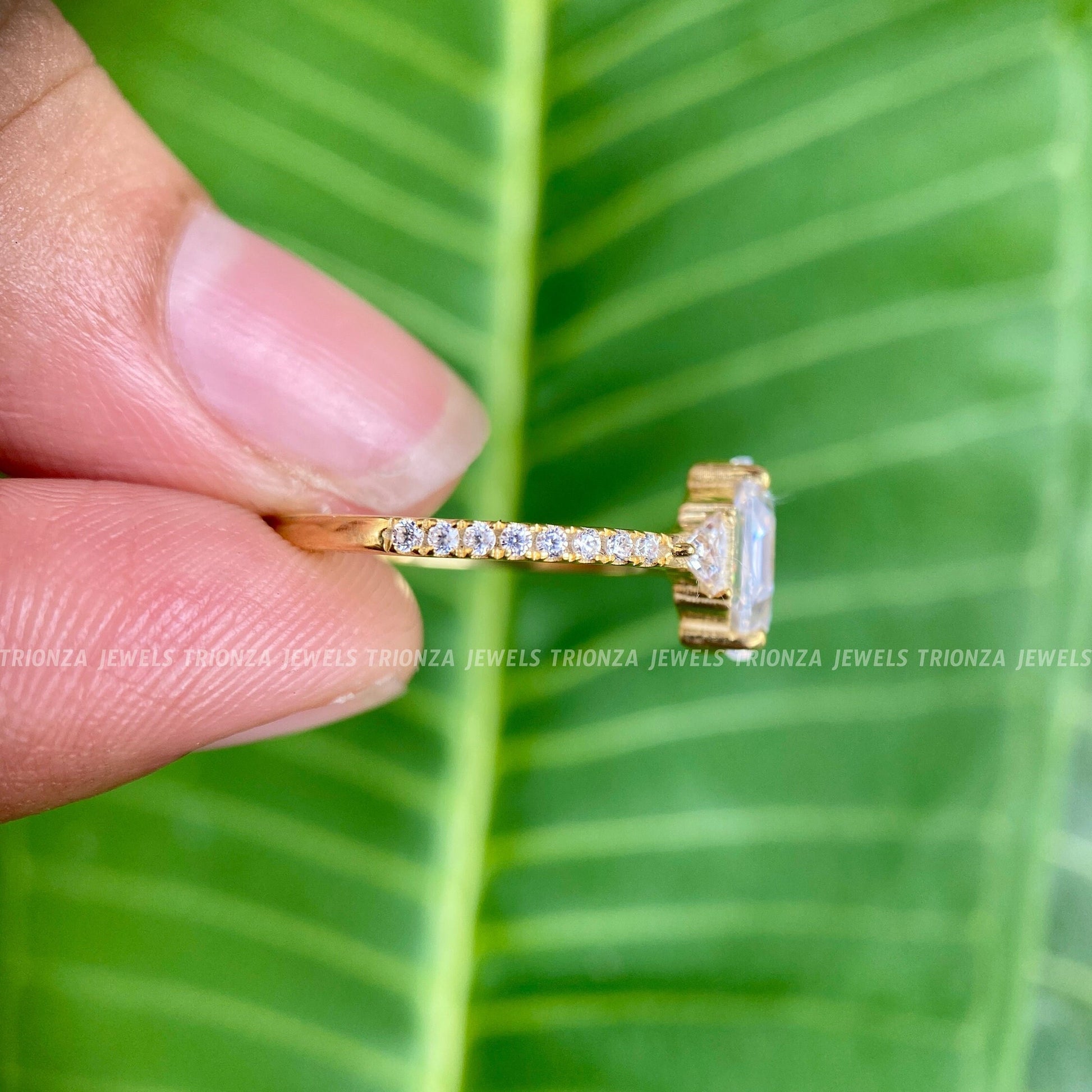 - Side Diamond Shape: Trillion Cut & Round Cut