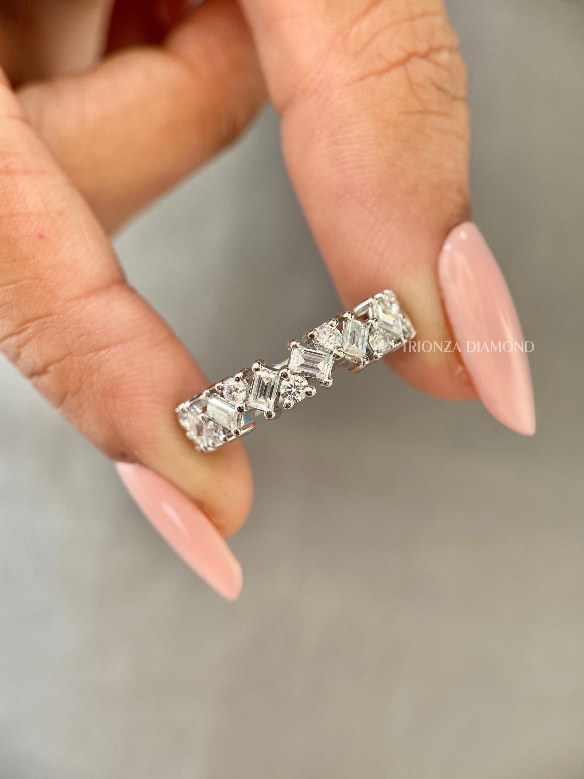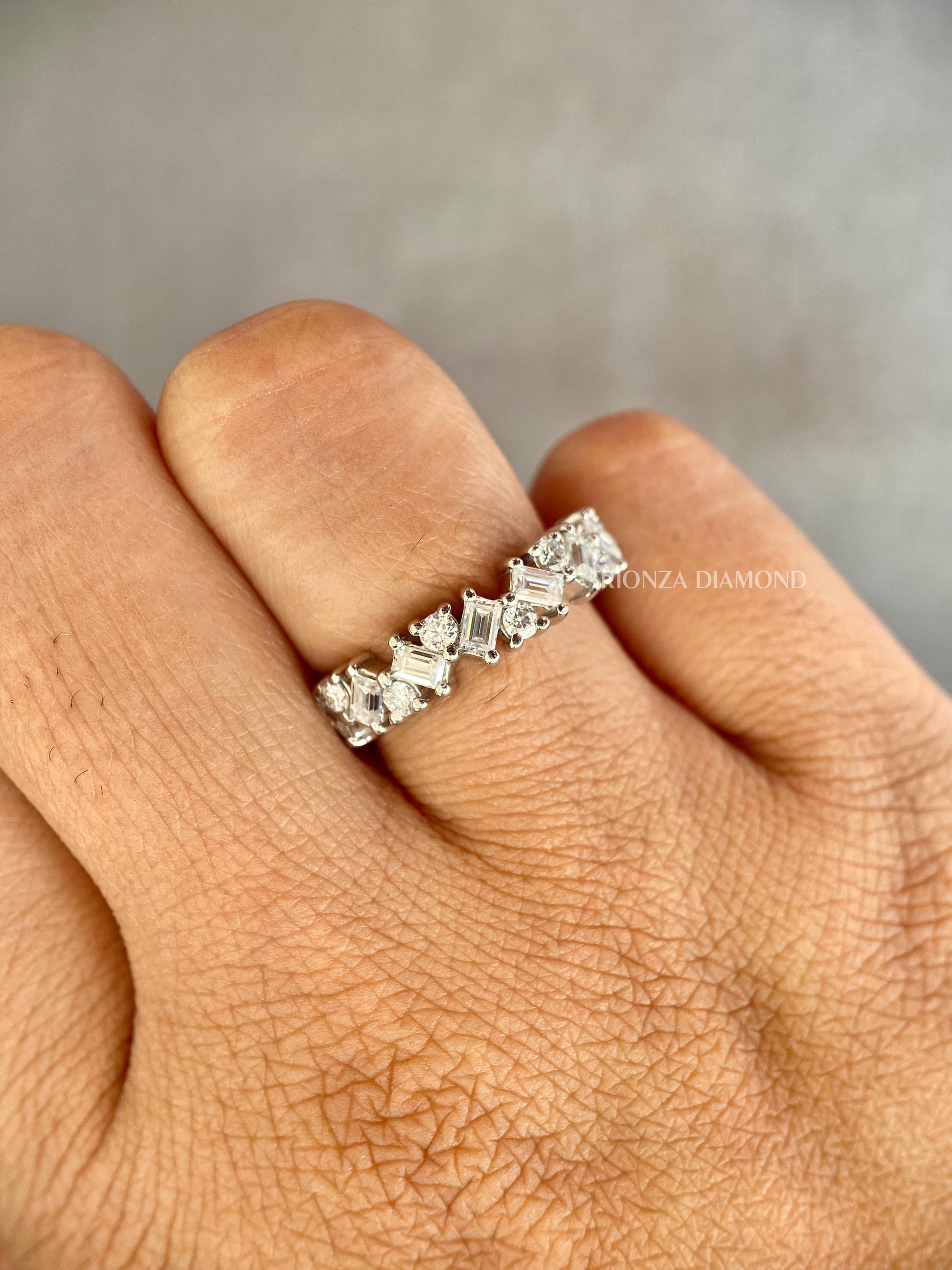 Baguette & Round Lab Grown Diamond Half Eternity Stackable Band