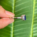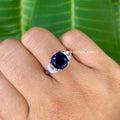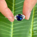 Discover the exquisite 2.05 CT Blue Cushion Cut Moissanite Three Stone Ring, a perfect anniversary or promise gift for her. This stunning ring features a vibrant blue cushion-cut moissanite center stone, complemented by sparkling side half-moon moissanite diamonds, all meticulously set in your choice of gold or platinum.