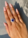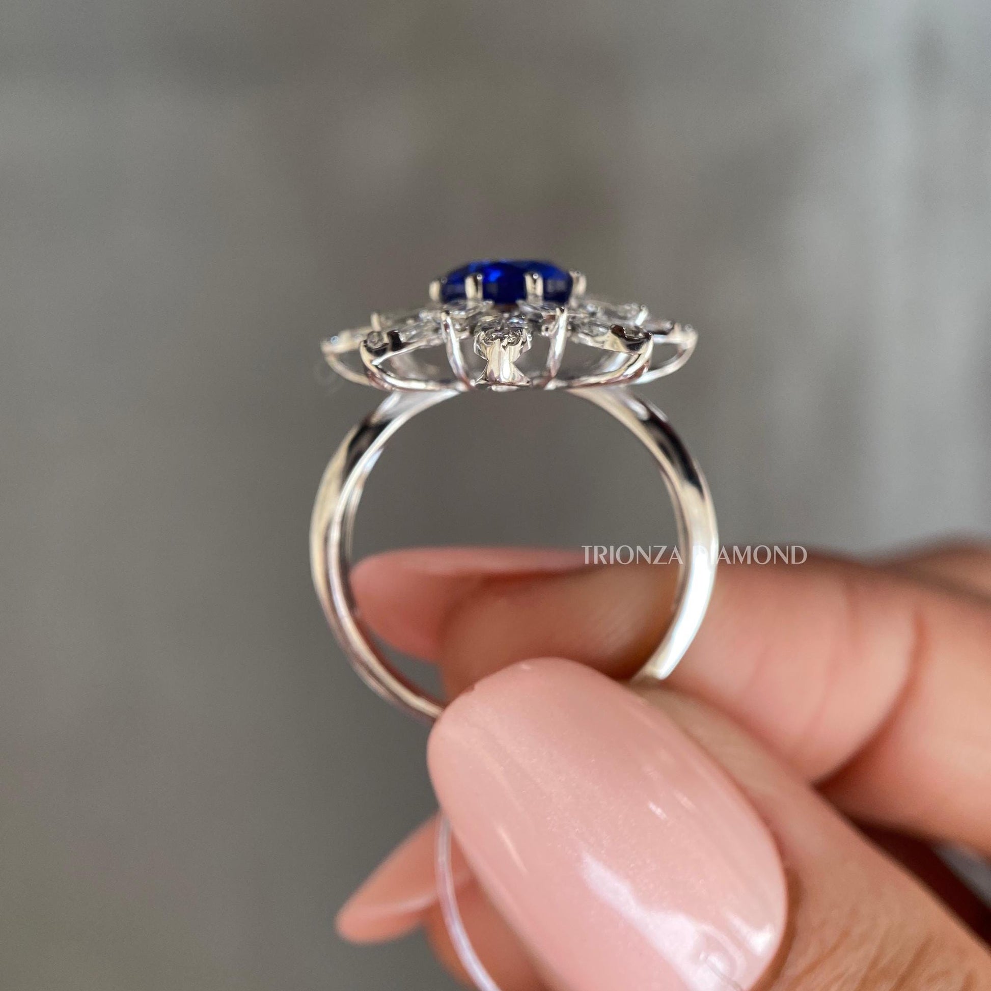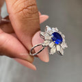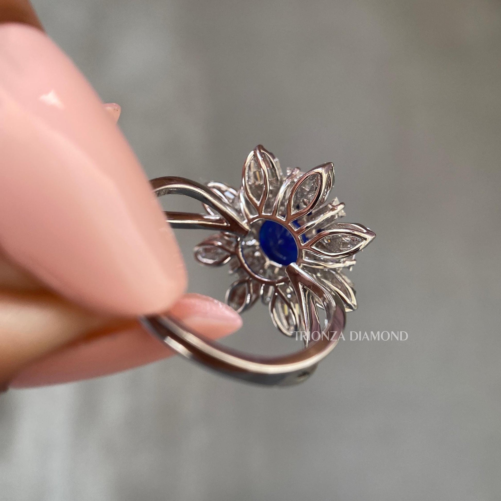 Blue Floral Diamond Wedding Ring - 14K White Gold GIA Certified