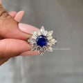 This exquisite Blue Floral Design Wedding Ring features a stunning round cut blue diamond and baguette natural mined diamonds. Perfect as an anniversary or wedding ring, it's handcrafted in 14K Solid Gold. All diamonds are ethically sourced and IGI/GIA Certified, ensuring authenticity and superior quality. Also available in yellow or rose gold.