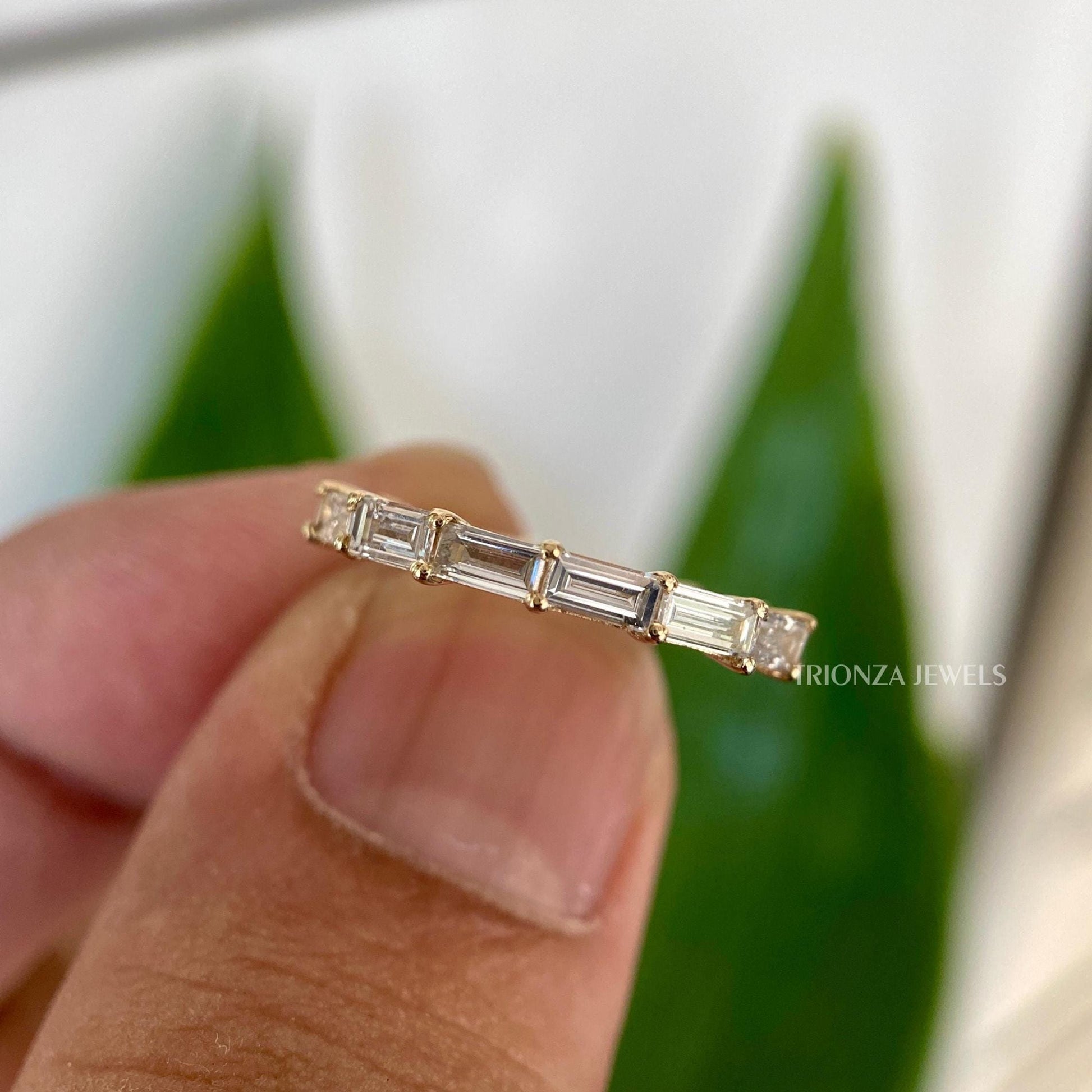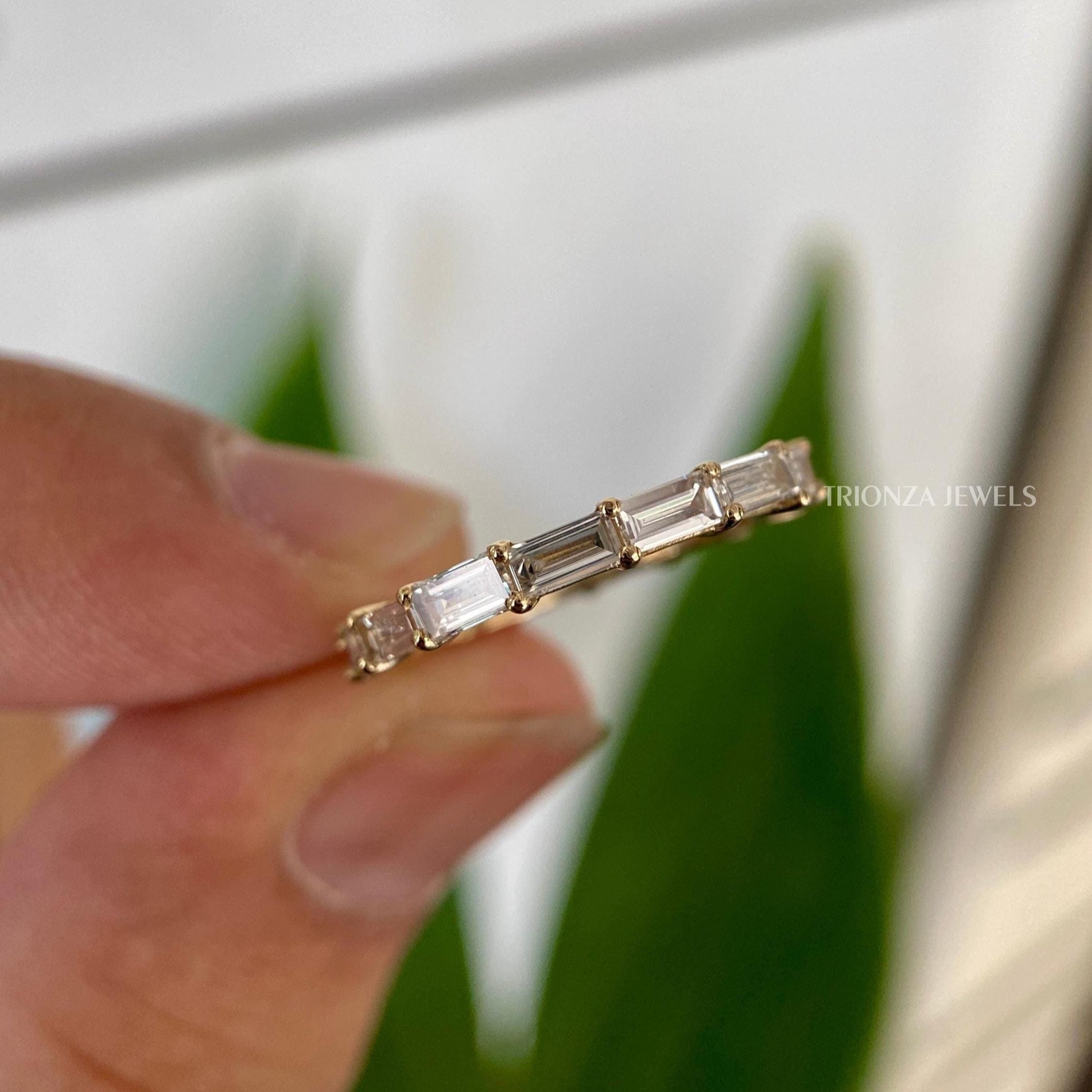 Discover the exquisite Baguette Cut Colorless Moissanite Full Eternity Band from TRIONZA JEWELS! This minimalist and elegant ring is perfect as a wedding band, a stackable accent, or a thoughtful anniversary gift for her. Crafted with confidence-driven and environmentally-friendly Moissanite, it offers the brilliance of a diamond with a sustainable choice.