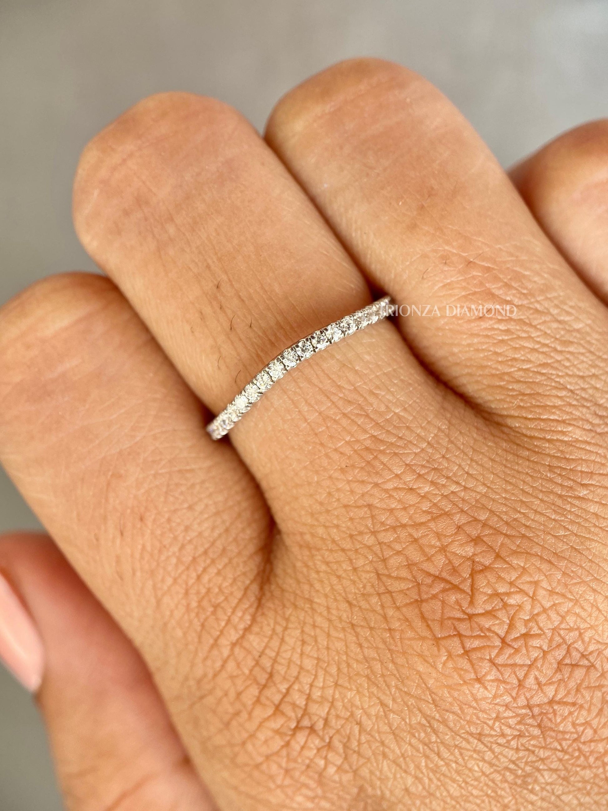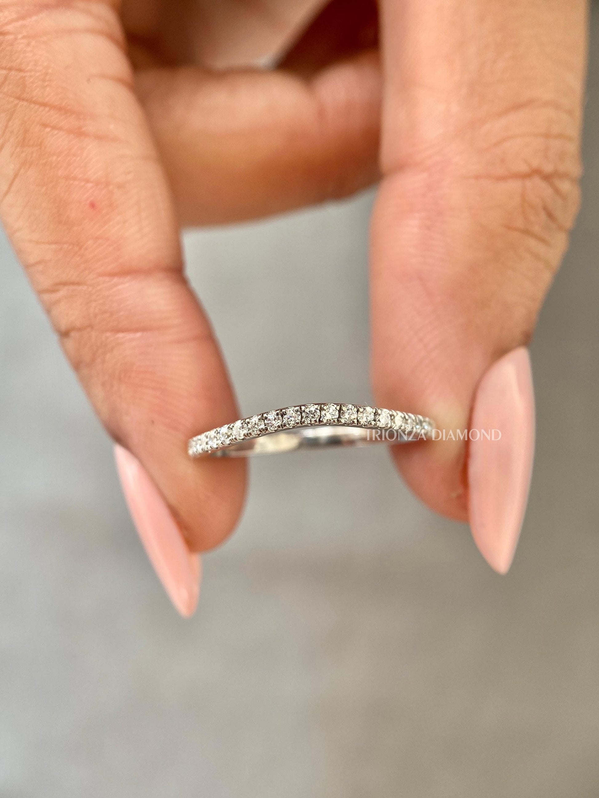 Discover our exquisite Dainty Curved Lab Grown Diamond Band, perfect as an anniversary, wedding, or engagement ring. This half eternity band features 1.10 MM round cut lab diamonds, designed for elegant stacking and contour matching.