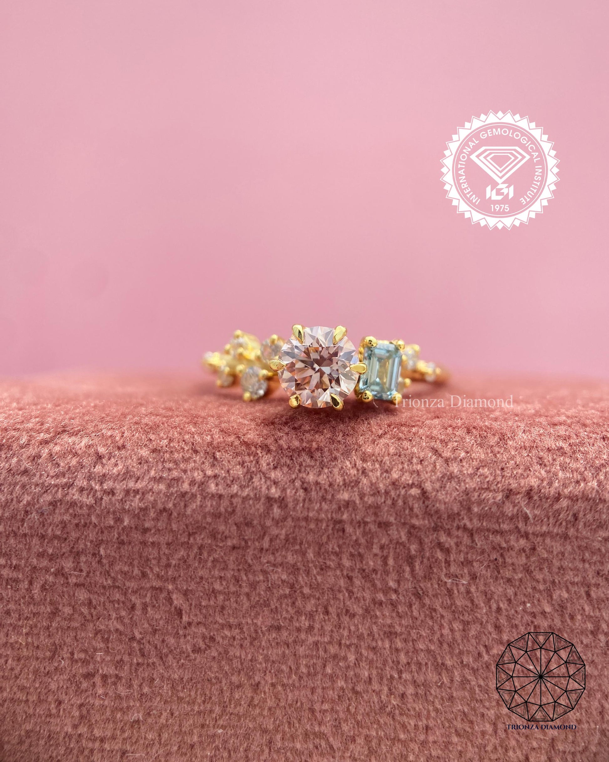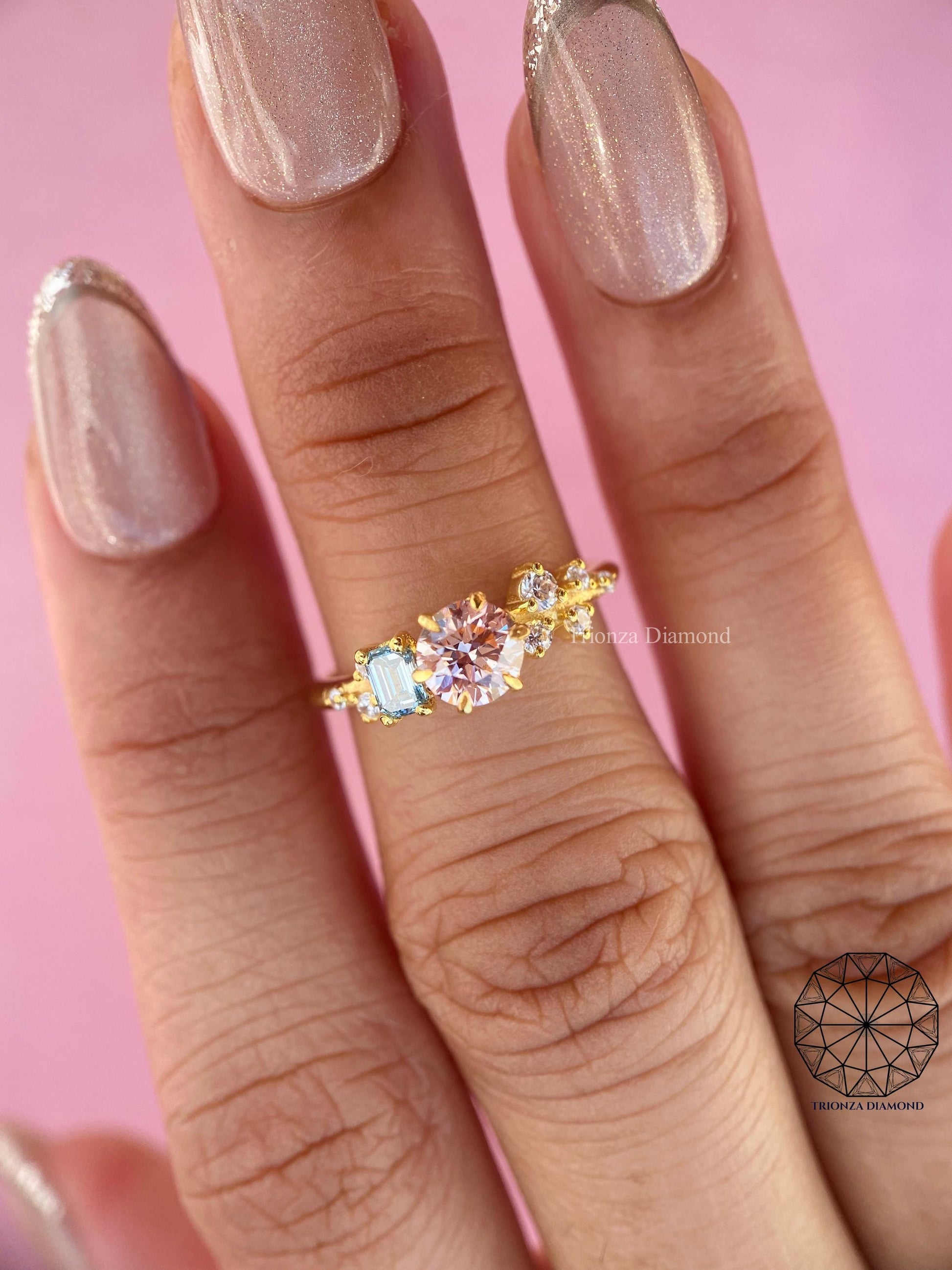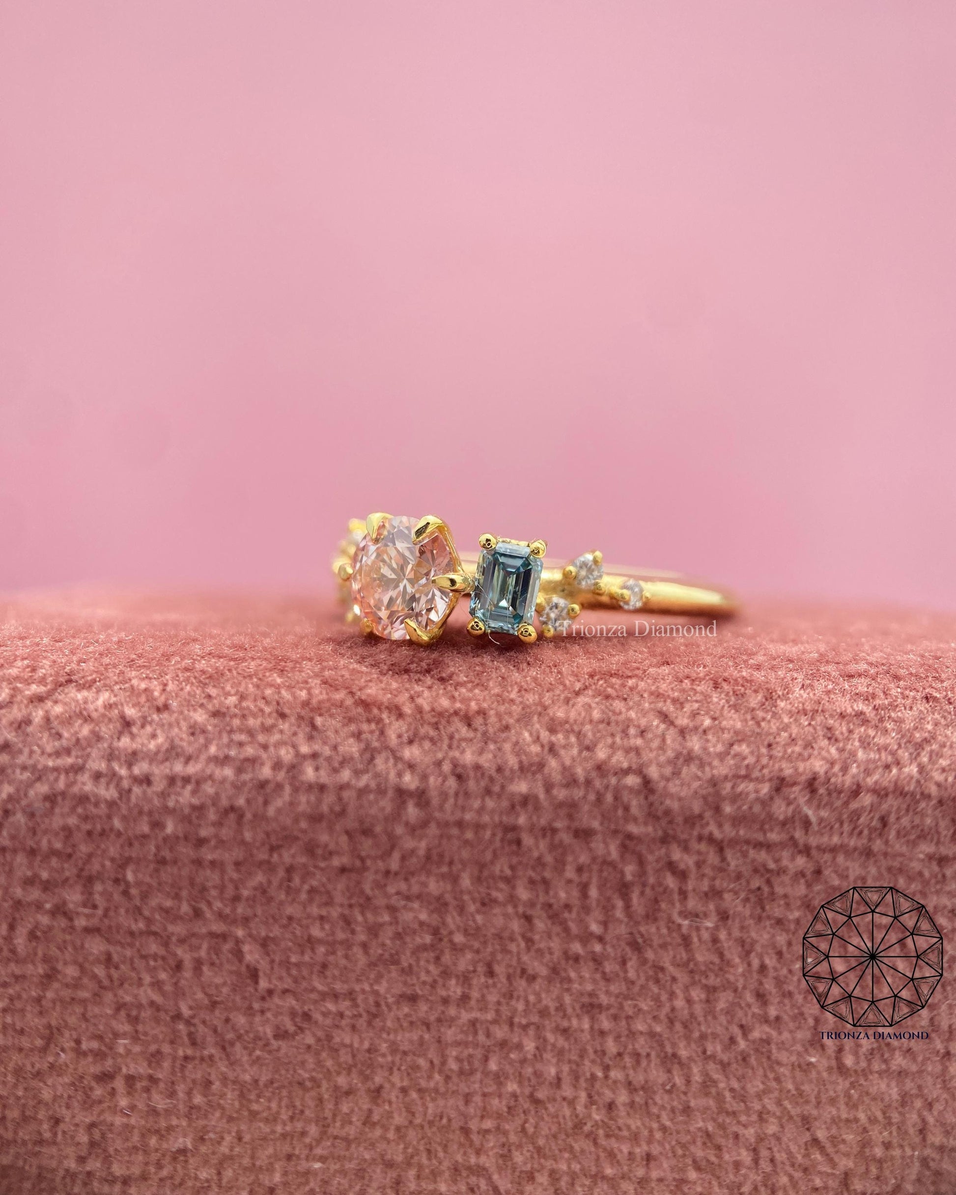 Discover this Dainty Round Lab Grown Diamond Promise Ring, also perfect as an Engagement Ring for Women, featuring colorful stones set in elegant claw prongs. Each IGI Certified lab-grown diamond ring is meticulously handcrafted with love by Trionza Diamond.
