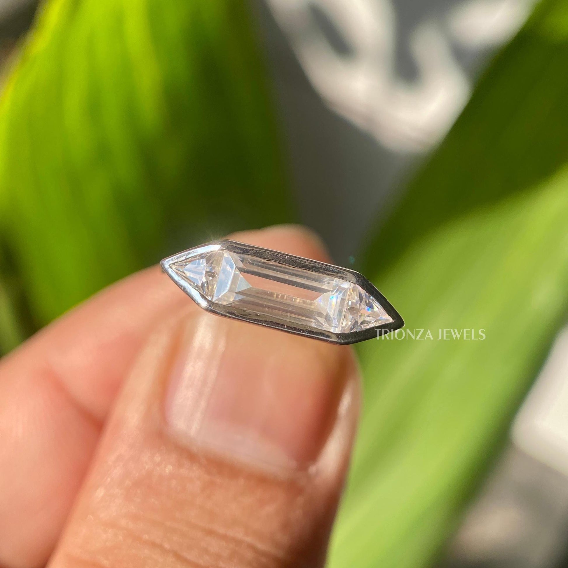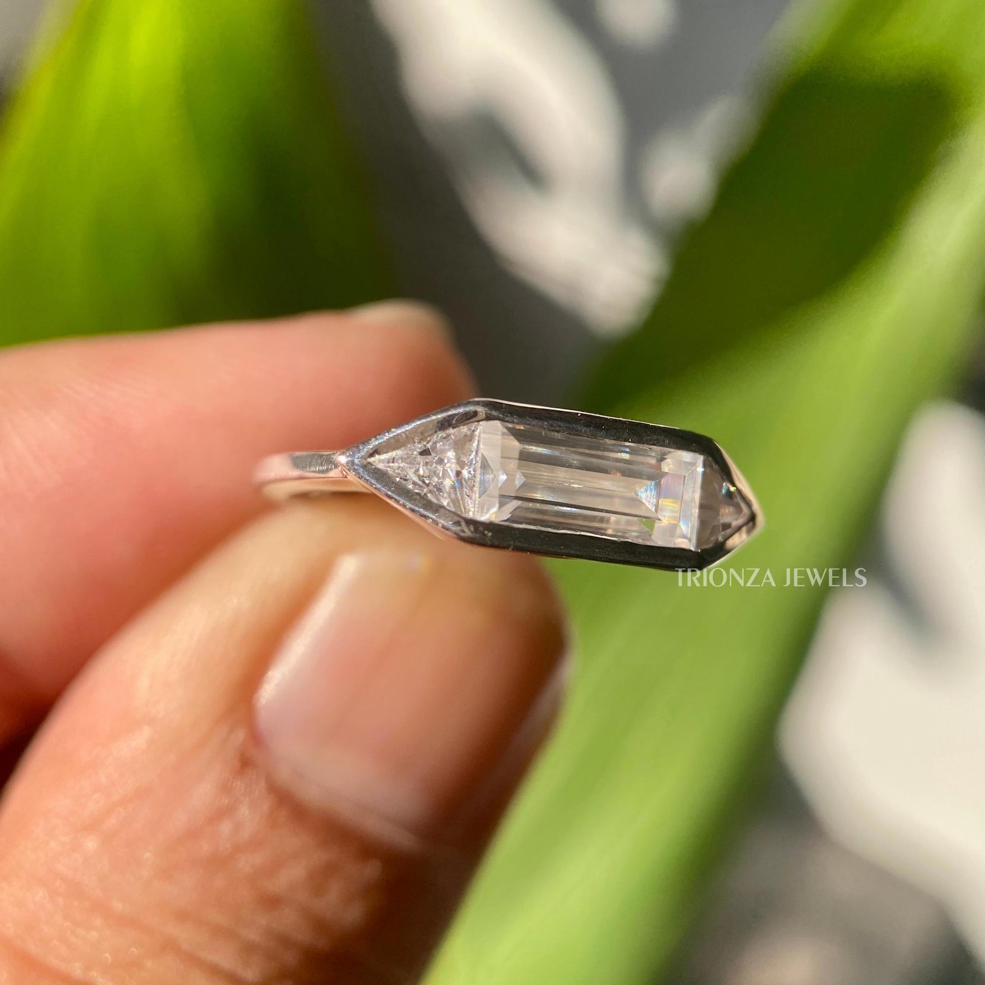 East West Baguette Moissanite Engagement Ring | 14K Gold Bezel Set