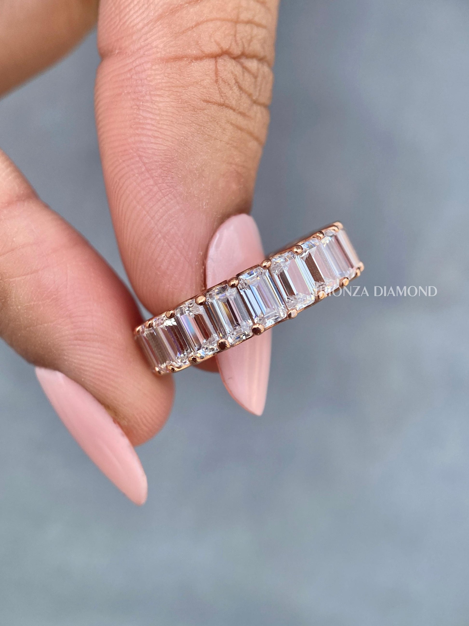 Emerald Cut Lab Diamond Eternity Band - Rose Gold Wedding Ring