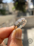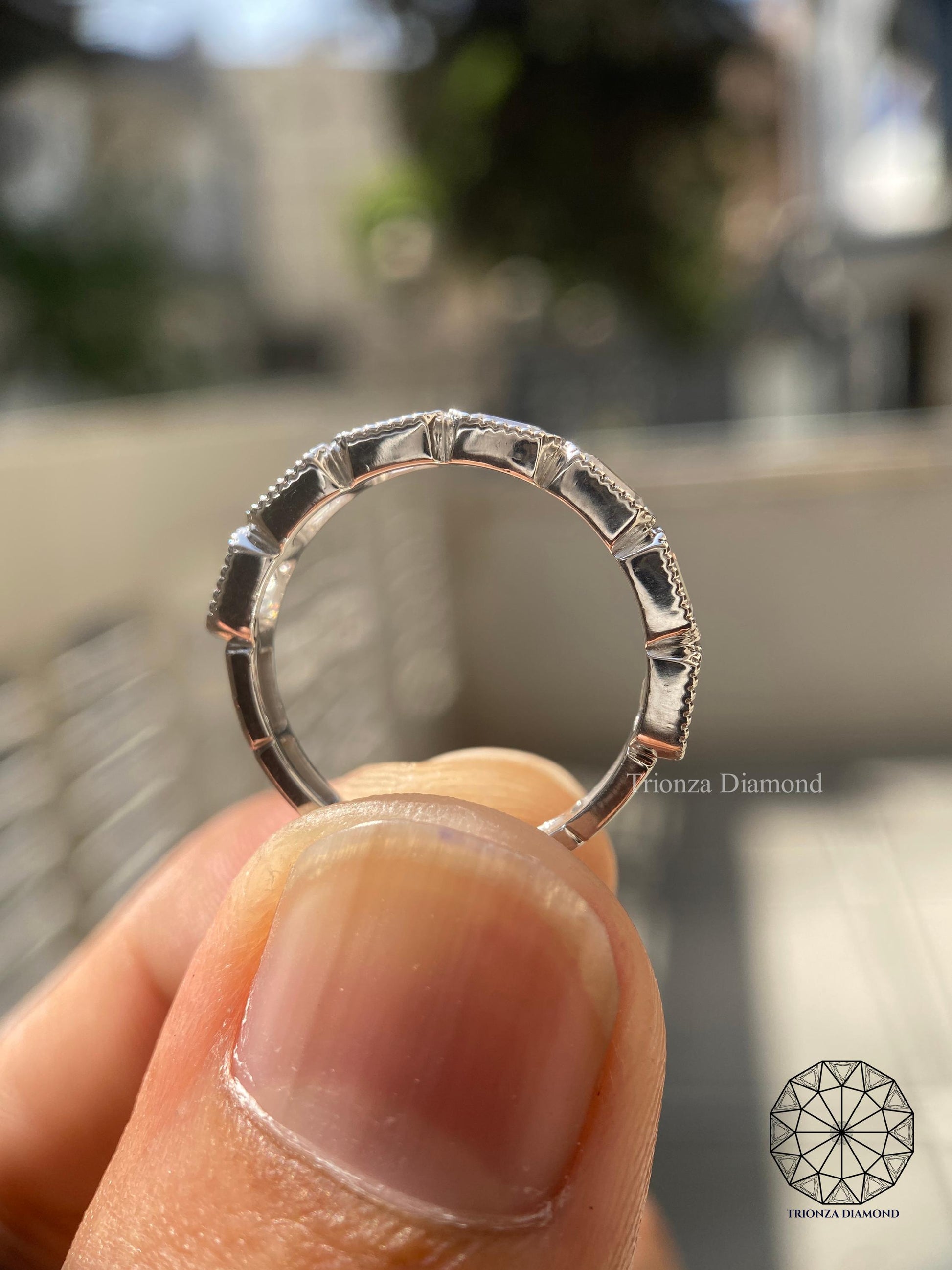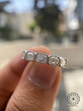 This exquisite Emerald Cut Lab Diamond 7 Stone Wedding Band features 4x3 MM E VVS1 Clarity lab-grown diamonds set in platinum. Perfect for stacking, gifting, or wearing solo, this half eternity band brings modern glamour to any bridal look.