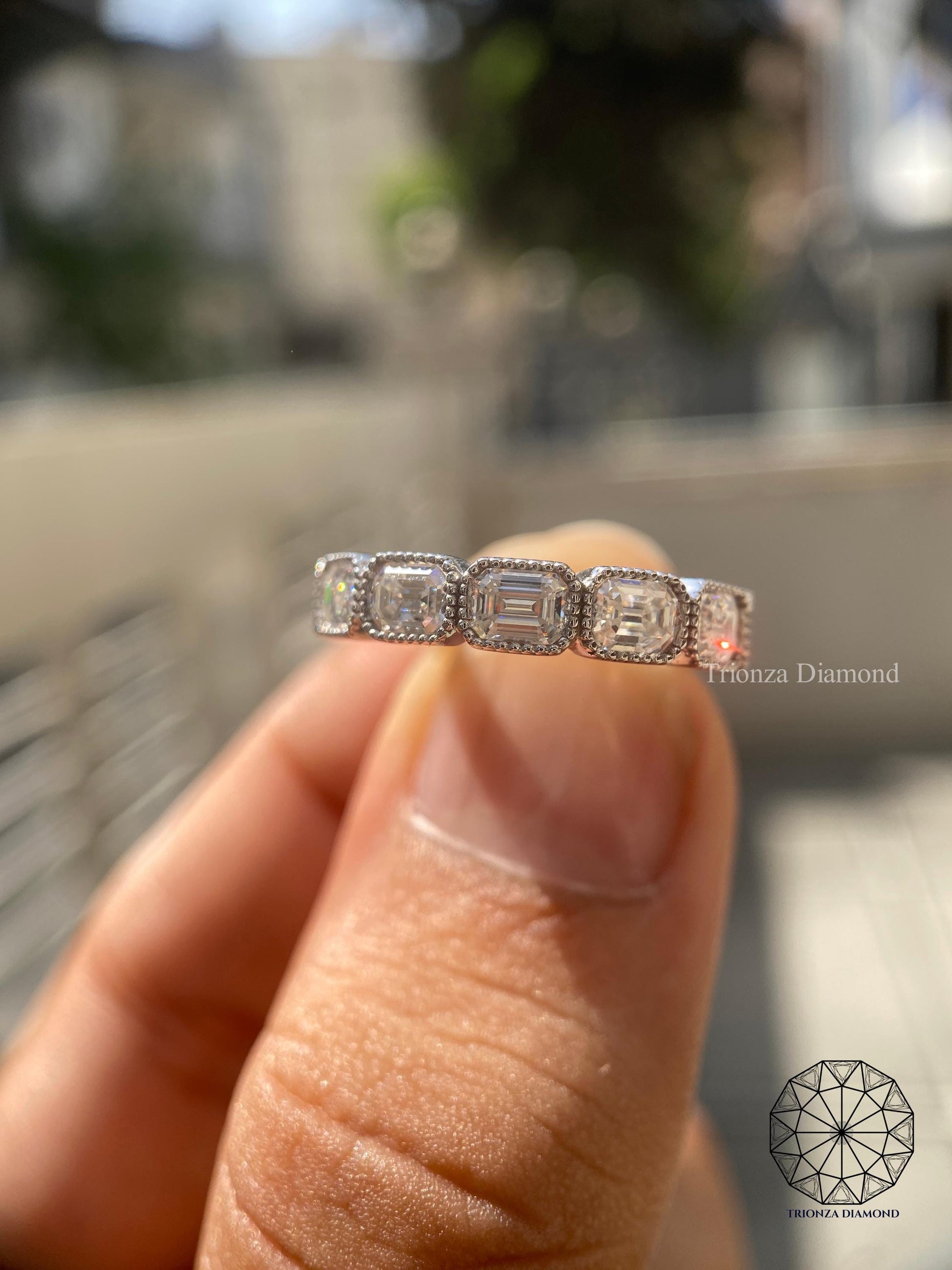 Emerald Cut Lab Diamond Wedding Band | Platinum Half Eternity Ring