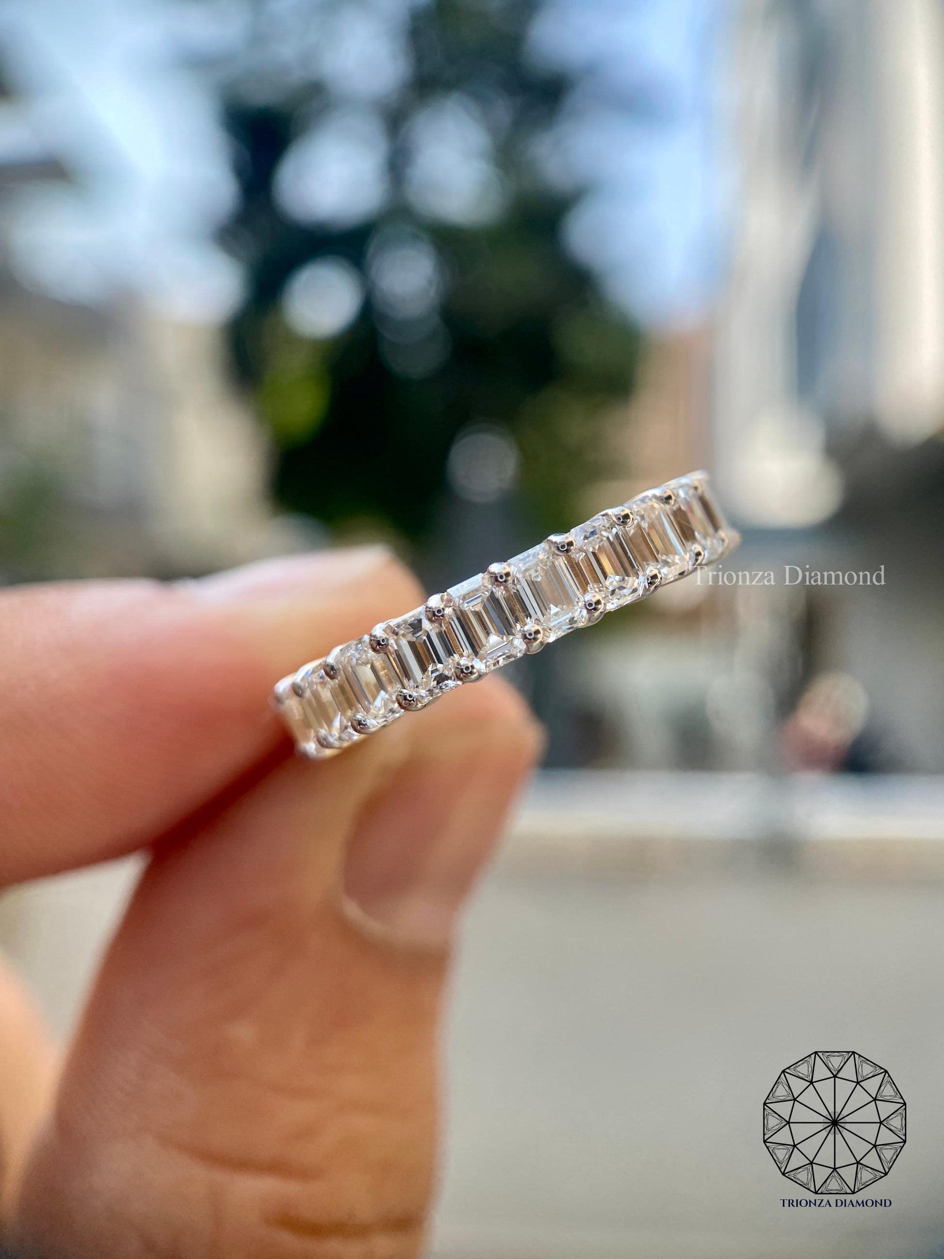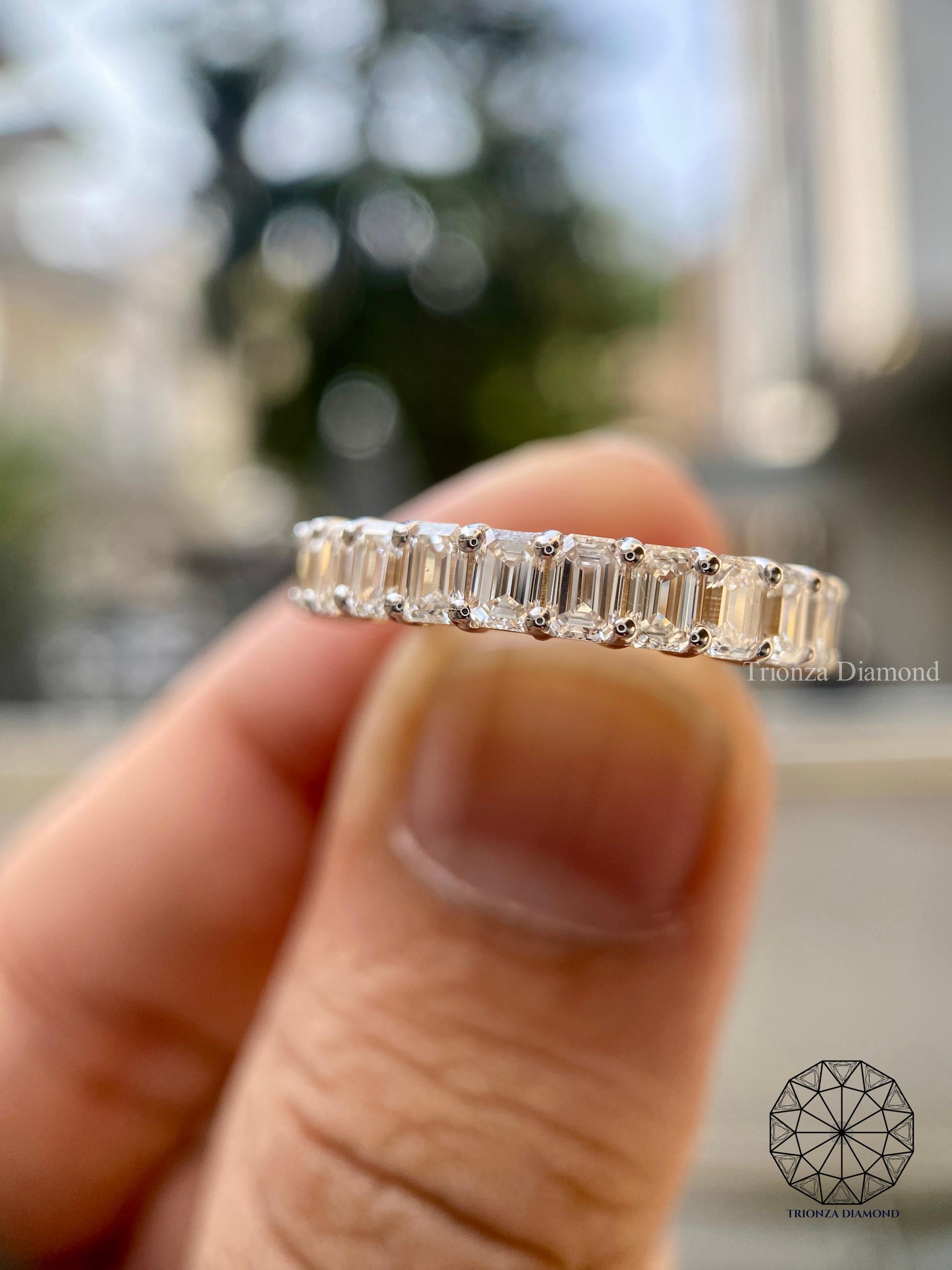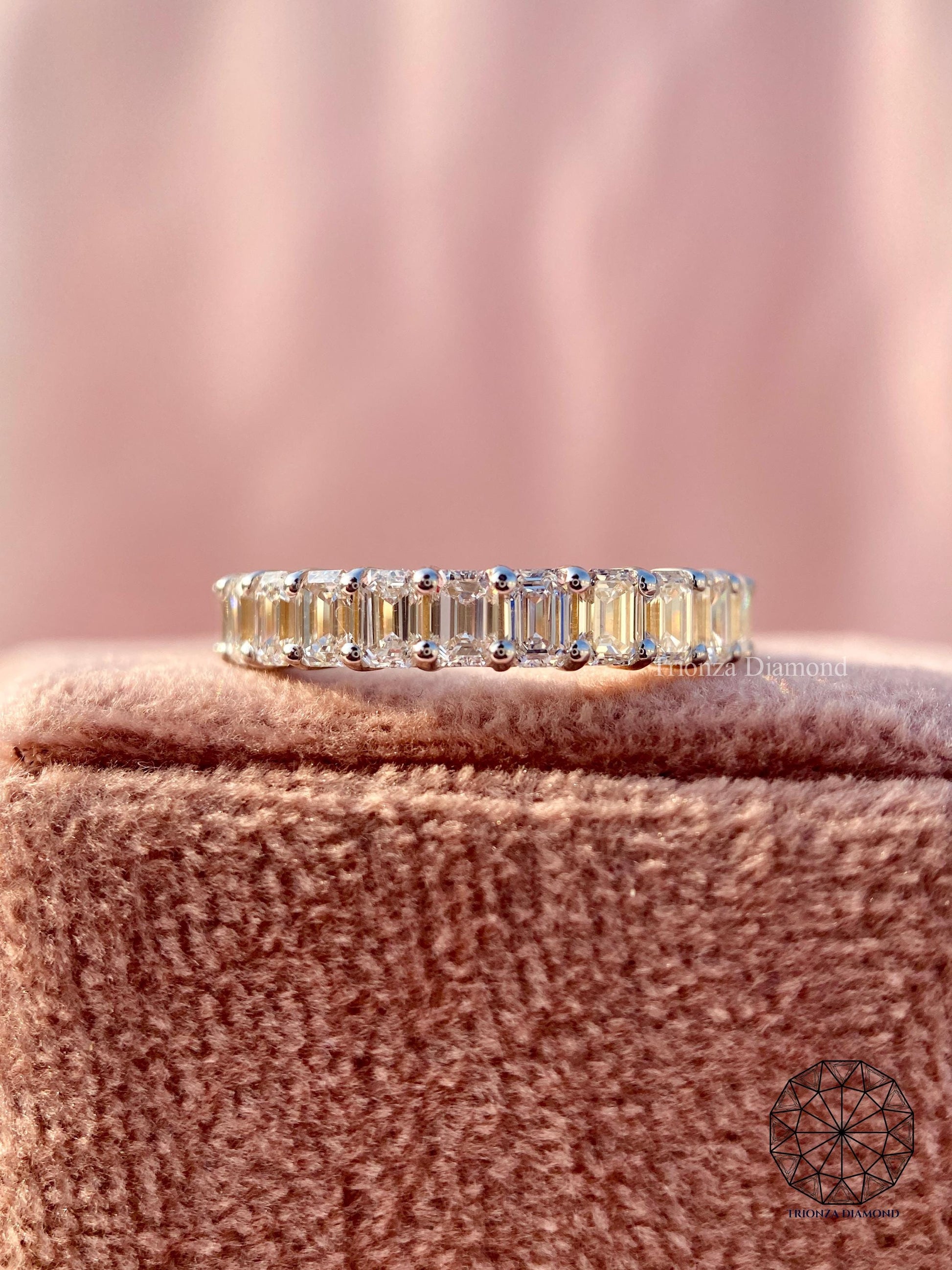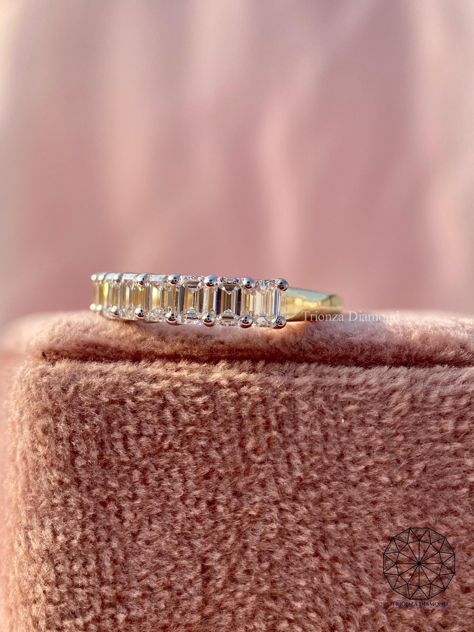 Emerald Cut Lab Grown Diamond Half Eternity Band - Wedding Ring