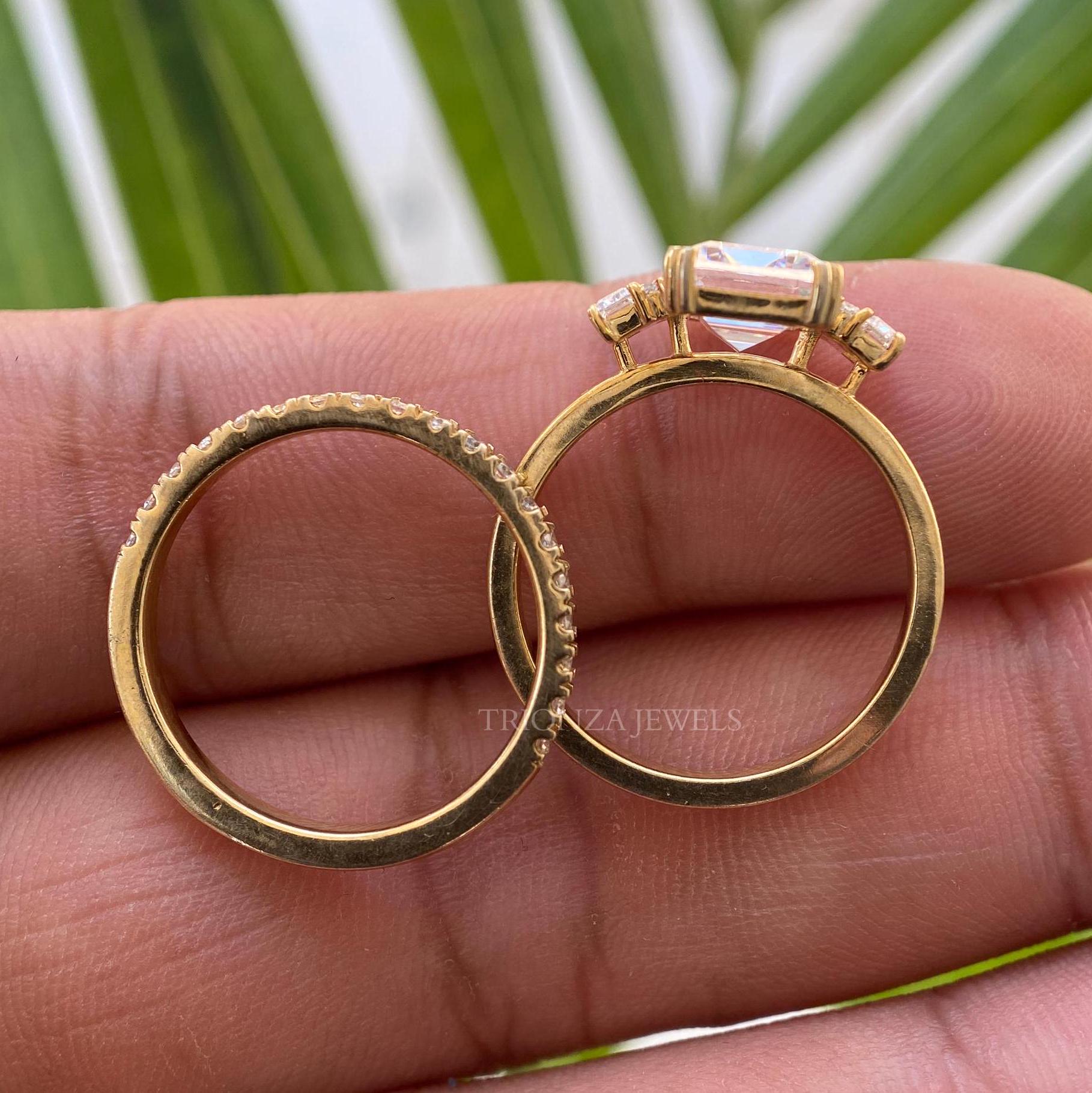 Emerald Cut Moissanite Bridal Wedding Ring Set for Her | 2ct