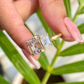 Emerald Cut Moissanite Three Stone Engagement Wedding Anniversary Ring