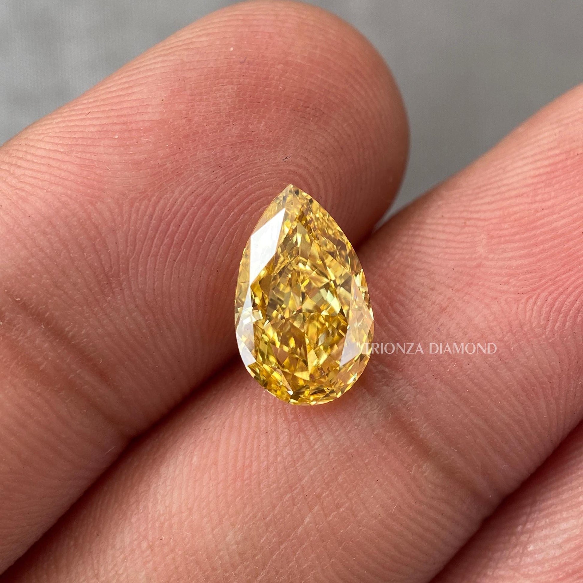 Discover our Fancy Vivid Yellow Pear Cut Lab Grown Diamond, perfect for a custom engagement ring, anniversary, or birthday gift. All diamonds are 100% pure lab-grown diamonds (CVD), acceptable worldwide by IGI standards. Our skilled craftsmen meticulously cut and polish each stone to ensure the highest quality.