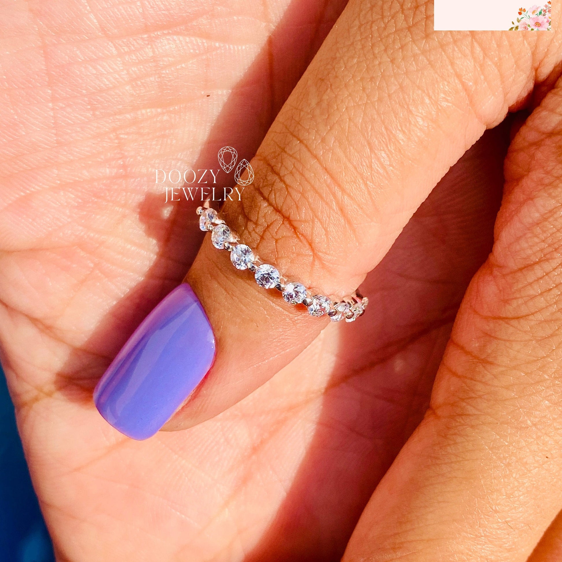 Celebrate your love with our exquisite Full Eternity 2.50 MM Round Moissanite Wedding Band. This minimalist design, also known as a Floating Bubble Band, is perfect for stacking and makes an ideal anniversary gift. It's a beautiful Moissanite Wedding Band, a Moissanite Matching Band, and a stunning Round Moissanite Band, perfect as a ring for women or a special gift for her.