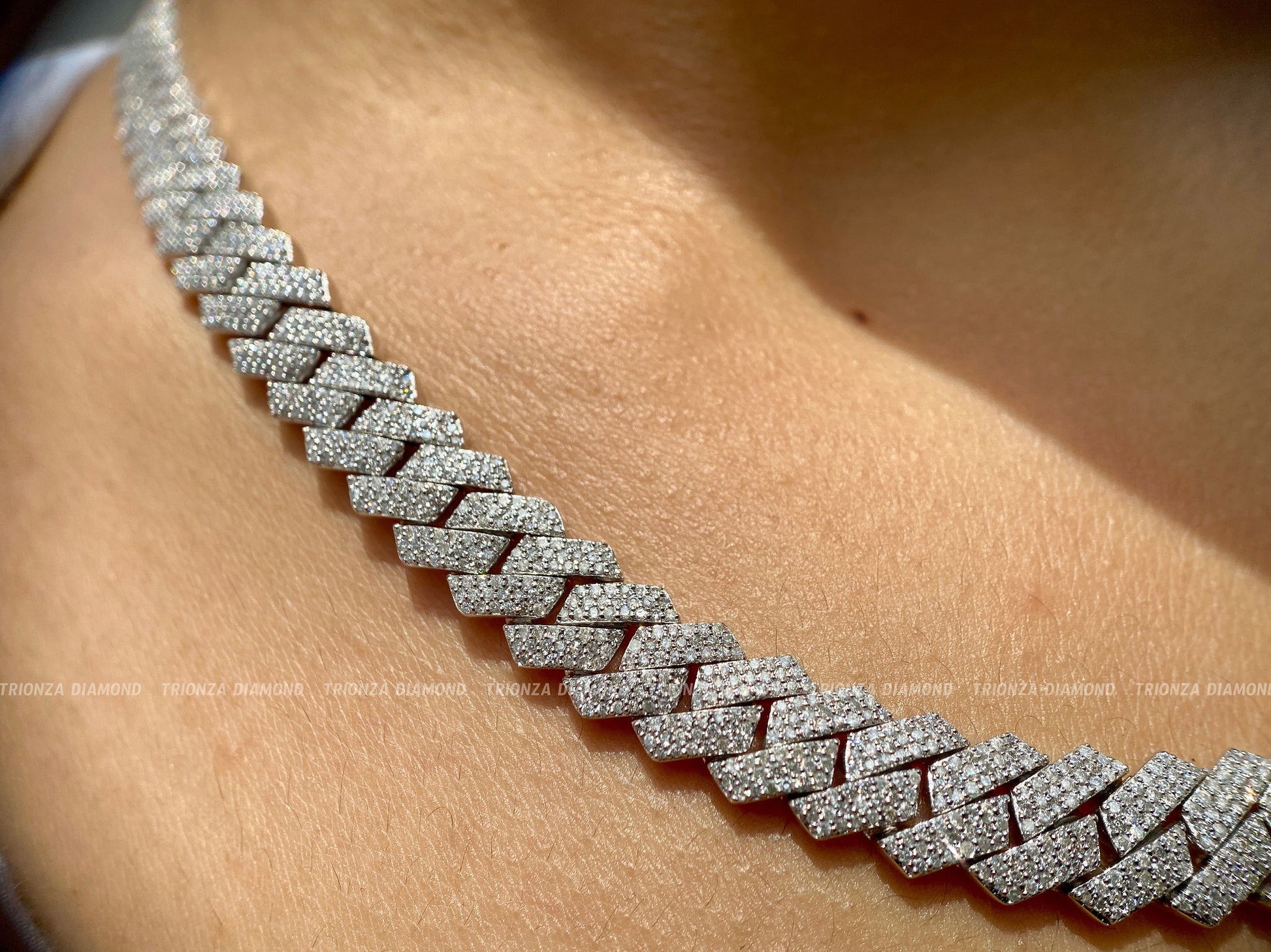 Elevate your style with our Gold Miami Cuban Link Chains and Iced Out Natural Diamond Chains. The ultimate HipHop bling for modern rapper jewelry, crafted with F/G color natural diamonds in 925 Sterling Silver by TRIONZA DIAMOND.