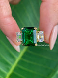 Green Emerald Moissanite Three Stone Engagement Ring, 8.02 TW