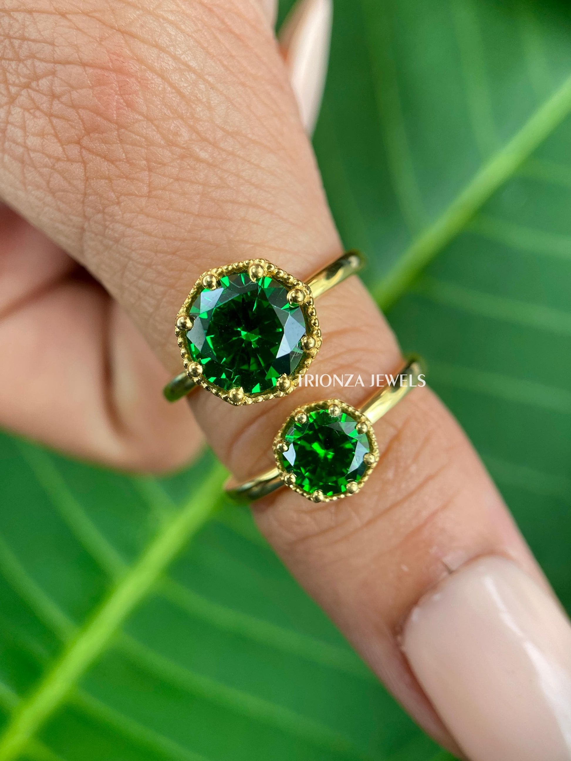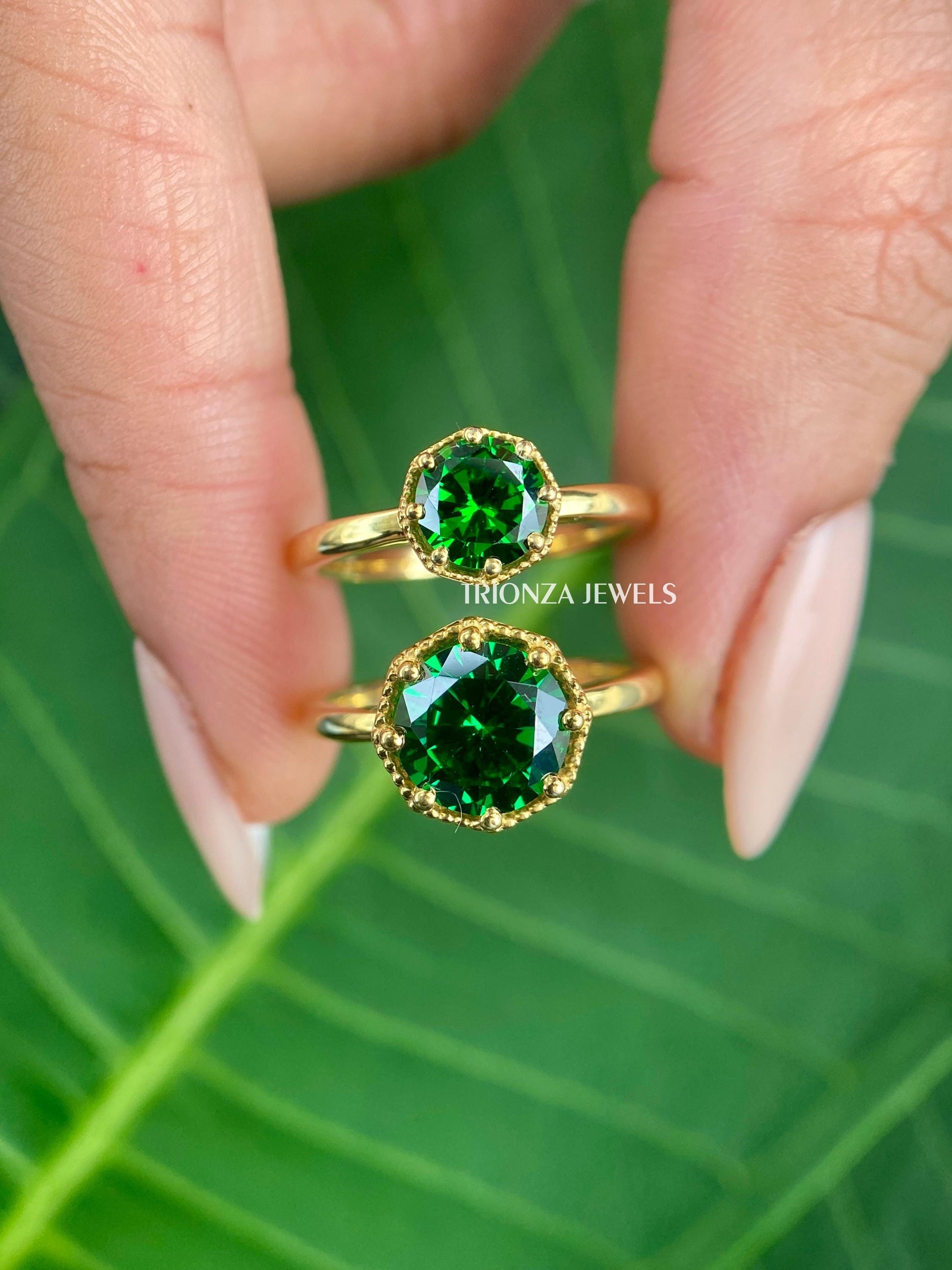 Green Moissanite Engagement Ring, Round Jubilee Cut, 10K/14K/18K Gold
