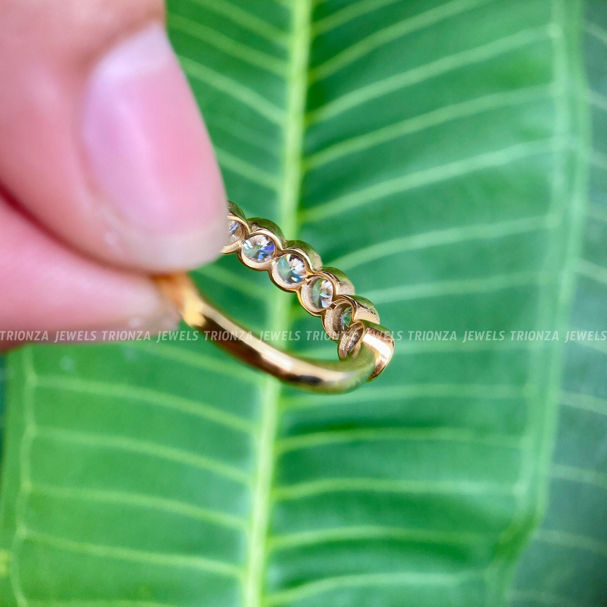 Discover our beautiful Half Bezel Set Band, perfect as a Wedding Band, Anniversary Band for women, or a stunning Round Bezel Anniversary Ring for her. This 14K Yellow Gold stacking ring features a stackable design, making it a versatile addition to any collection. It's also an ideal Moissanite Engagement Ring, Promise Ring, or a thoughtful Gift Ring.