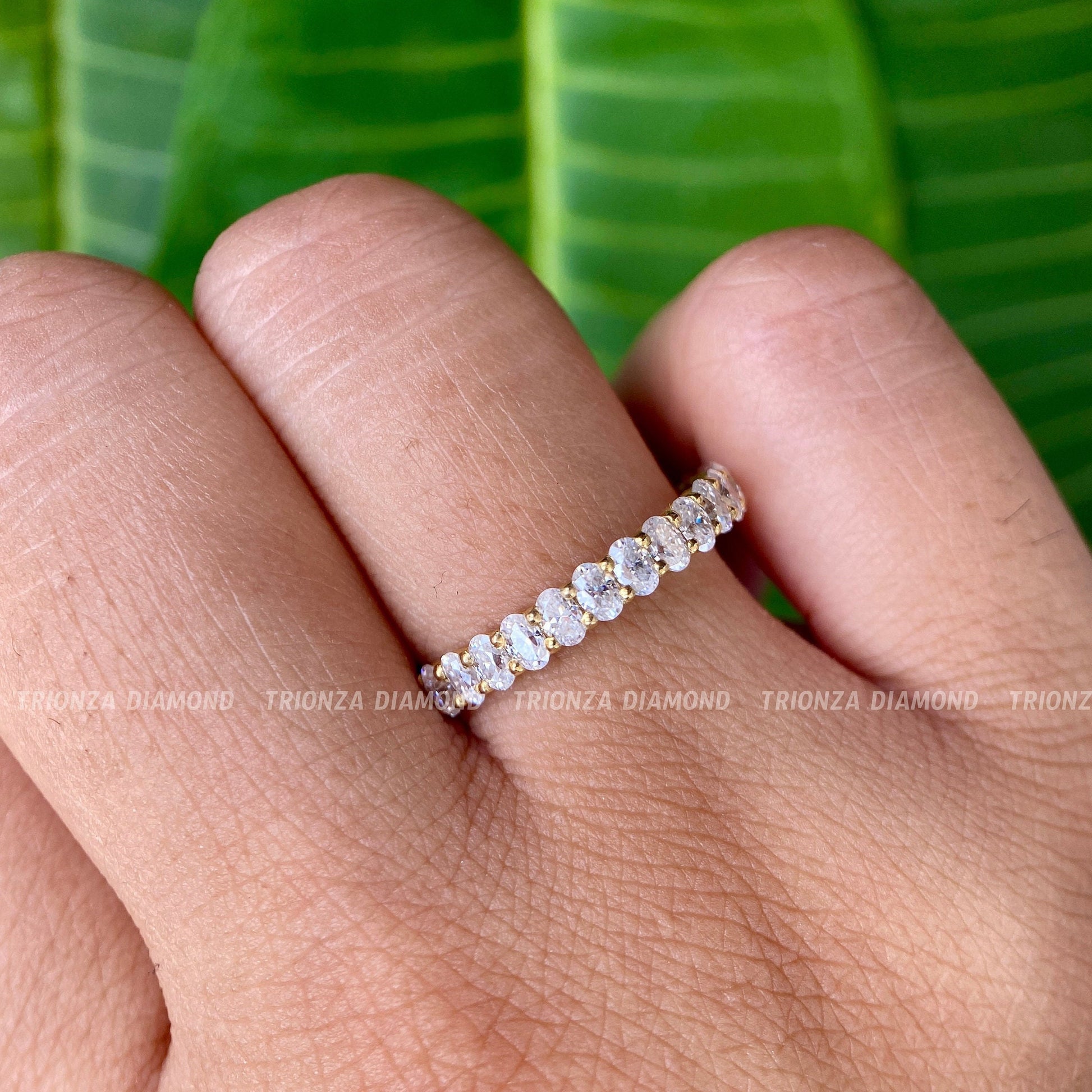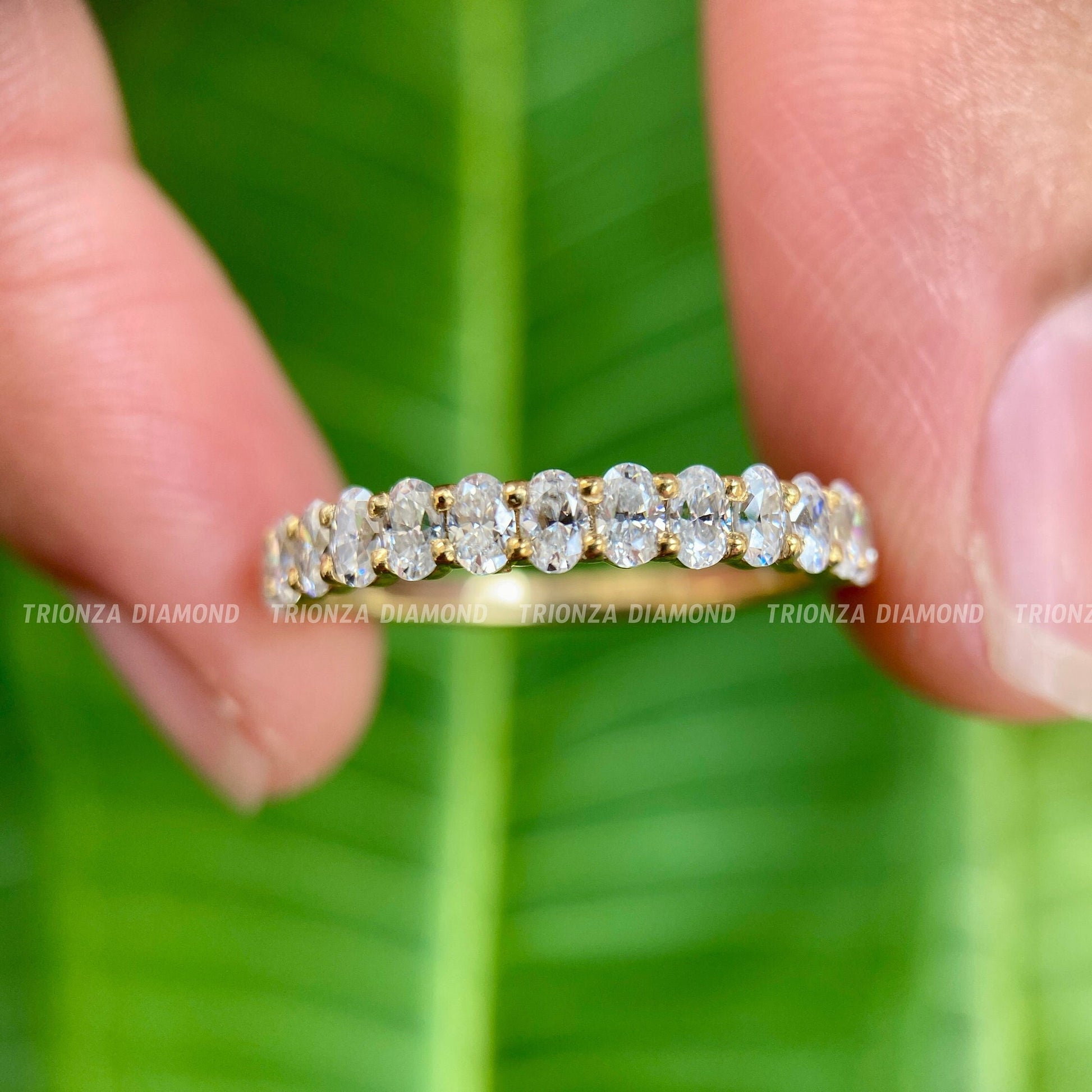 Discover our exquisite Half Eternity Oval-Cut Lab Grown Diamond Ring, crafted in radiant 14K Yellow Gold. This versatile piece serves as a beautiful anniversary band, wedding band, or a stylish stackable ring for her. Each diamond is carefully selected and precisely set to create a dazzling sparkle.