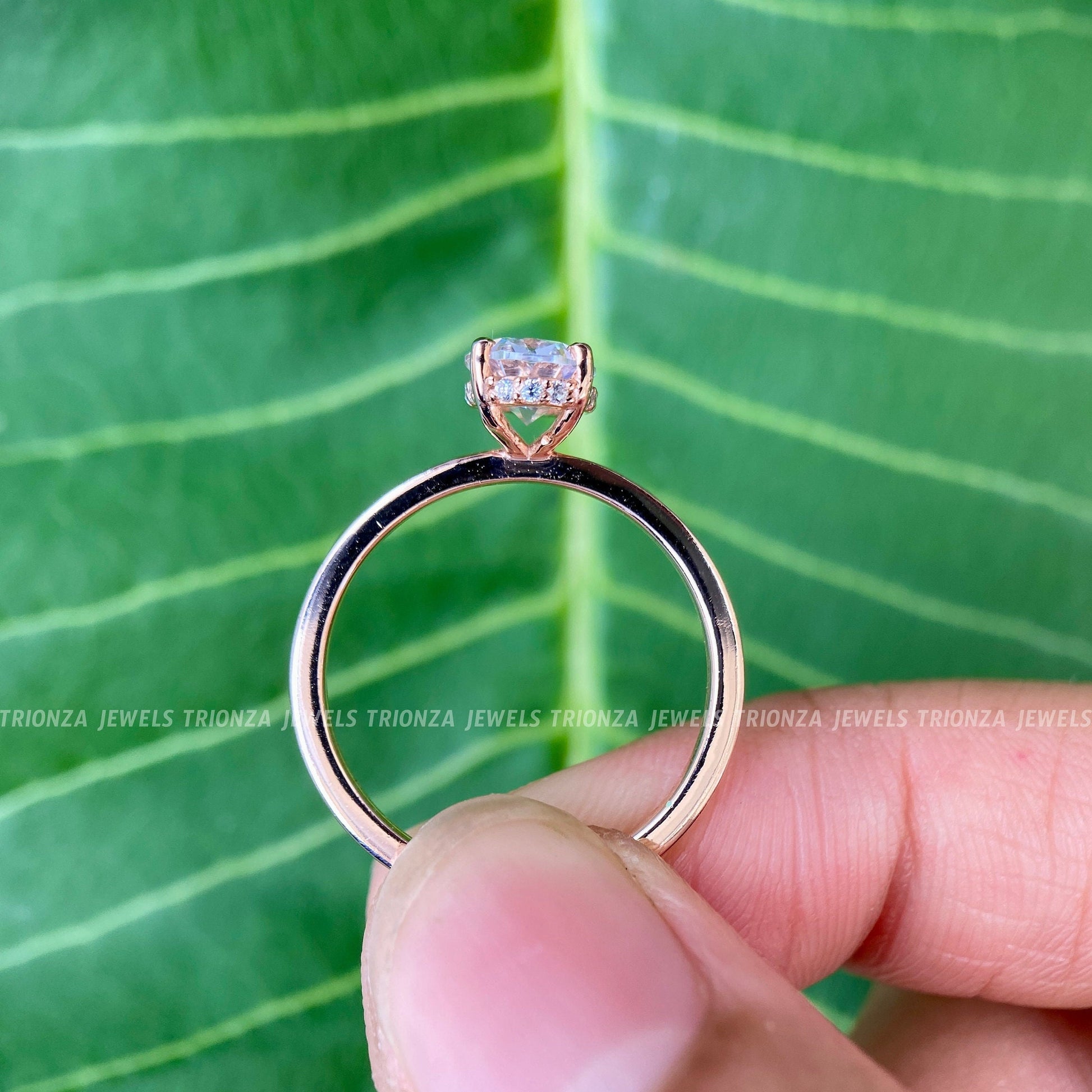 Hidden Halo 1.50 TW Oval Moissanite Engagement Ring | Dainty Wedding