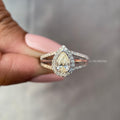 This stunning 1.50 CT Two Tone Intense Yellow Pear Cut Lab Created Diamond Ring is IGI Certified, featuring a fancy design in 14k gold. A perfect wedding ring for her, this unique, conflict-free diamond piece is meticulously crafted by TRIONZADIAMOND.