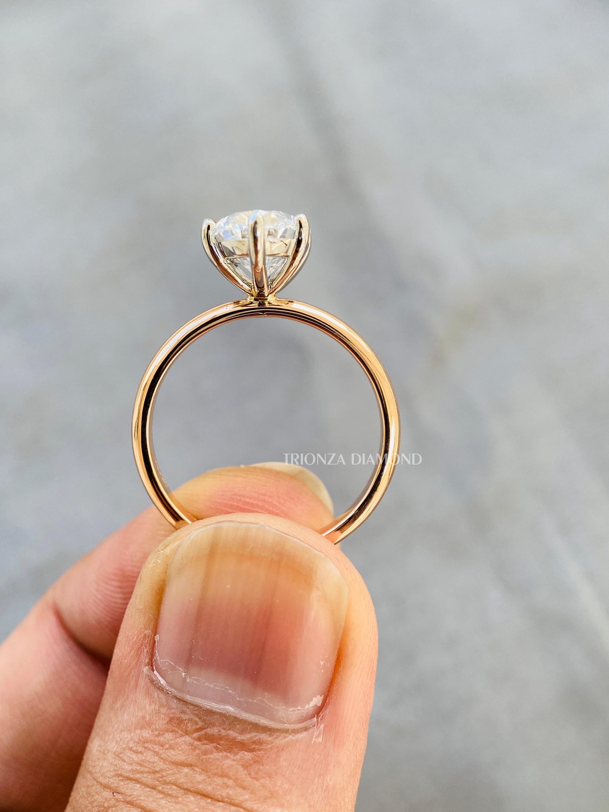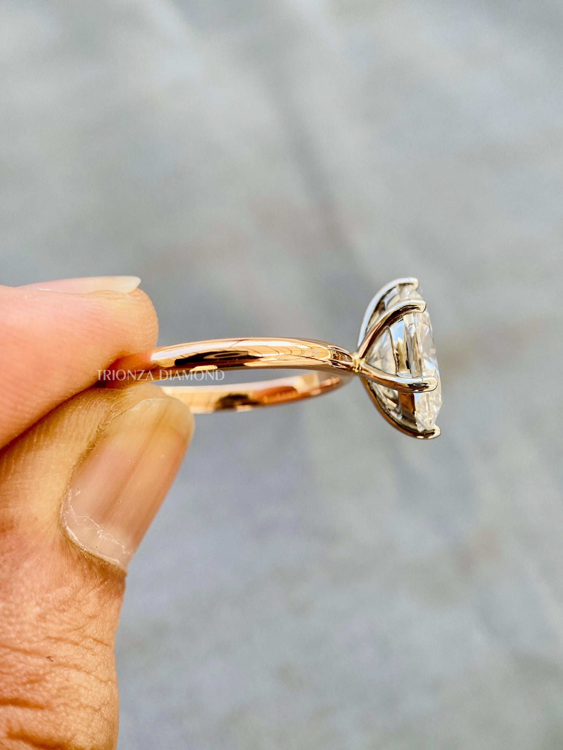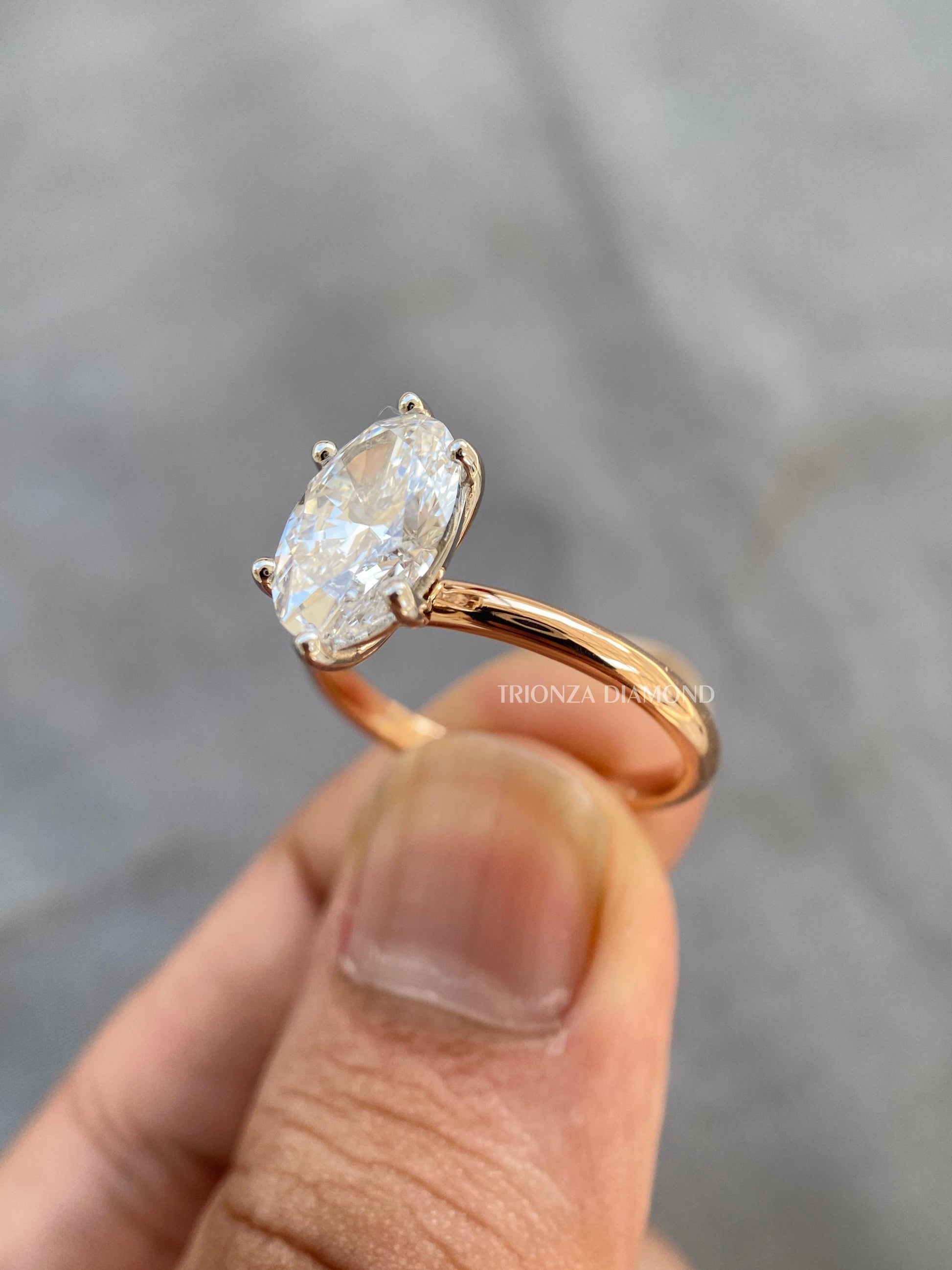 Discover our exquisite IGI Certified 4CT Oval Lab Grown Diamond Engagement Ring, featuring a stunning D/VVS2 clarity lab-created diamond. Available in 14K Gold or Platinum, this elegant ring offers a minimalist design perfect for proposals, anniversaries, or a timeless gift for her. As an eco-friendly and conflict-free choice, our lab-grown diamonds provide exceptional quality and brilliance.