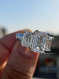 IGI Certified Emerald Cut Lab Diamond Three Stone Ring 18K Gold