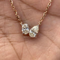 This elegant IGI Certified Lab Grown Diamond Pendant features both oval and pear-shaped diamonds, meticulously set in a 14K Rose Gold Necklace. Designed for women, this diamond drop pendant is a perfect "You and Me" gift.