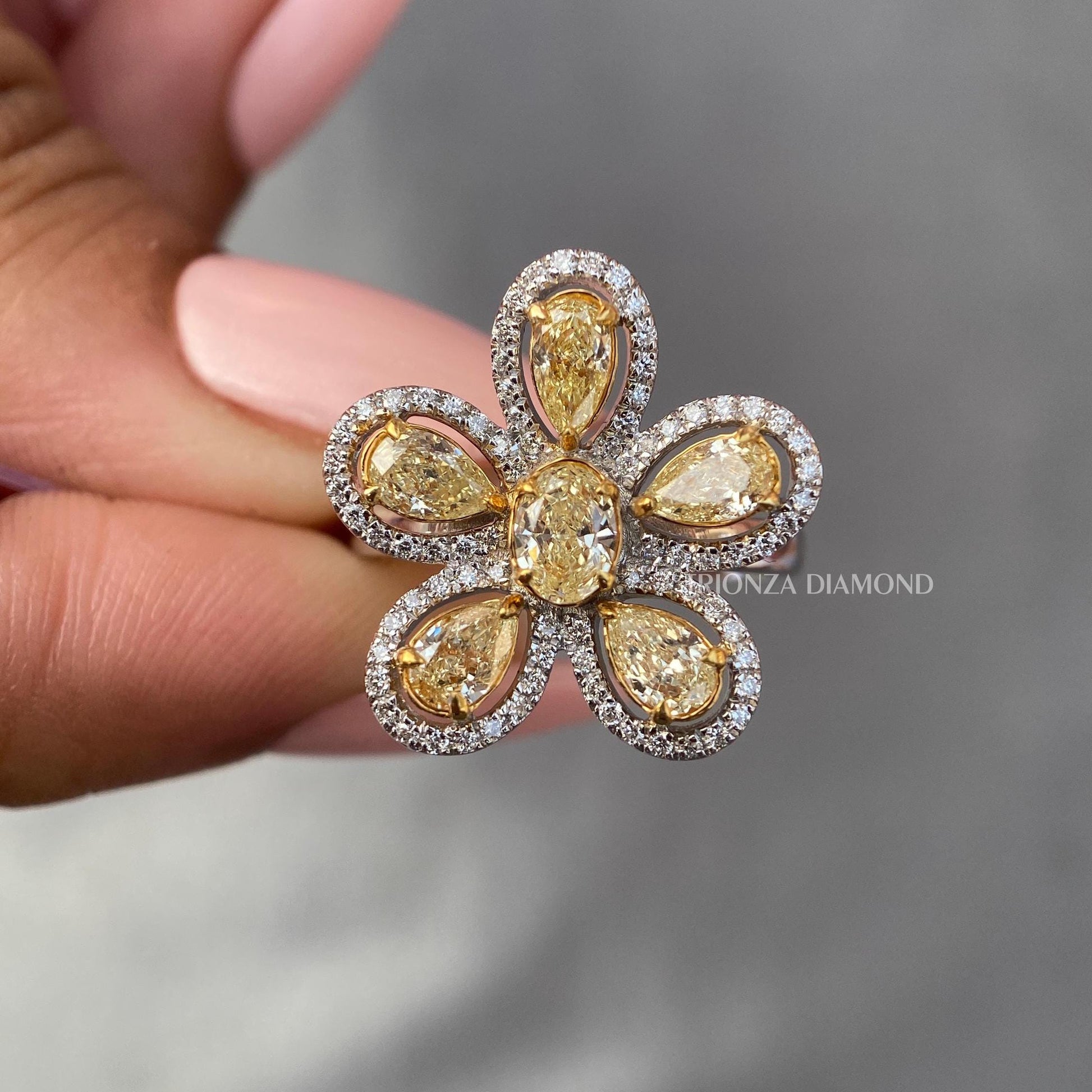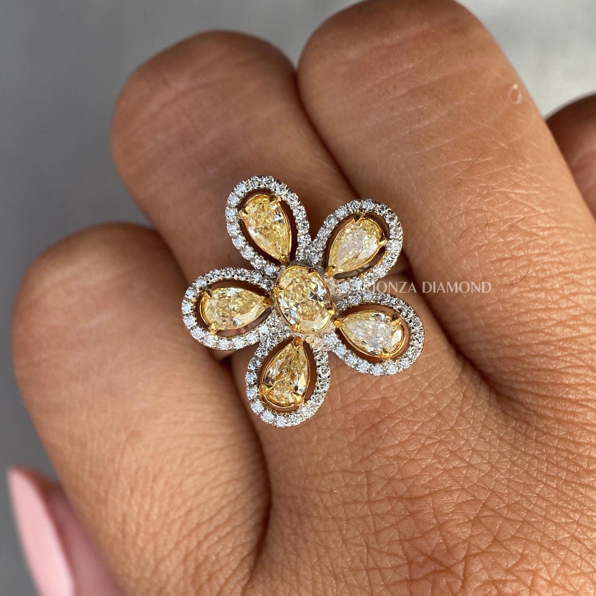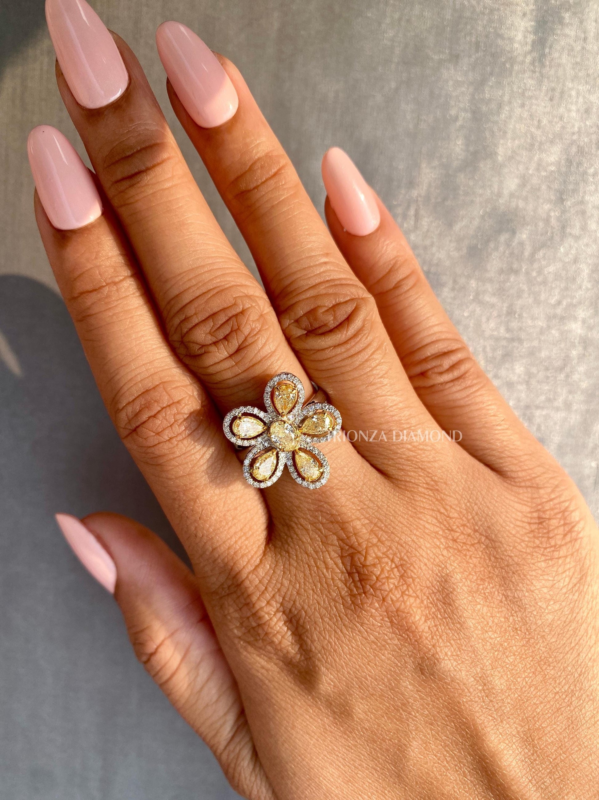 Intense Yellow Lab Grown Diamond Ring - Oval & Pear Cut